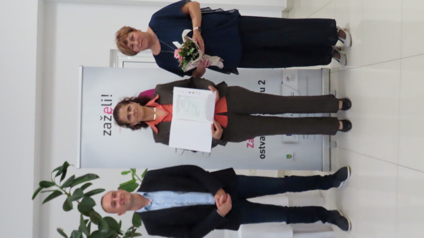 Završnica svečanosti bilo je uručivanje uvjerenja o završenoj edukaciji u čemu su sudjelovali predstavnici Učilišta Obris Aleksandar Bojčić, Učilišta Velebit Jelena Katalenić i koordinatorice projekta Željka Drgalić Ajduković , Ana Čvagić Keller i Ksenija Vajlandić.