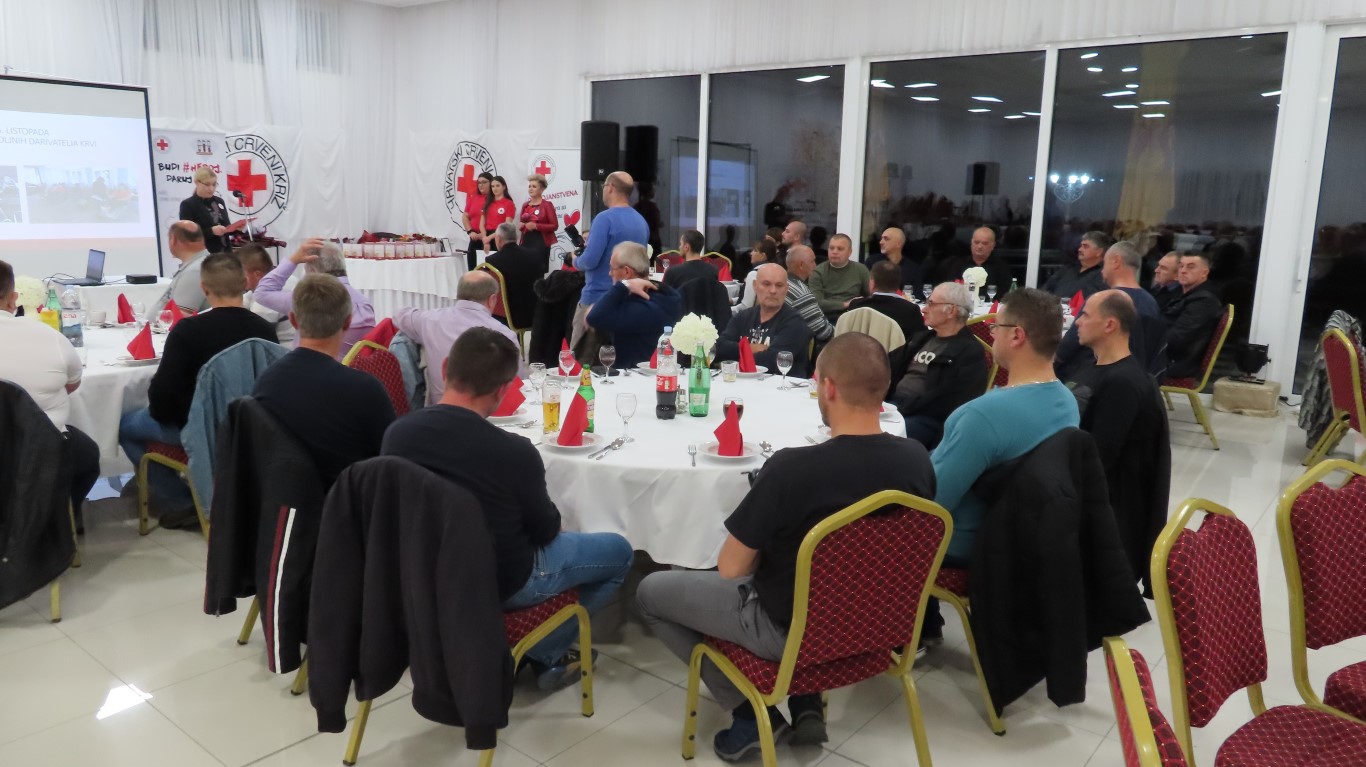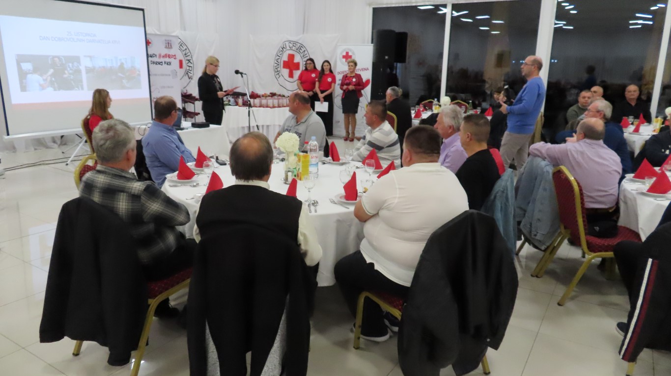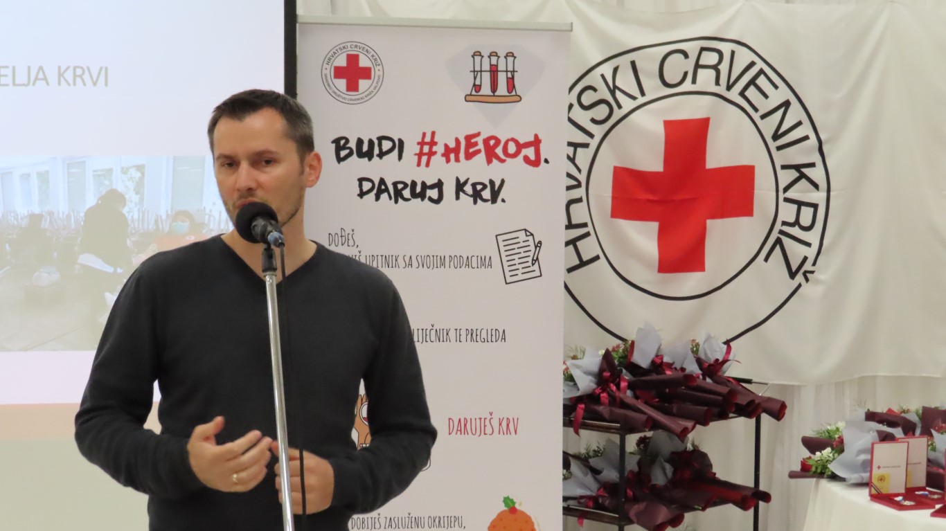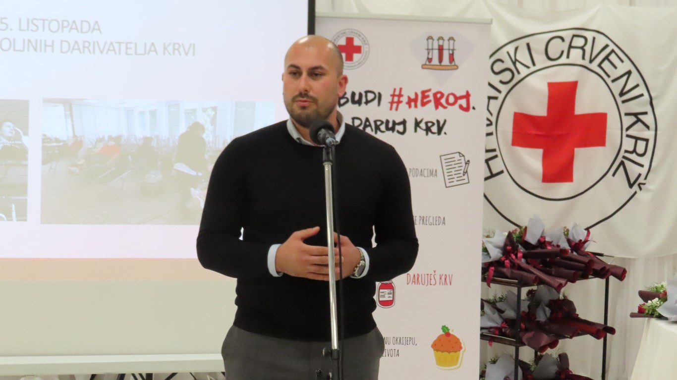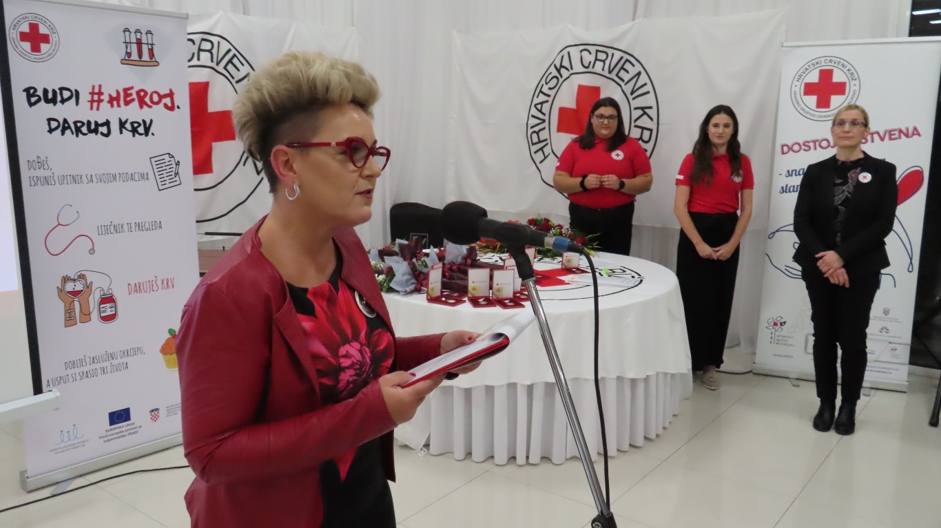 Obraćajući se davateljima i gostima, predsjednica Gradskog društva Crvenog križa Danijela Šrepfler je kazala: Darovana krv životni je čin solidarnosti koja širom svijeta spašava milijune života. Dragi darivatelji, hvala Vam što ste pružili svoju ruku i darovali dio sebe. Svojim djelom pokazujete kako je to biti dobar, brižan i pun ljubavi za čovjeka. Svojom dobrotom, i to anonimno, besplatno i solidarno, činite veliko djelo i želimo vam zahvaliti na davanju sebe za drugoga.