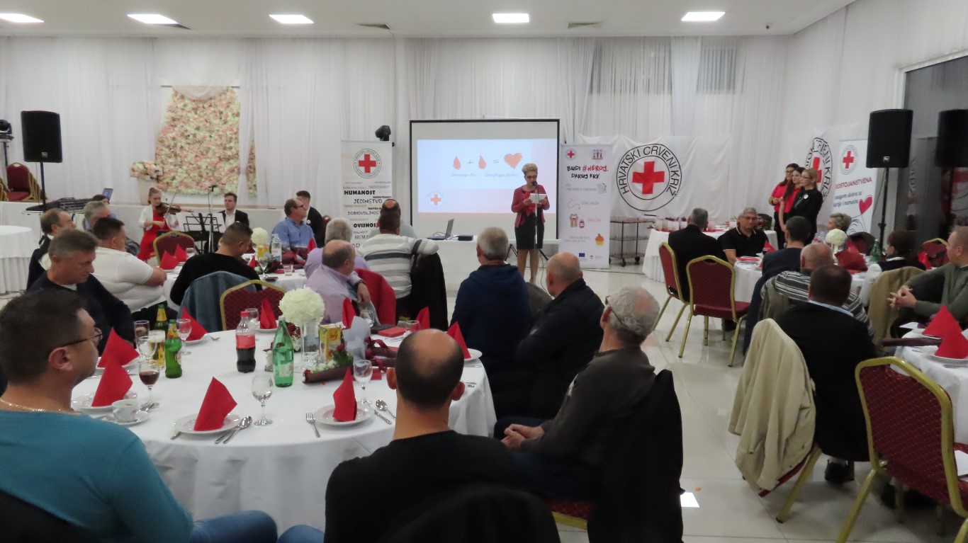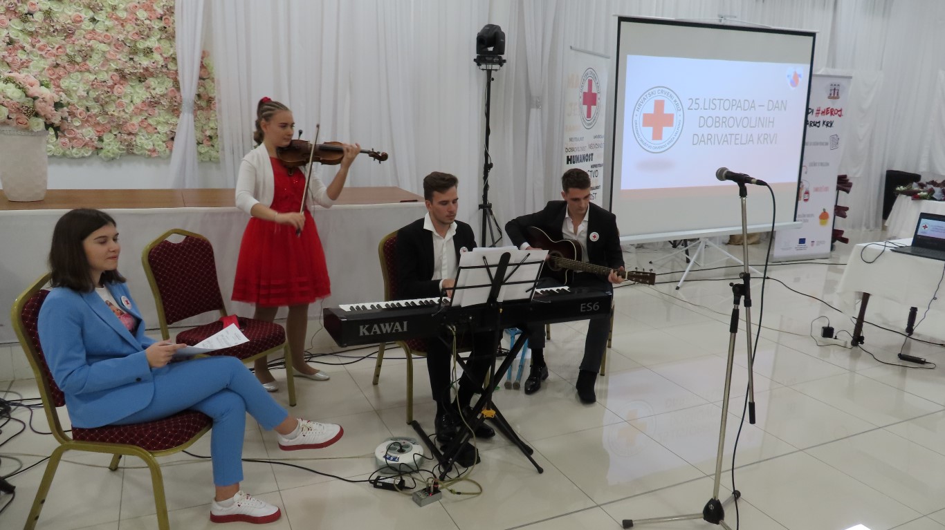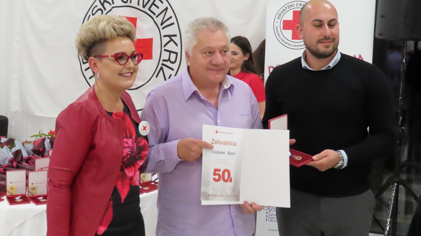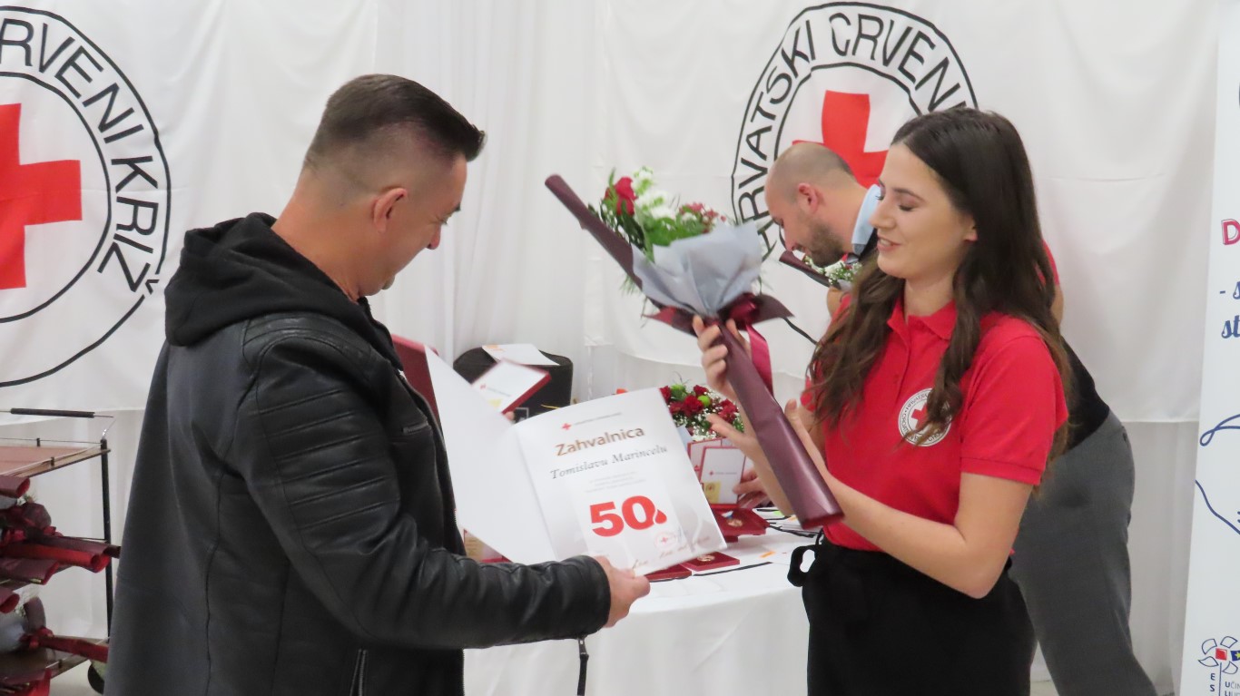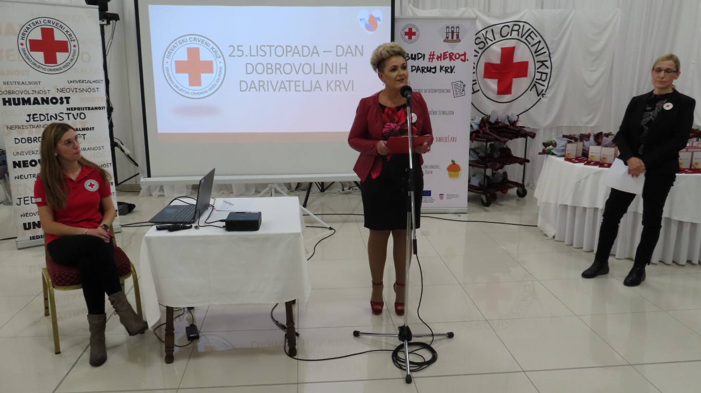 Obraćajući se davateljima i gostima, predsjednica Gradskog društva Crvenog križa Danijela Šrepfler je kazala: Darovana krv životni je čin solidarnosti koja širom svijeta spašava milijune života. Dragi darivatelji, hvala Vam što ste pružili svoju ruku i darovali dio sebe. Svojim djelom pokazujete kako je to biti dobar, brižan i pun ljubavi za čovjeka. Svojom dobrotom, i to anonimno, besplatno i solidarno, činite veliko djelo i želimo vam zahvaliti na davanju sebe za drugoga.