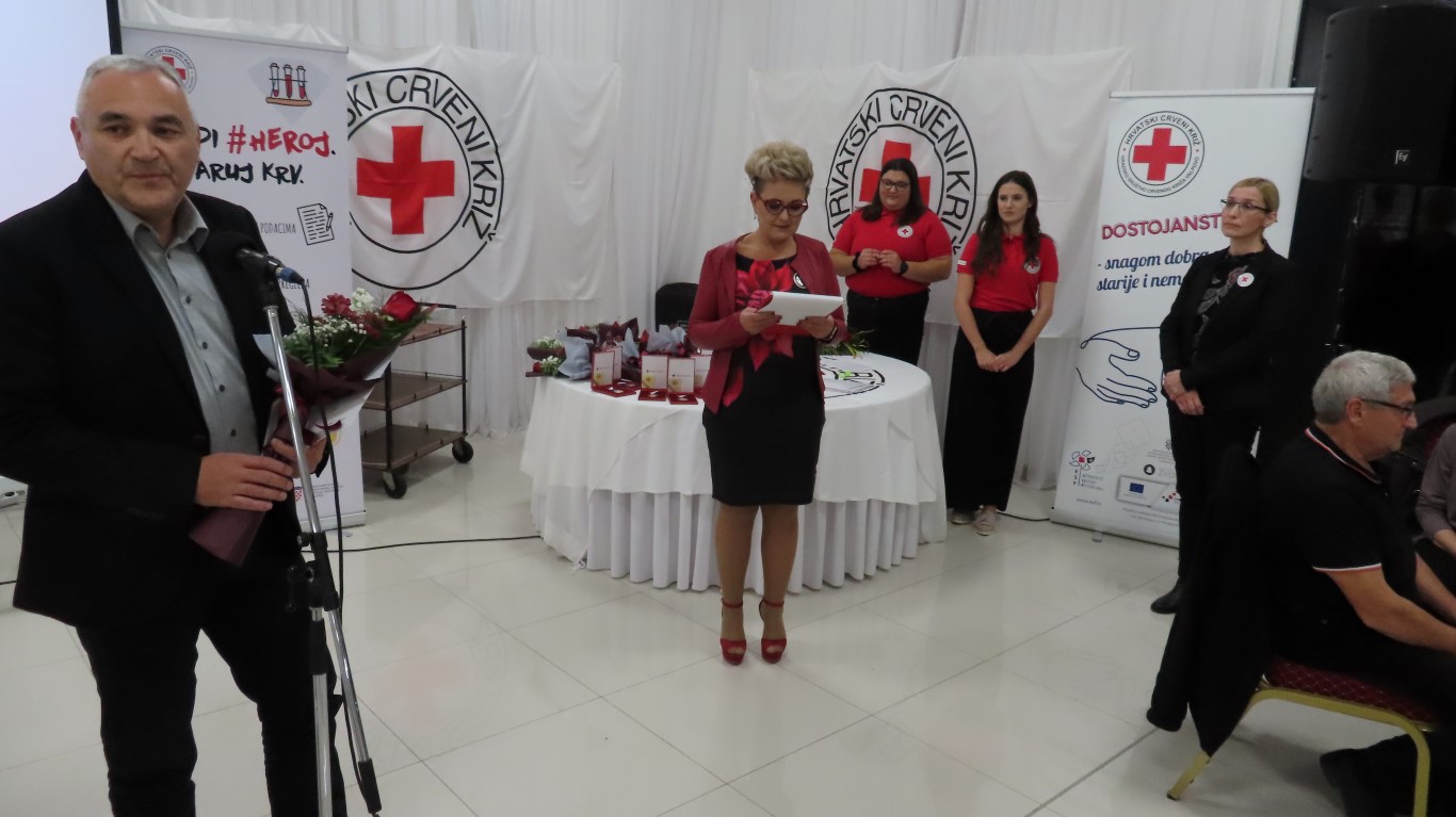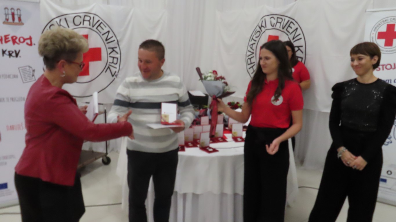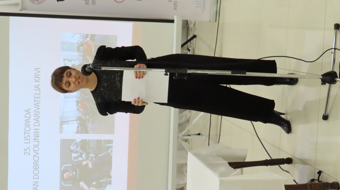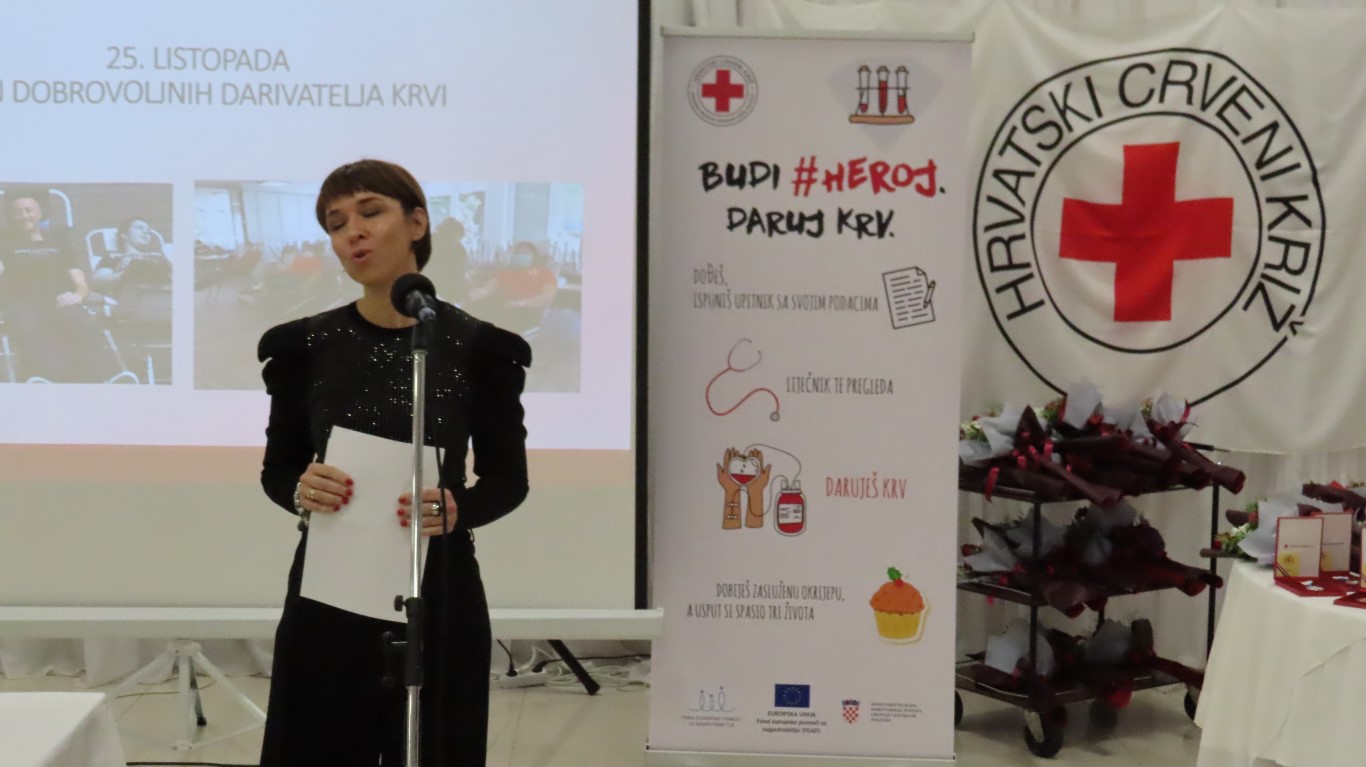 Svečanost je započela izvedbom himne, a potom je sudionike svečanosti pozdravila ravnateljica Gradskog društva Crrvenog križa Valpovo Sanja Habuda i pri tom naglasila značaj dobrovoljnog darivanja krvi u našoj društvenoj zajednici i dobrotu koju u sebi nose dobrovoljni darivatelji koji nesebično tu dobrotu šire spašavajući živote neznanim bolesnicima.