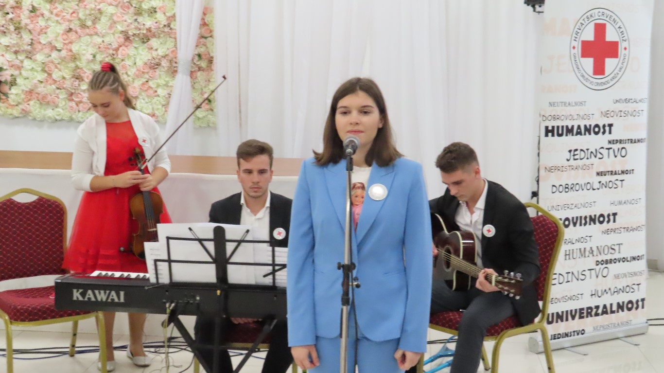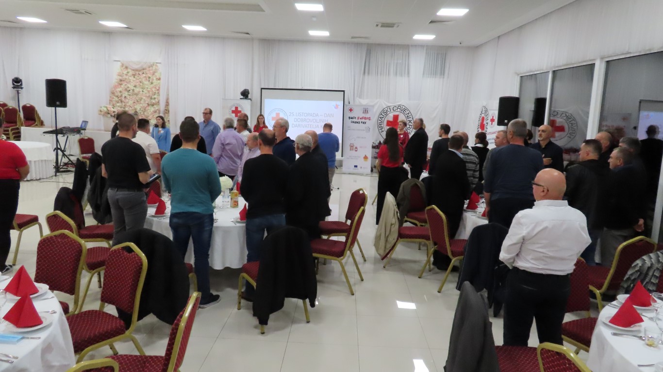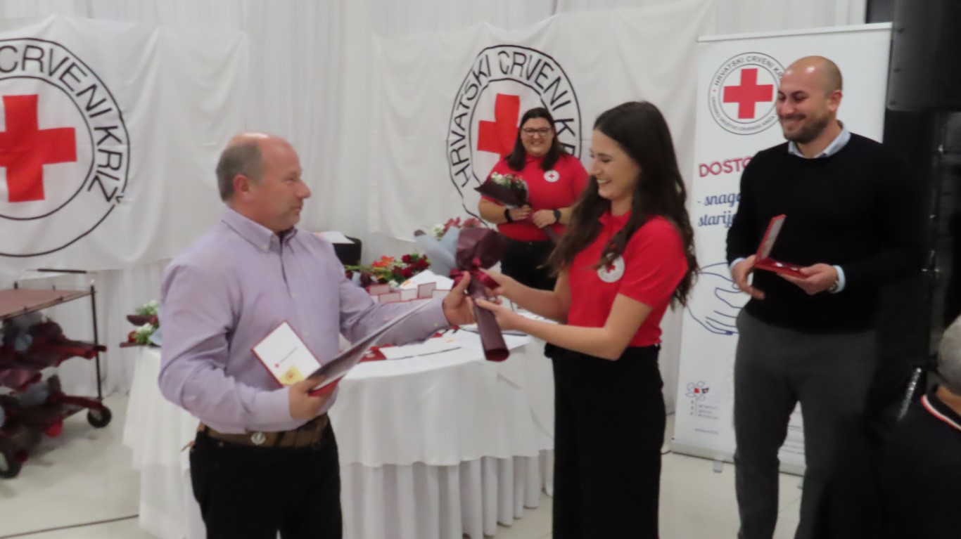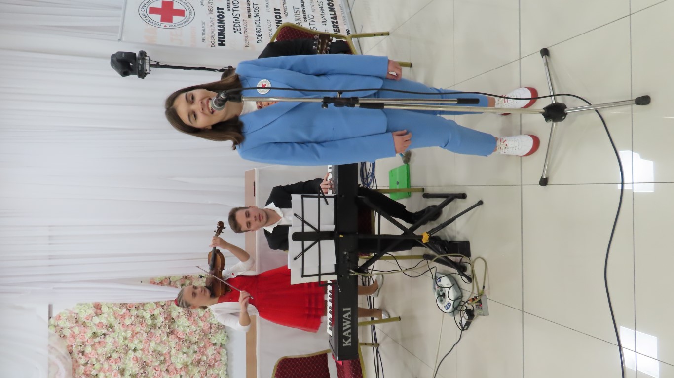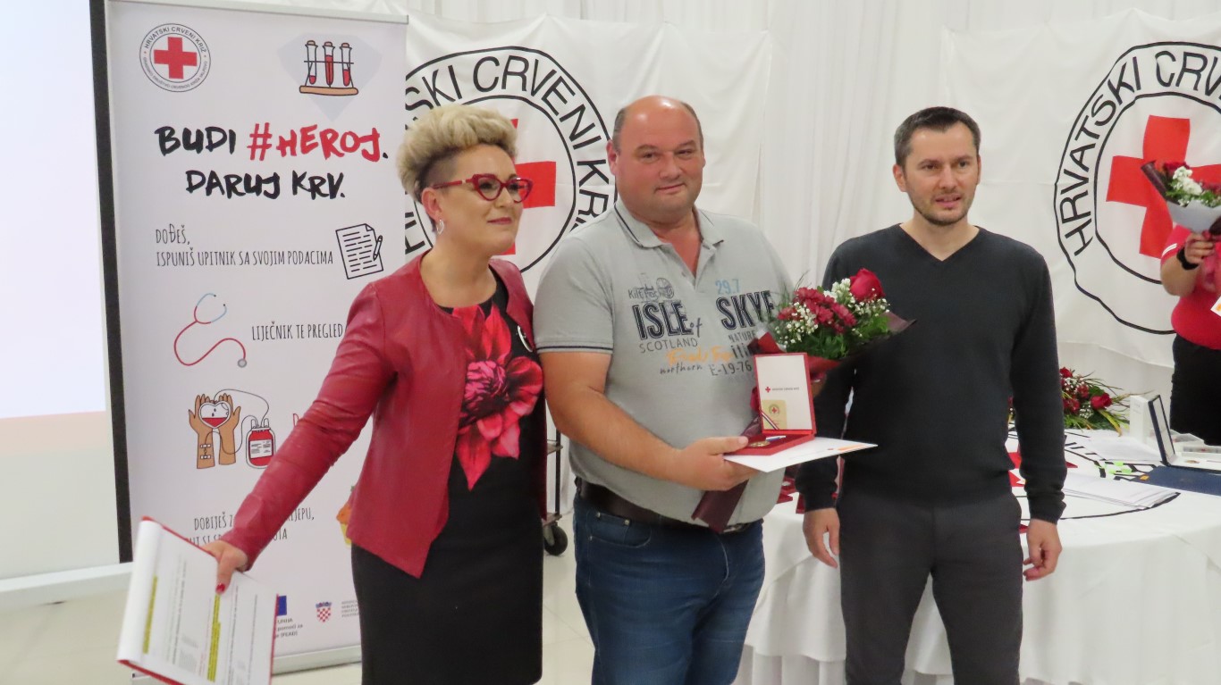 Svečanost je započela izvedbom himne, a potom je sudionike svečanosti pozdravila ravnateljica Gradskog društva Crrvenog križa Valpovo Sanja Habuda i pri tom naglasila značaj dobrovoljnog darivanja krvi u našoj društvenoj zajednici i dobrotu koju u sebi nose dobrovoljni darivatelji koji nesebično tu dobrotu šire spašavajući živote neznanim bolesnicima.