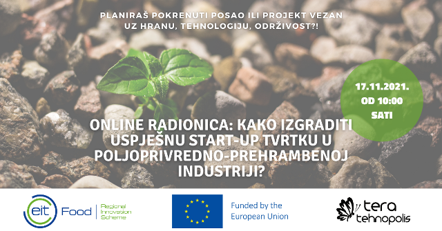 Online radionica pod nazivom ''Kako izgraditi uspješnu start-up tvrtku u poljoprivredno-prehrambenoj industriji?'' održat će se 15. studenog 2021. godine, a prijaviti se možete na ovoj poveznici.