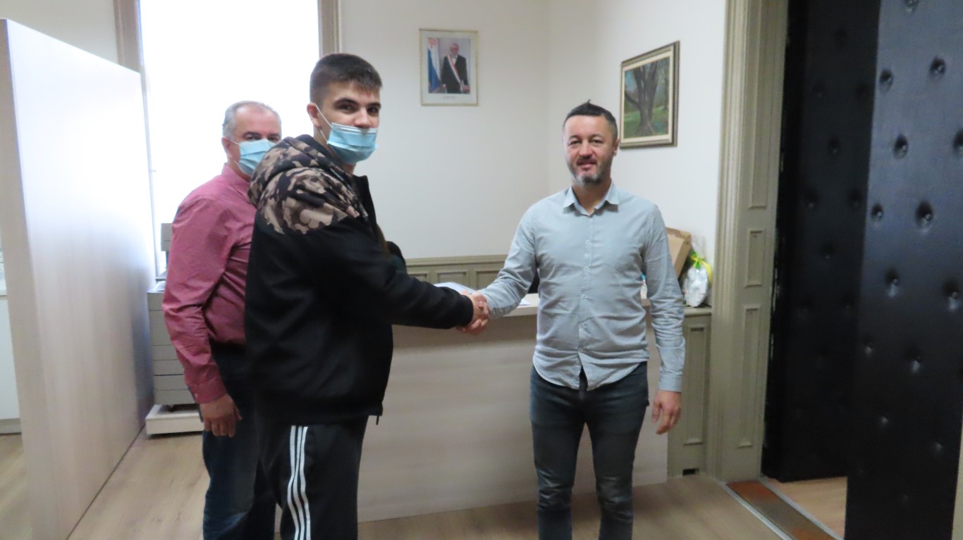 Matija je u ured gradonačelnika stigao s ocem, nekadašnjim rukometašem, a sada čelnikom RK Valpovke u kojem nastupa Matija.