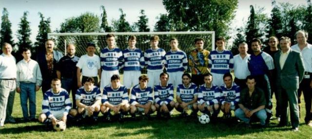 Na slici: igrači (seniori) i uprava NK BSK Termia, Bizovac-1996/97. godine- 3.HNL- osvojeno 5. mjesto.
