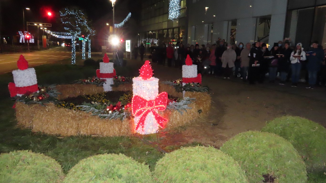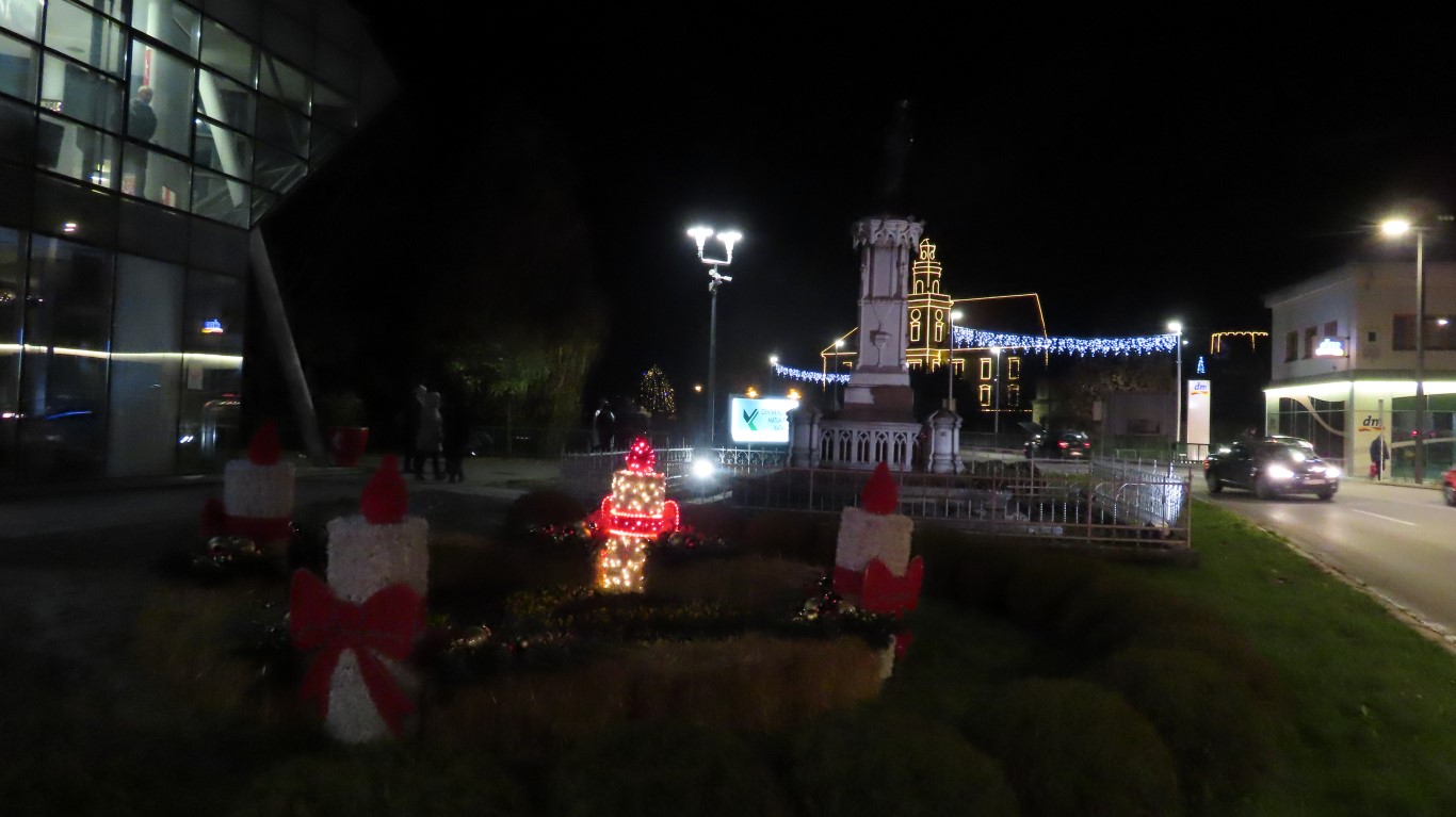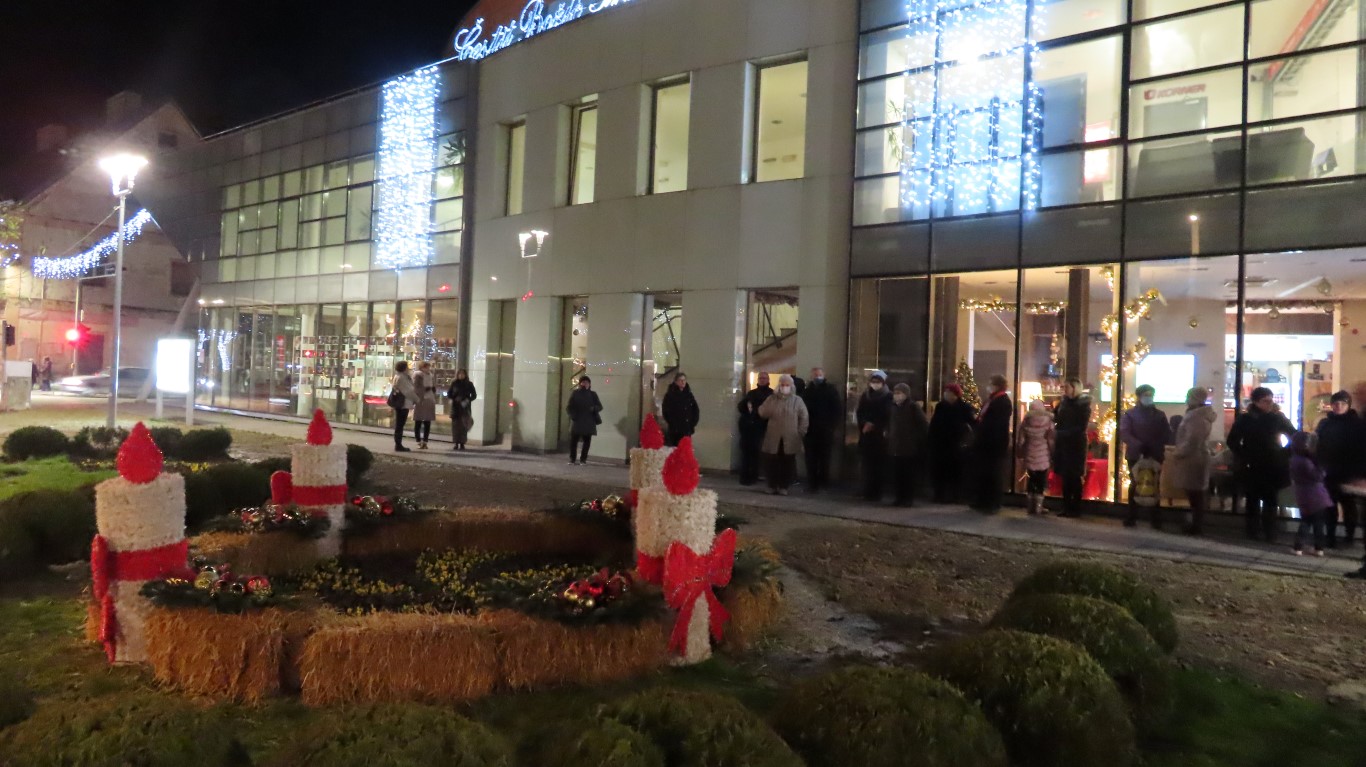 VALPOVO Paljenjem prve adventske svijeće u stiliziranom adventskom vijencu pred Centrom za kulturu Matija Petar Katančić započeo je „Advent u Valpovu 2021“.