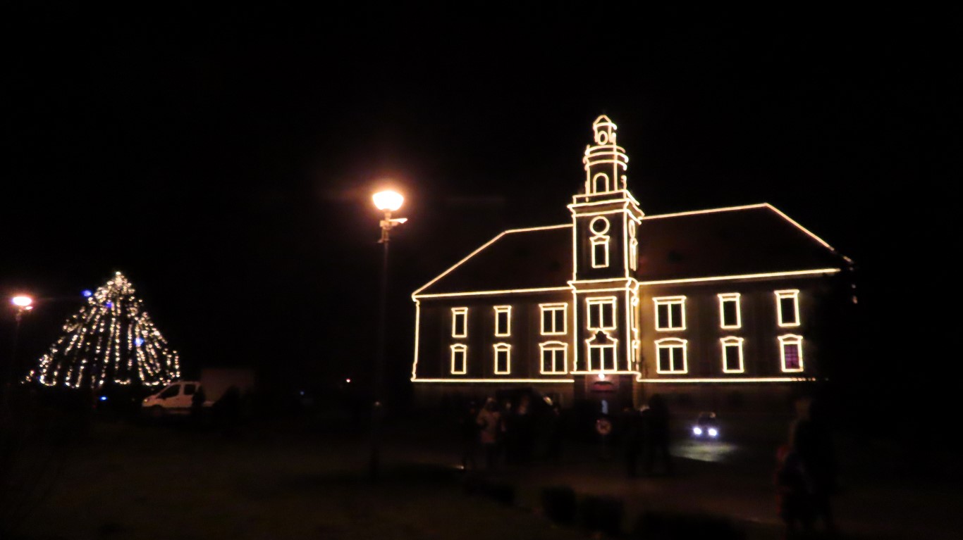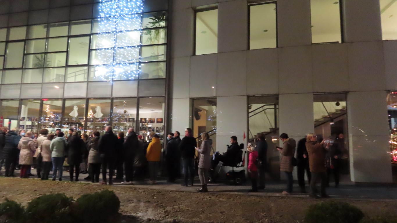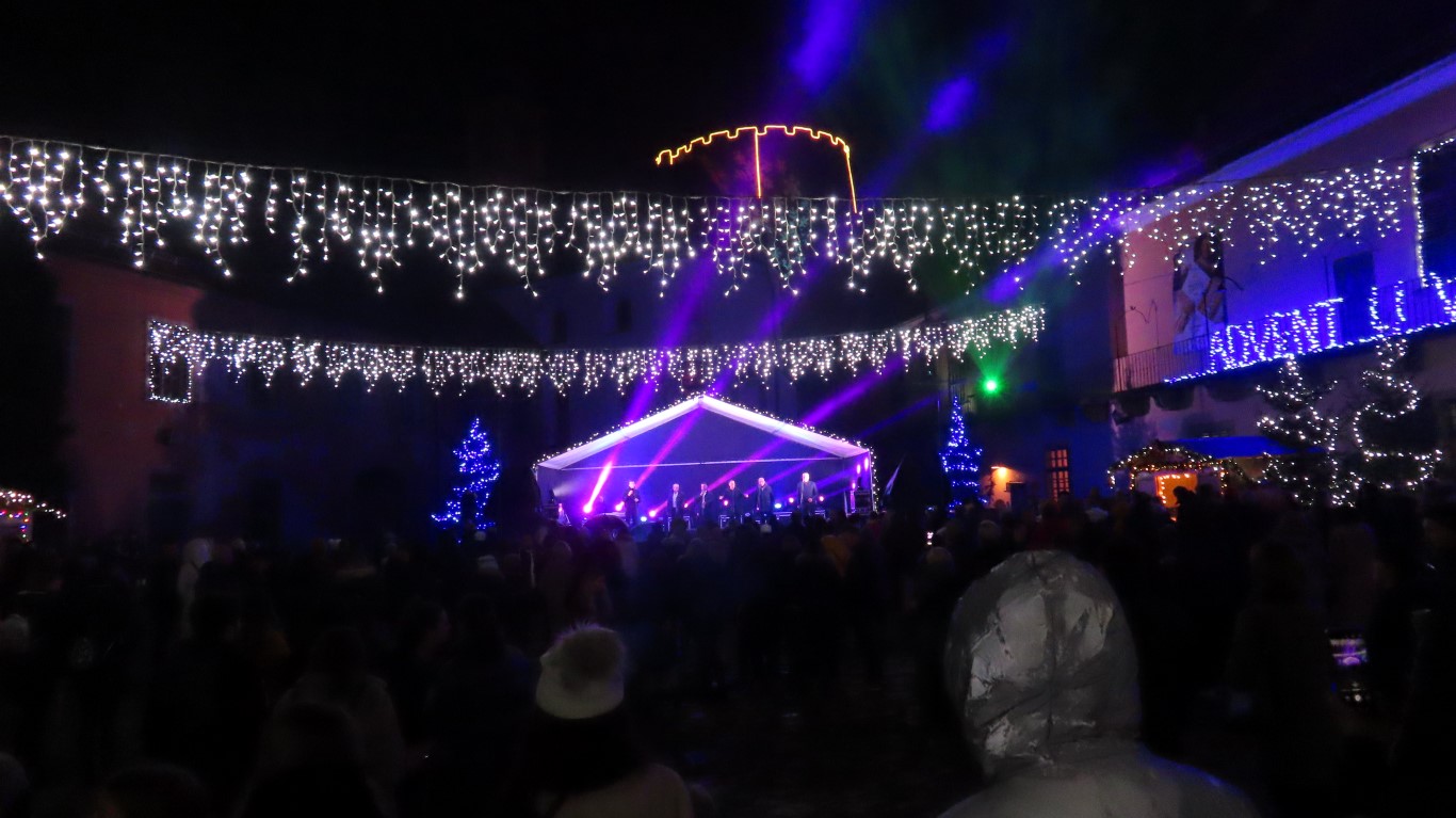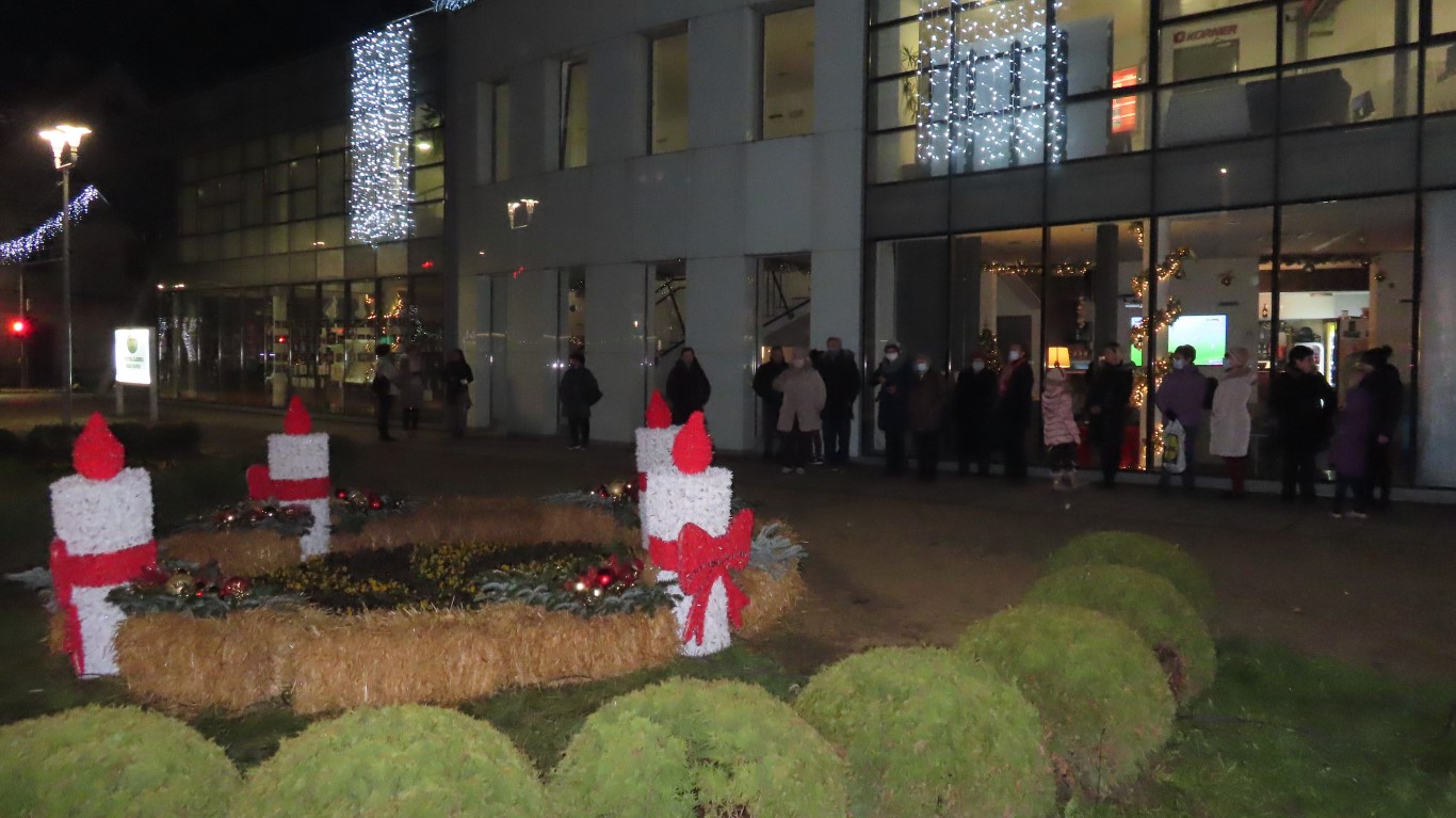 VALPOVO Paljenjem prve adventske svijeće u stiliziranom adventskom vijencu pred Centrom za kulturu Matija Petar Katančić započeo je „Advent u Valpovu 2021“.
