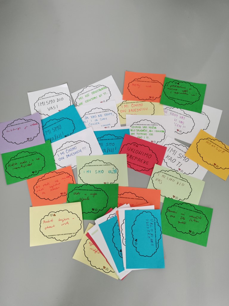 Ove godine, članovi Društvenog centra Valpovo, zajedno s prijateljima partnerima iz udruge MI Valpovo na radionici ''I MI smo dio vas'' izrađivali su, ukrasili i ispisivali razne poruke osoba s invaliditetom koje su dijelili građanima grada Valpova kako bi na taj način ukazali na važnost inkluzije osoba s invaliditetom u lokalnu zajednicu. Upravo u Društvenom centru Valpovo, tri puta tjedno, provode se aktivnosti i radionice članova i korisnika udruge MI na kojima pokazuju svoju kreativnost, druže se uz društvene igre, razgovor i još mnogo toga. Ovim putem vas pozivaju da im se pridružite na njihovim aktivnostima na adresi Darka Sutarića 1d, svakog ponedjeljka i utorka od 11 sati te svakog četvrtka od 14 sati.