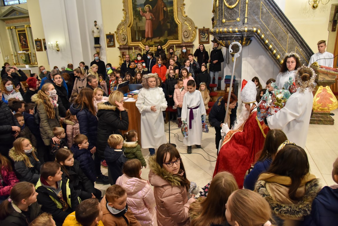Iako je bilo drugačije zamišljeno, gostovanje sv. Nikole ipak je proteklo u razdraganom raspoloženju, jer su mali, dobri Valpovčani svoje zaslužene darove primili u Župnoj crkvi Bezgrešnog začeća Blažene Djevice Marije, a tek manji dio i na predviđenim punktovima u gradu, jer- kišilo je.
