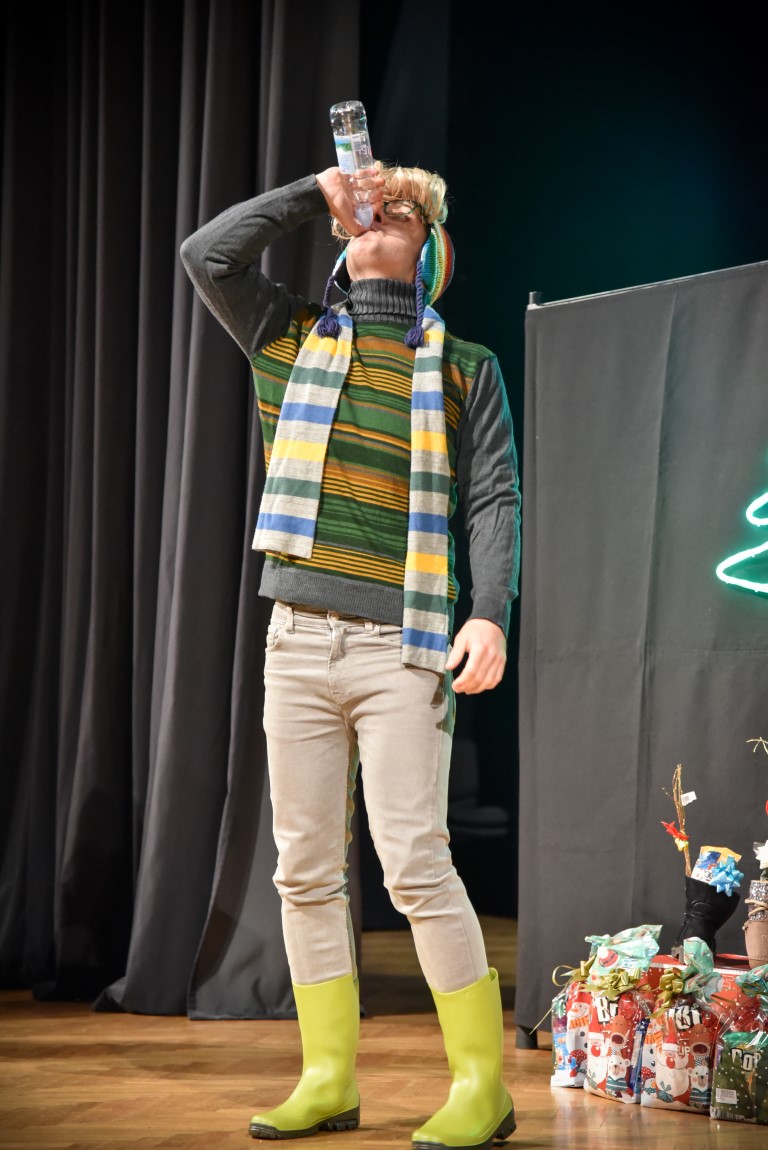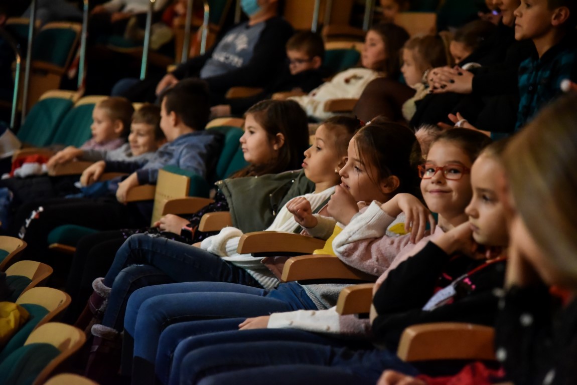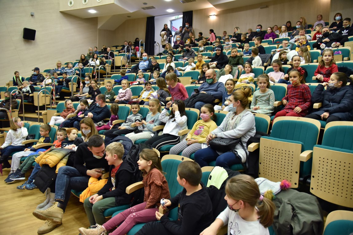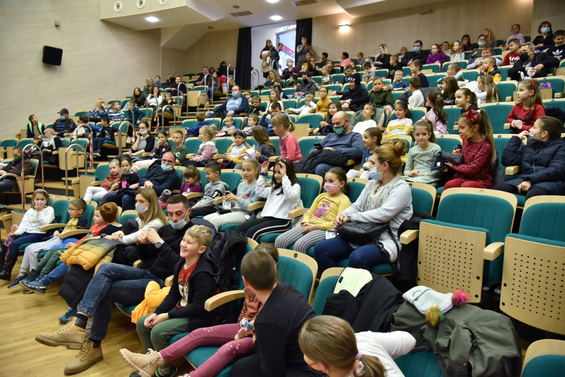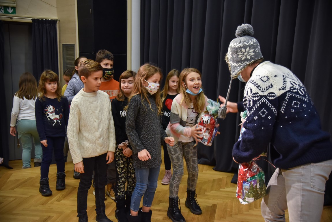 Kiša međutim nije poremetila urnebesnu atmosferu u velikoj dvorani Centra kulture Matija Petar Katančić na kazališnoj predstavi u izvedbi Dječje scene Teatra Gavran „Bjelobradi nosi darove“ za učenike razredne nastave Osnovne škole Valpovo, gdje je uz uživanje u vedroj i veseloj predstavi također bilo prigodnih darova.