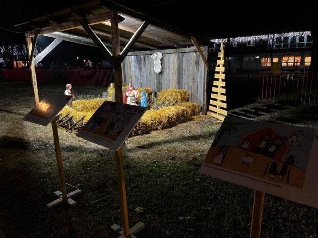 To je druga slikovnica na otvorenom u organizaciji Centra za kulturu Sigmund Romberg, a u realizaciji učenika 3.d razreda Osnovne škole Ivana Kukuljevića Belišće, i njihove kreativne učiteljice Karmen Soldo. I ovoga puta djeca su, na svoj jedinstveni, neponovljivi način, ilustrirala priču o Isusovom rođenju, priču koja nadahnjuje generacije.