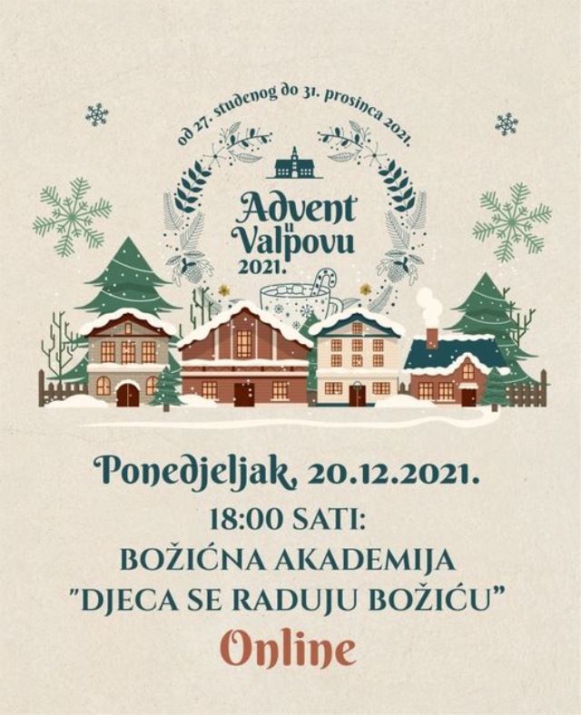 U bliskoj suradnji s ravnateljima dječjih vrtića „Maza“ i „Moj Bambi“ iz Valpova, donijeli su odluku kako će se Božićna akademija „Djeca se raduju Božiću“, koja je predviđena za ponedjeljak, 20. prosinca 2021. godine, ODRŽATI, ali u ONLINE obliku!