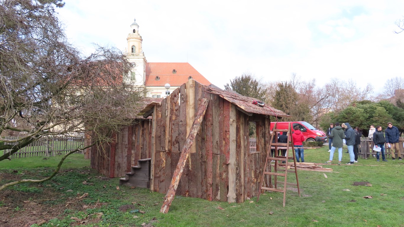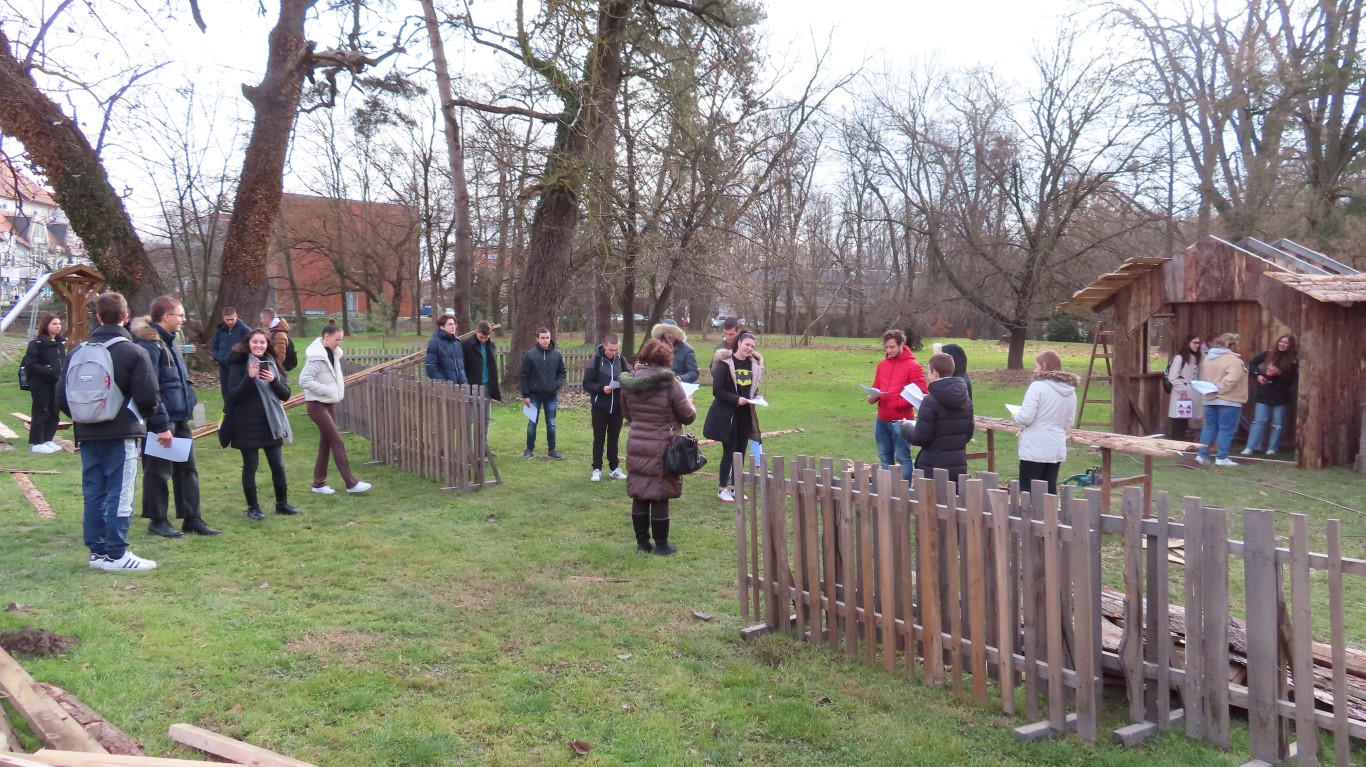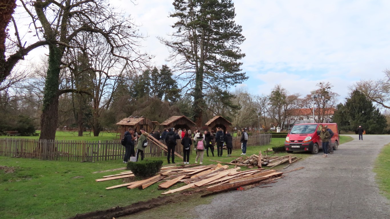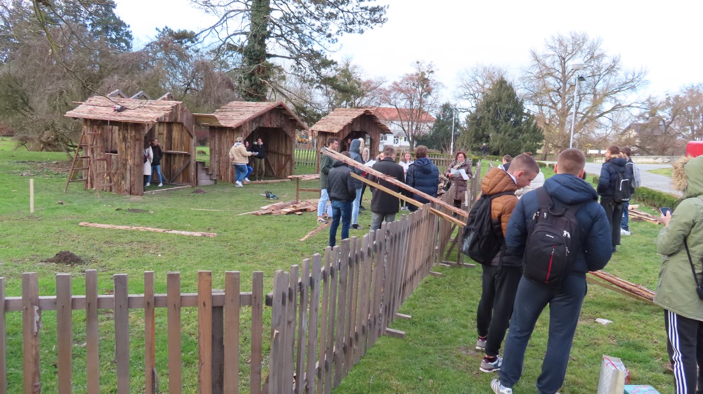 U današnjoj smo ophodnji gradom, u dijelu izgrađenog seoceta, zatekli grupu srednjoškolaca s profesoricom Marijom Jelkić na probi scenskog prikaza, a graditelji, obrtnici pod vodstvom Tomislava Moraveka i iskusnog majstora Martina Glavice, na trenutak su odmorili. U izgradnju svih koliba bit će utrošeno petnaestak kubika drvene građe. Radovi još nisu gotovi i nastavit će se i sljedećih dana, ali, sve će biti spremno za premijernu izvedbu 28. prosinca u 17 sati.