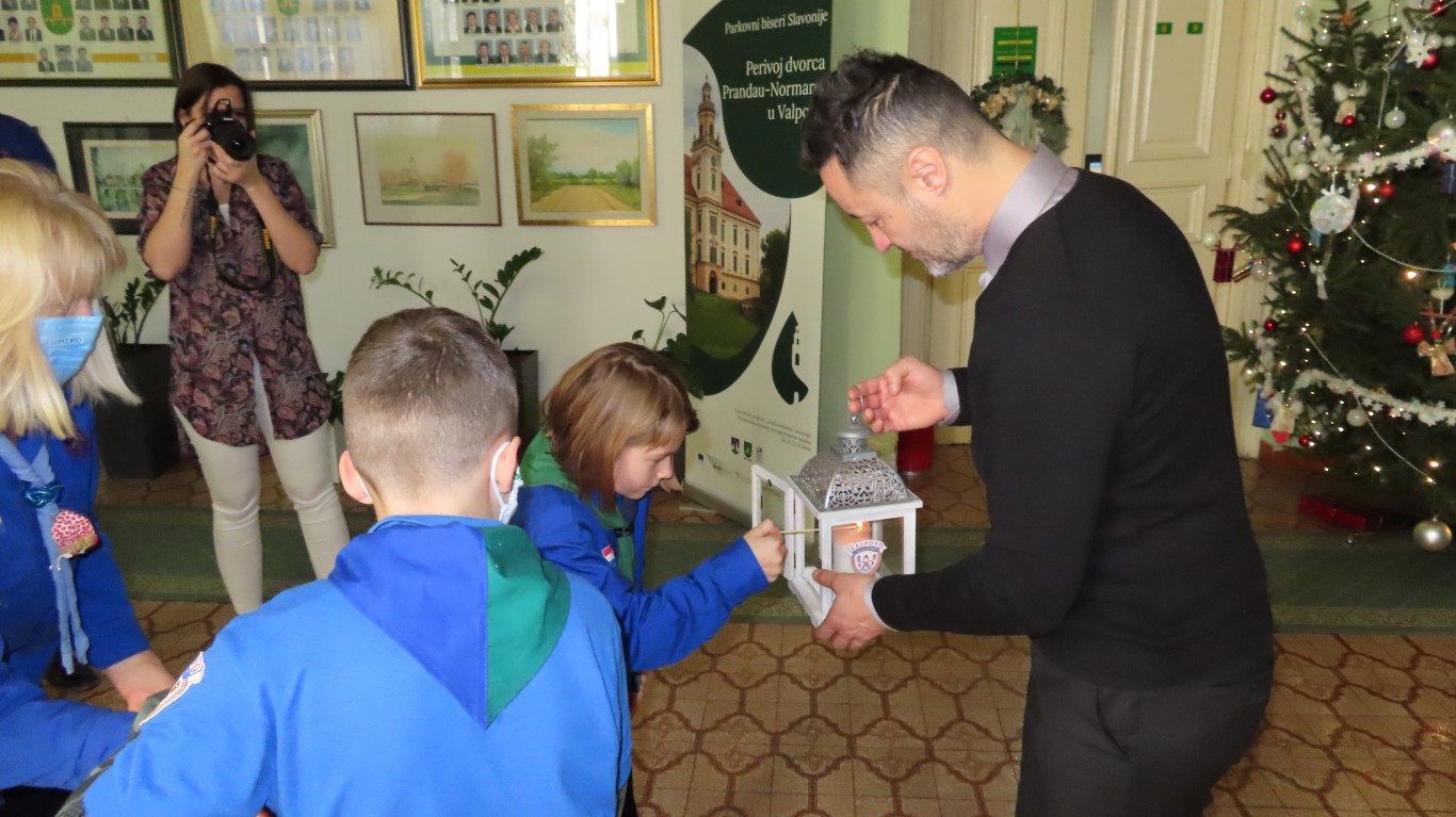 VALPOVO Od danas u Gradskoj upravi, podno božićne jelke, svijetli Betlehemsko svjetlo mira.