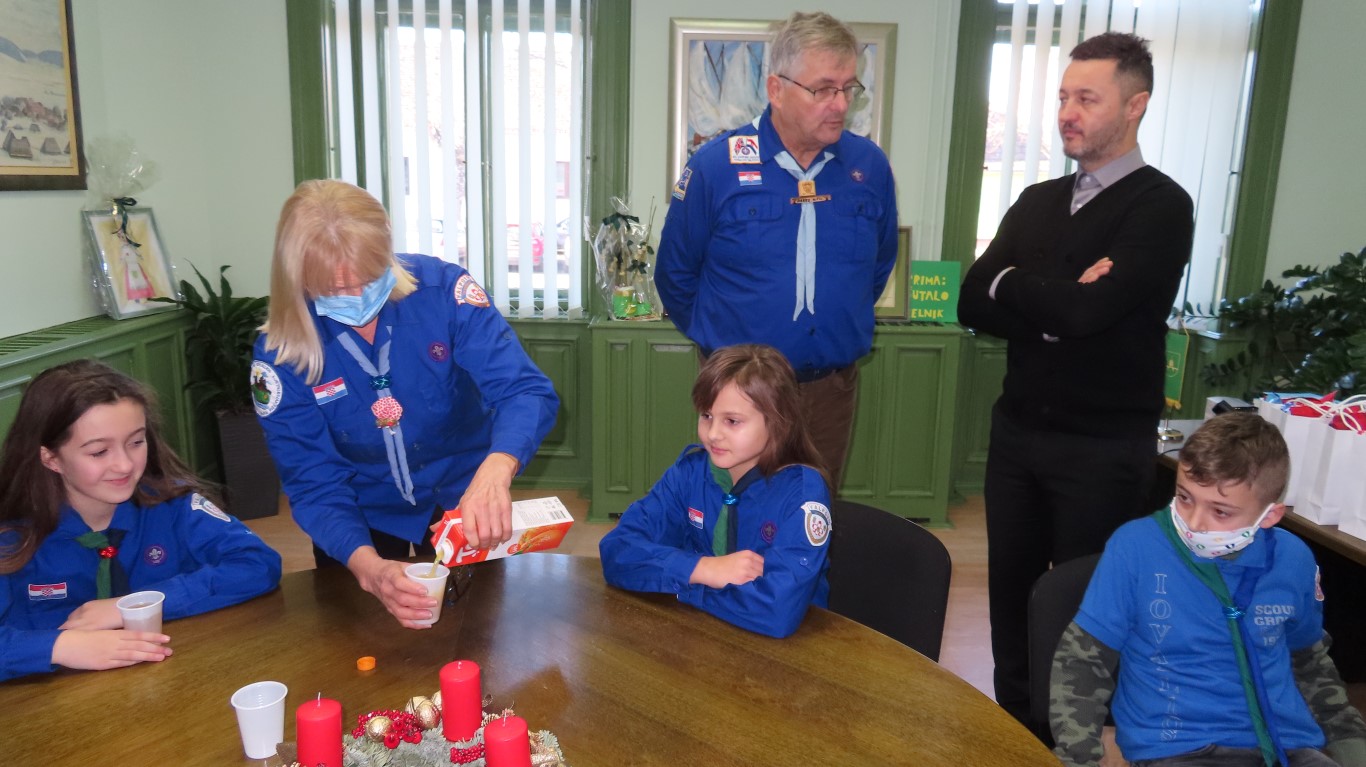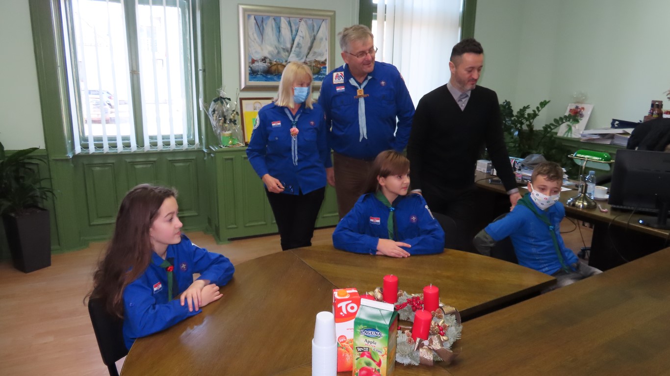 Izaslanstvo Odreda izviđača „Iovallios“ posjetilo je danas Gradsku upravu i gradonačelniku Matku Šutalu darivalo Betlehemsko svjetlo, kao jedinstveni simbol Božića koji u Bibliji simbolizira dolazak Isusa, a njegovim rođenjem je bio obećan mir svim ljudima dobre volje.
