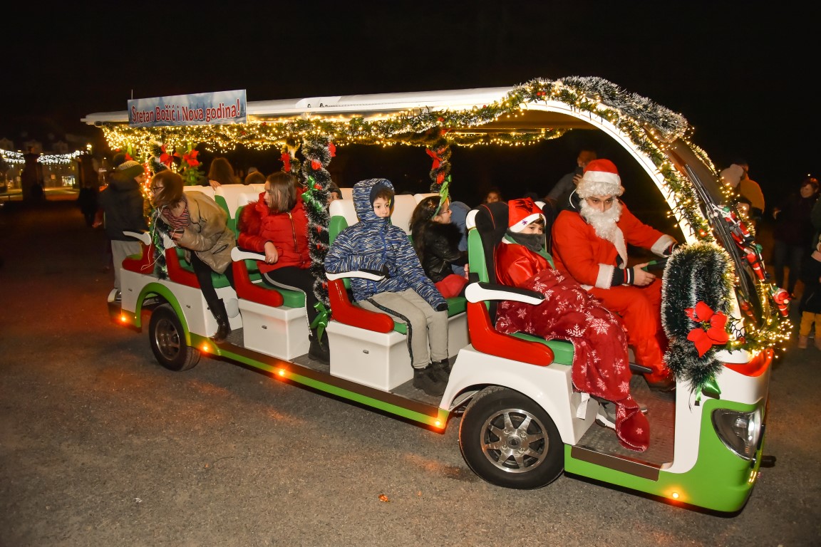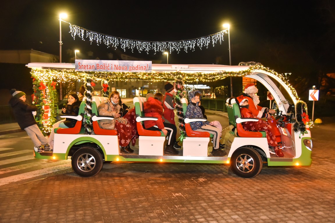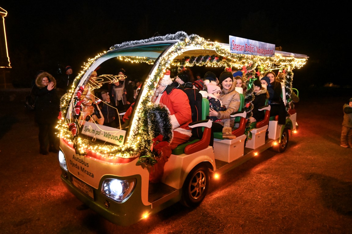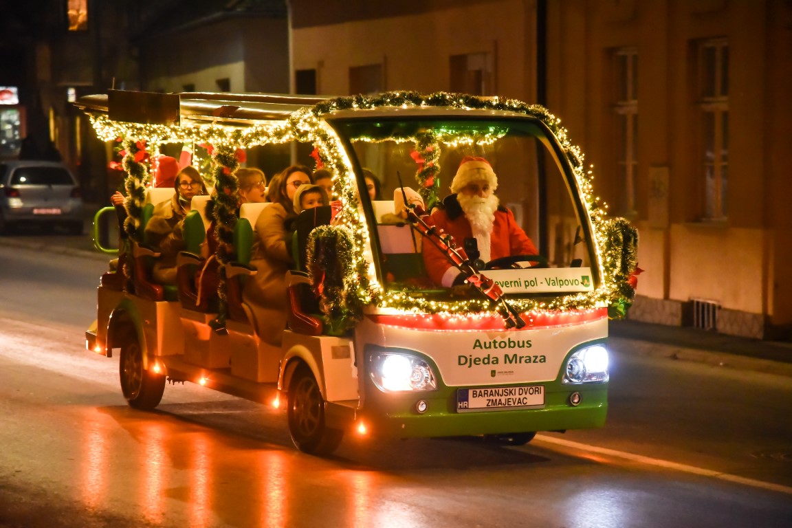 VALPOVO Na radost mnogobrojne djece u Valpovo je jučer, nešto prije 18 i 30 sati došao autobus djeda Božičnjaka.
