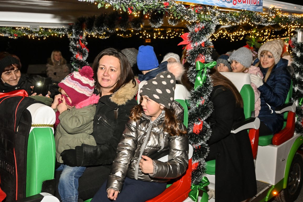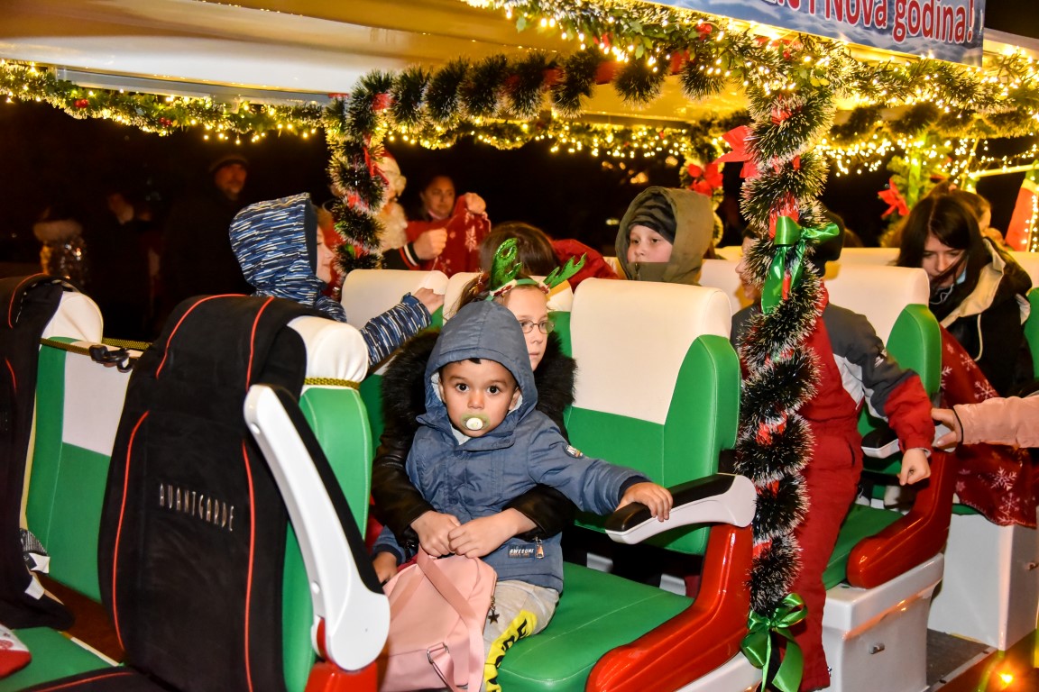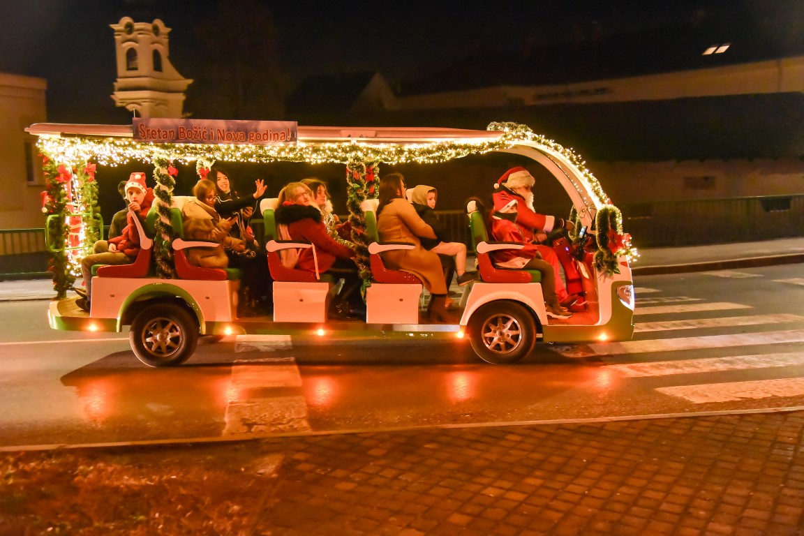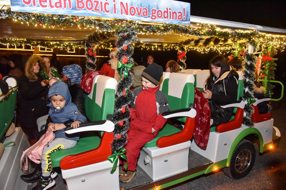 VALPOVO Na radost mnogobrojne djece u Valpovo je jučer, nešto prije 18 i 30 sati došao autobus djeda Božičnjaka.