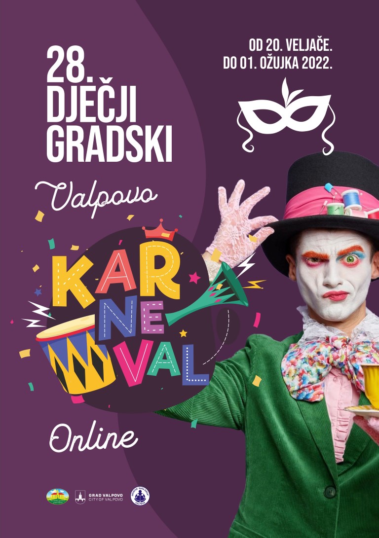 S obzirom na nepovoljnu epidemiološku situaciju, Turistička zajednica Grada Valpova, Grad Valpovo i Društvo „Naša djeca“ Grada Valpova ove su godine pripremili 28. Dječji gradski karneval u nešto drugačijem obliku, za kojeg vjerujemo da će potaknuti svu kreativnost roditelja, baka i djedova, ali i onih najmlađih! Maskirajte se, proslijedite nam fotografiju i sudjelujte u Online Dječjem gradskom karnevalu gdje za svoju maštovitost možete osvojiti i vrijedne nagrade!