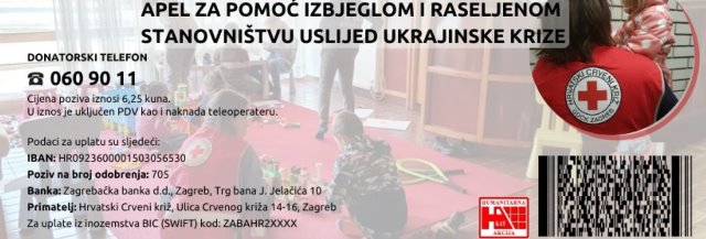 I dalje je otvoren apel za pomoć raseljenim osobama iz Ukrajine i oni koji žele pomoći mogu to učiniti uplatom na žiro račun: