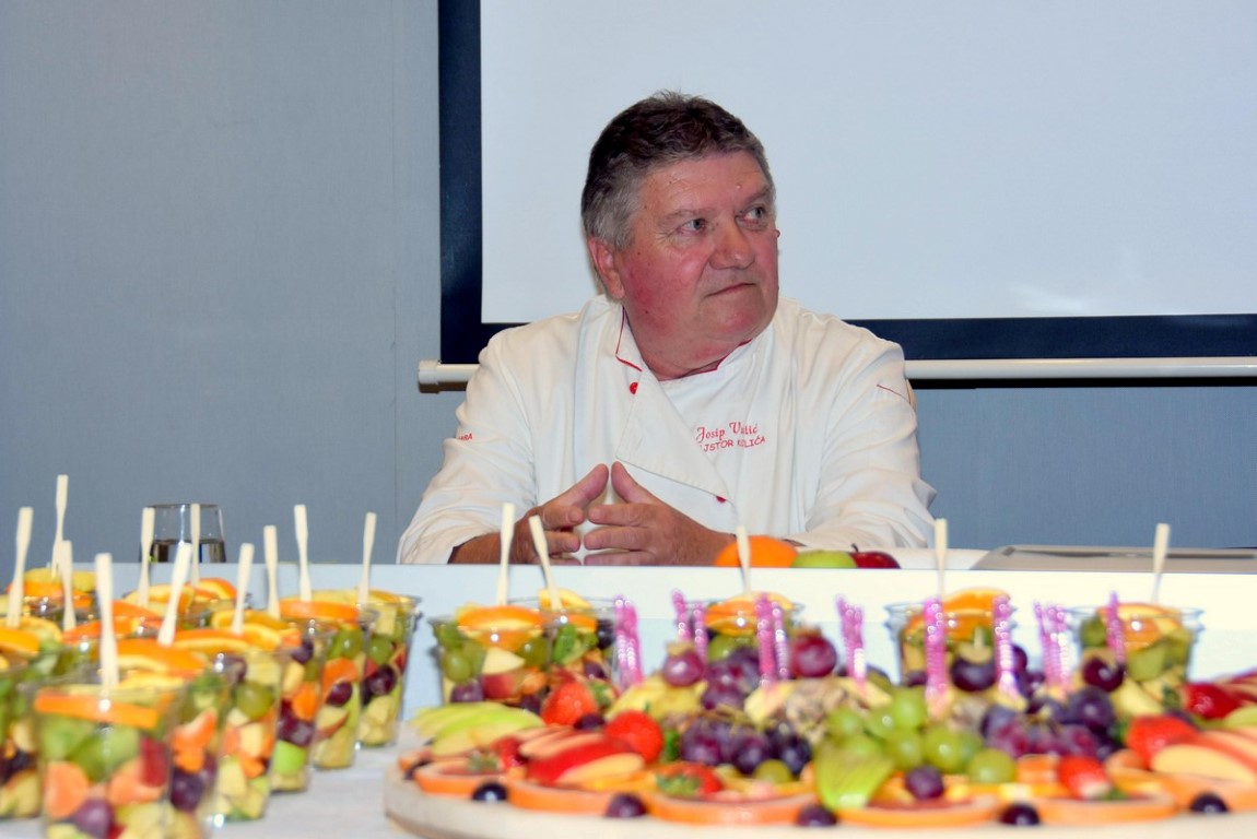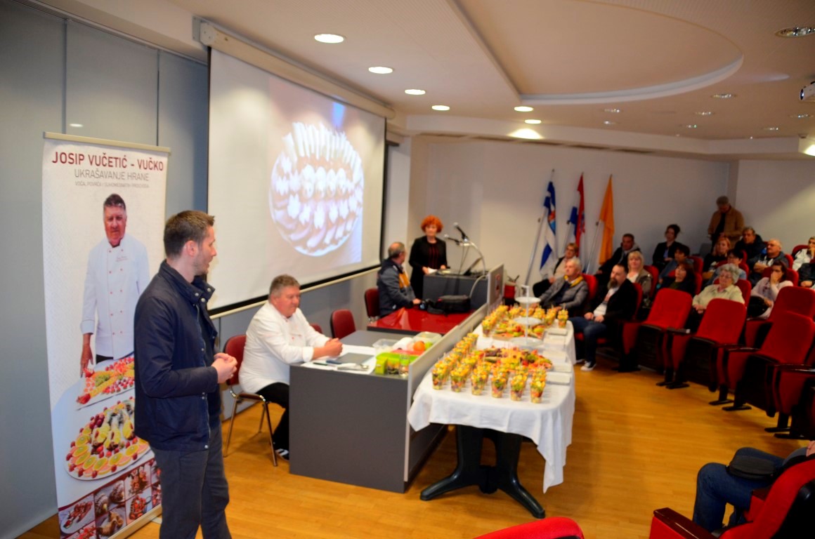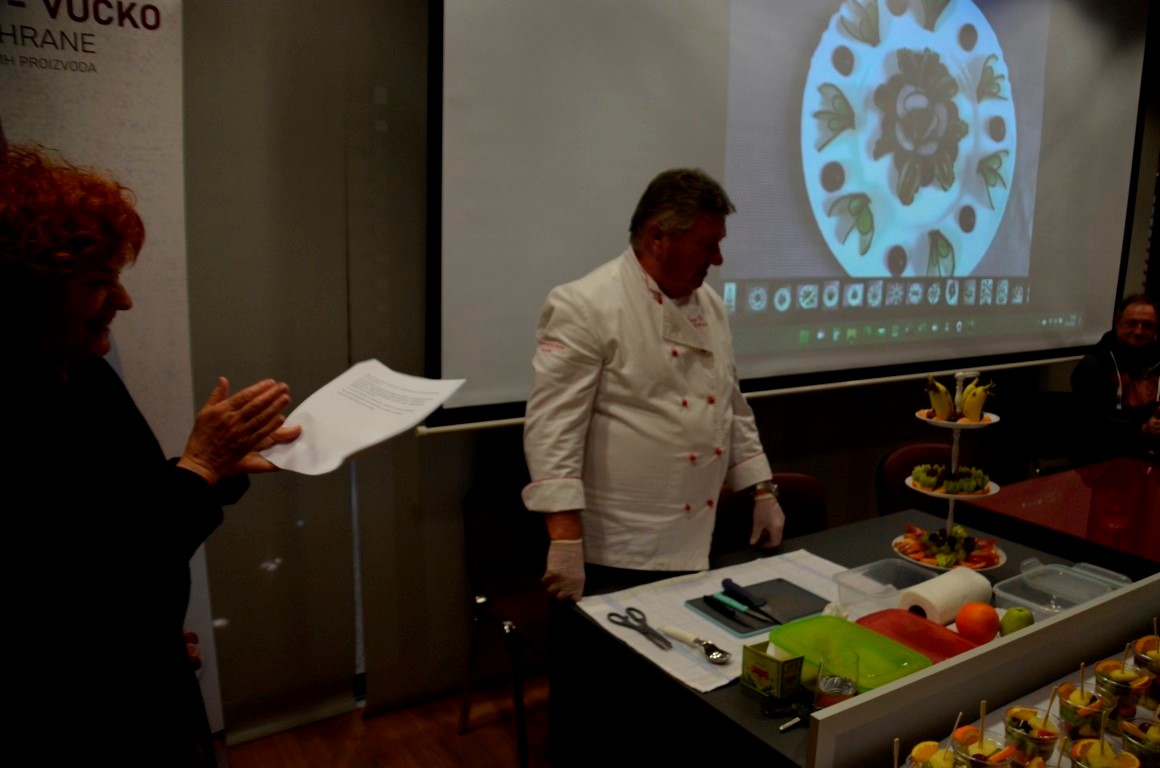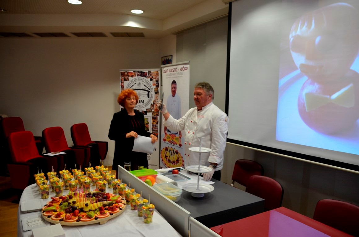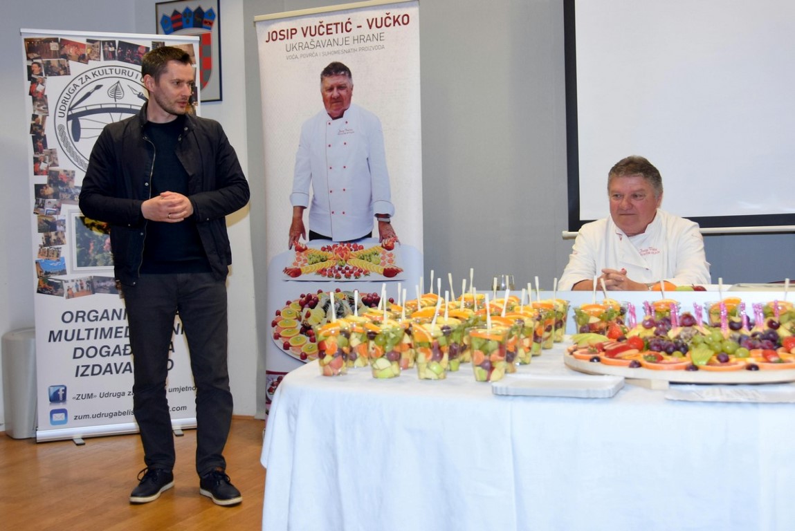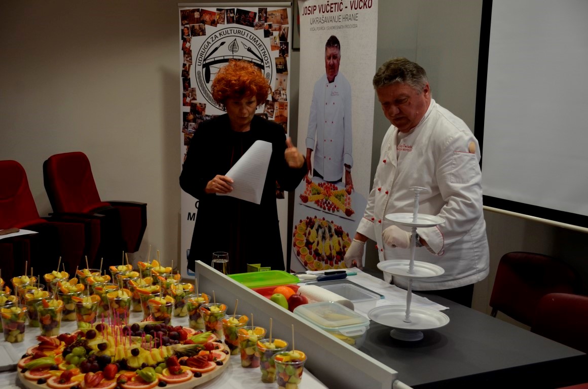 Uvodno, Vladimir Vazdar se s nekoliko rečenica osvrnuo na povijest ukrašavanja hrane, a potom je Josip Vučetić Vučko prikazao vještinu obrade voća i izradu plate. Izradu voćnog aranžmana popratio je uputama, a moderatorica, Ana Vazdar, prigodnim je komentarima predstavila voditelja radionice i njegov rad, pojašnjavajući pojedine faze izrade.