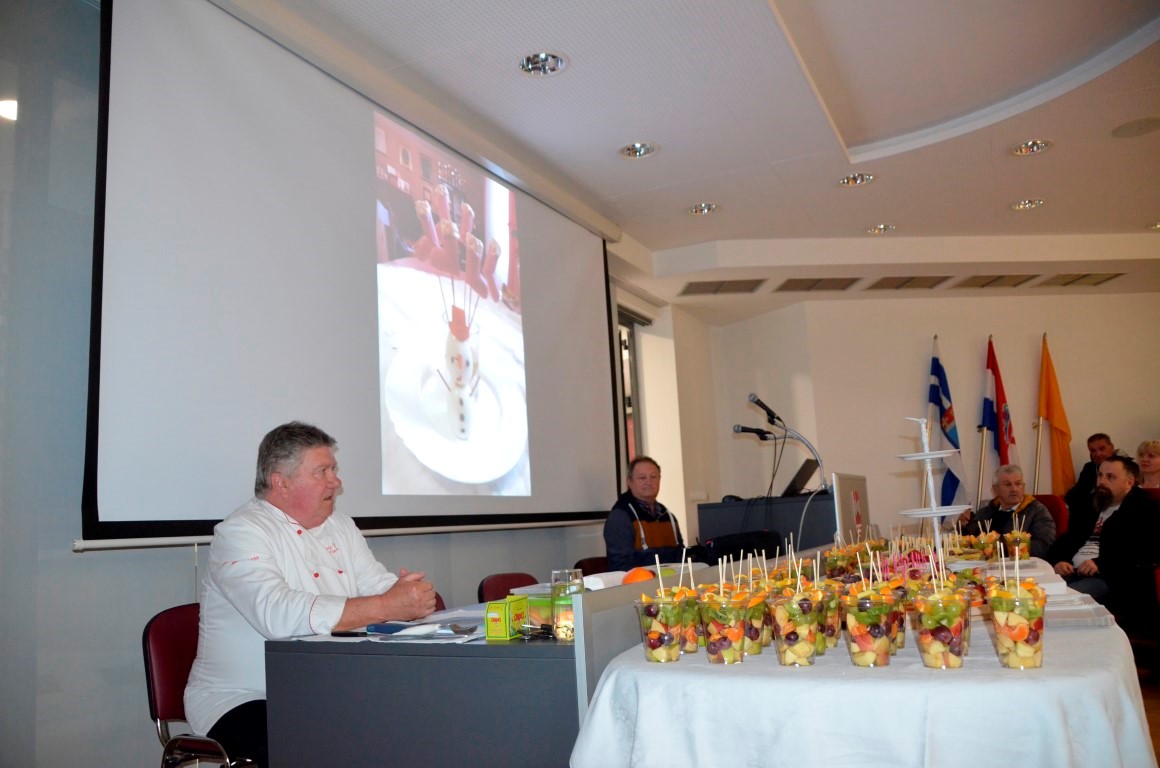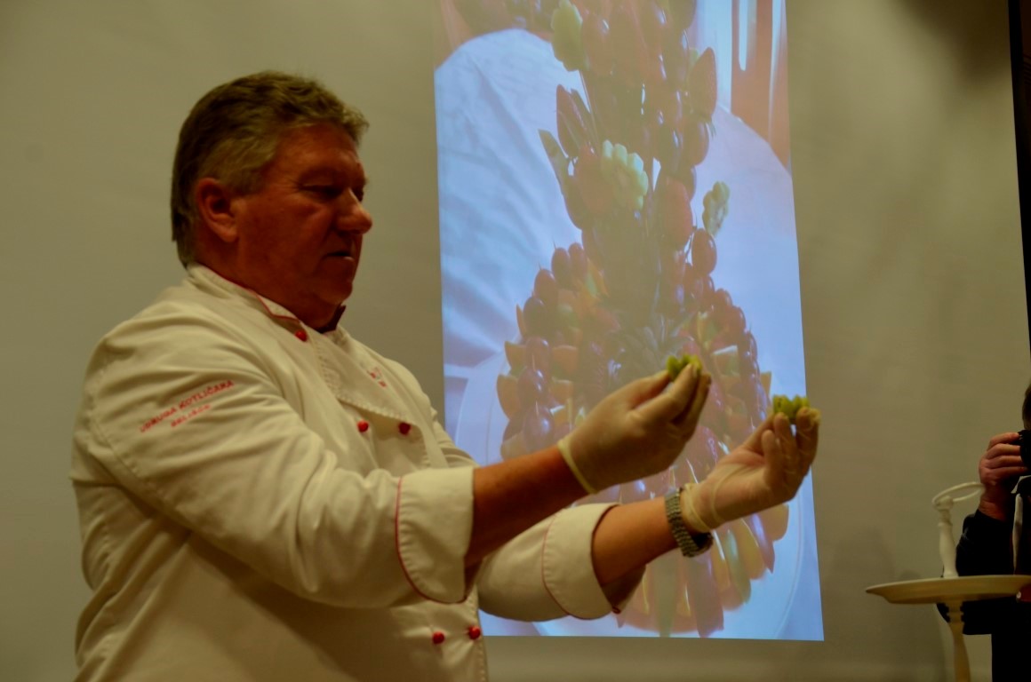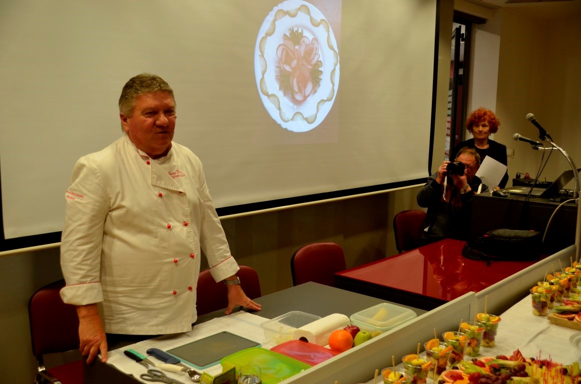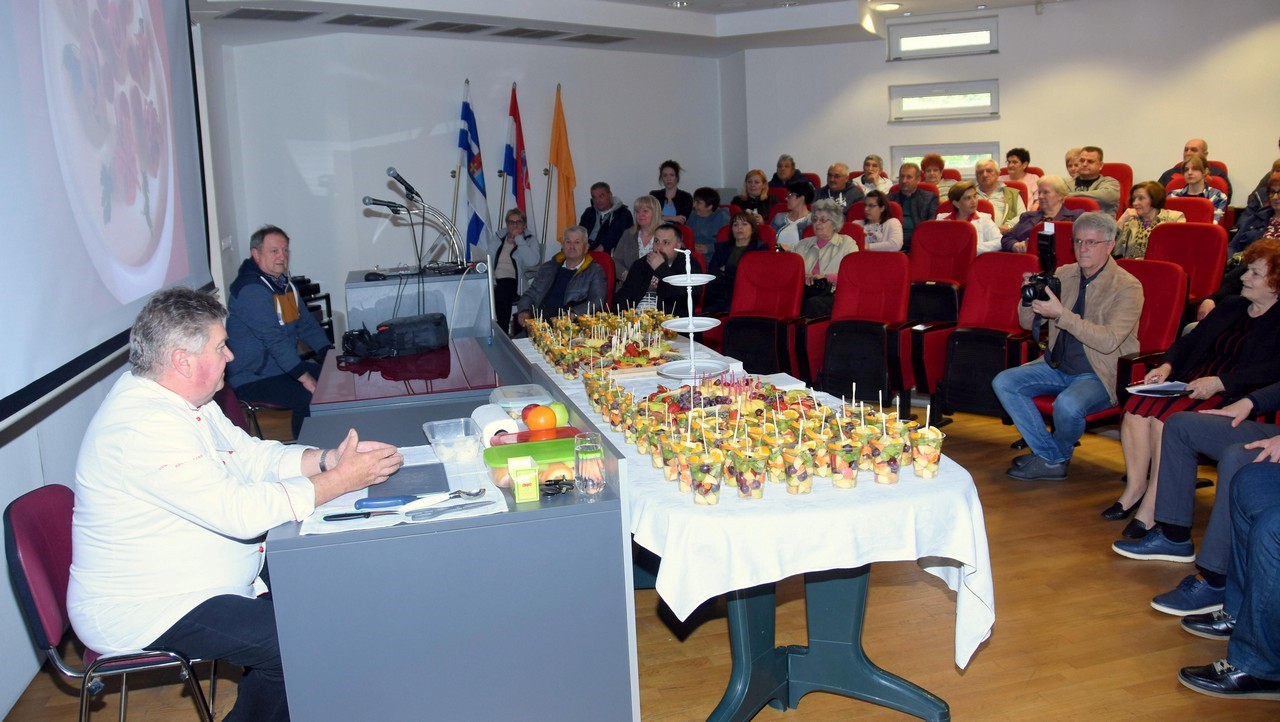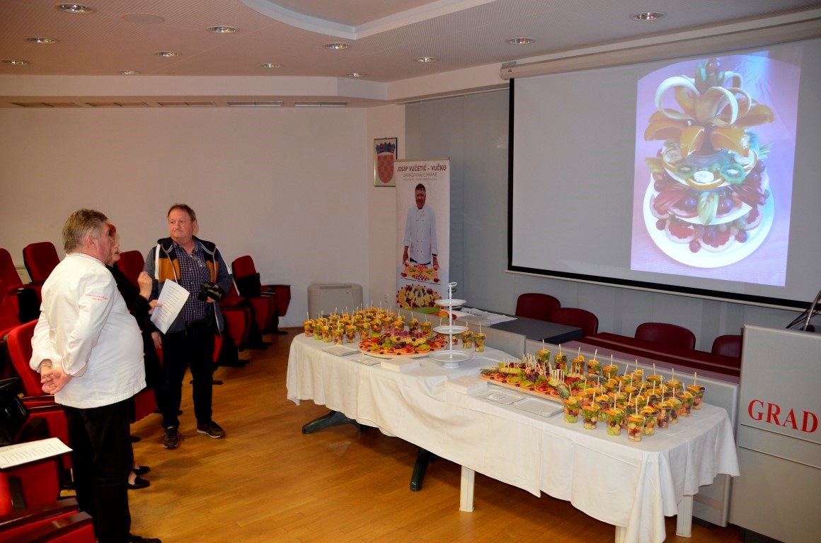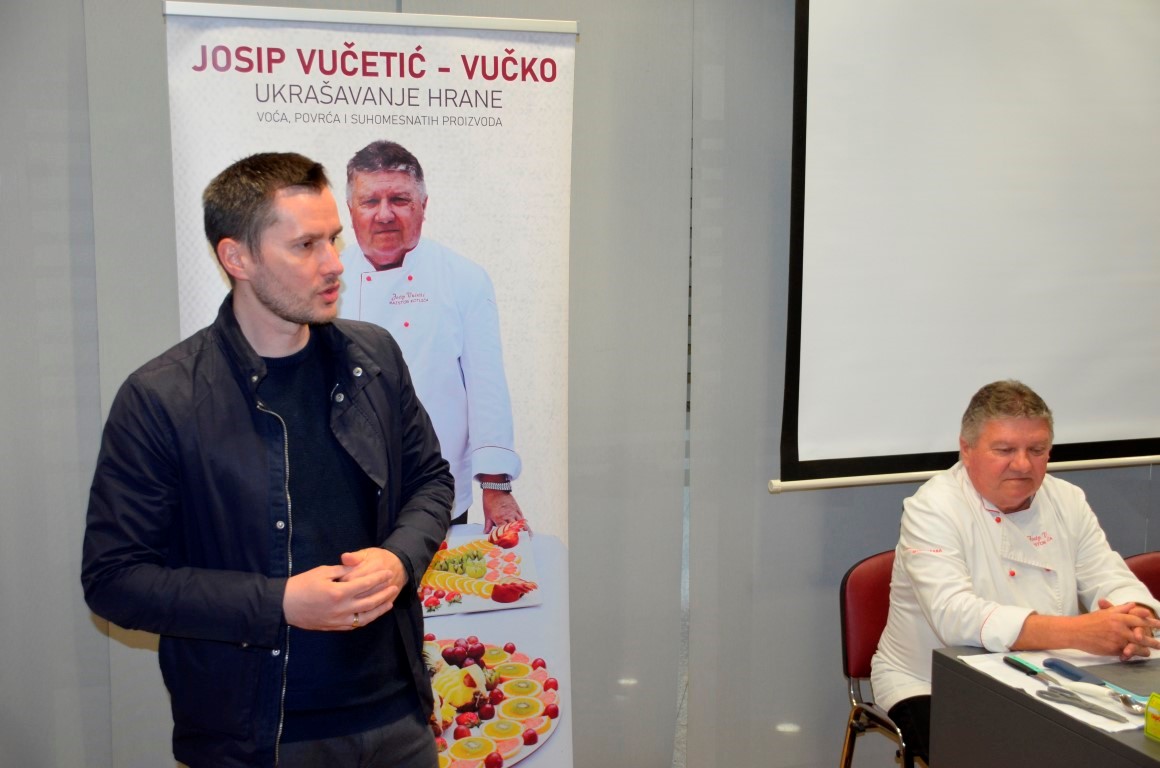 Uvodno, Vladimir Vazdar se s nekoliko rečenica osvrnuo na povijest ukrašavanja hrane, a potom je Josip Vučetić Vučko prikazao vještinu obrade voća i izradu plate. Izradu voćnog aranžmana popratio je uputama, a moderatorica, Ana Vazdar, prigodnim je komentarima predstavila voditelja radionice i njegov rad, pojašnjavajući pojedine faze izrade.