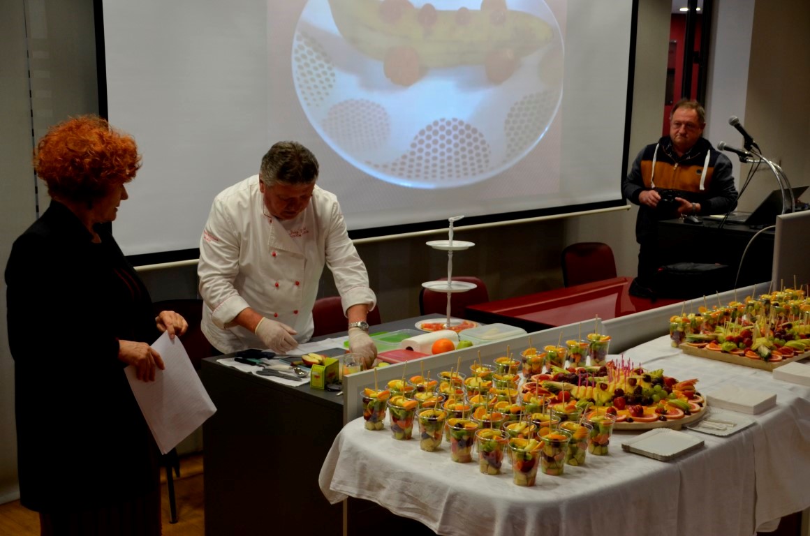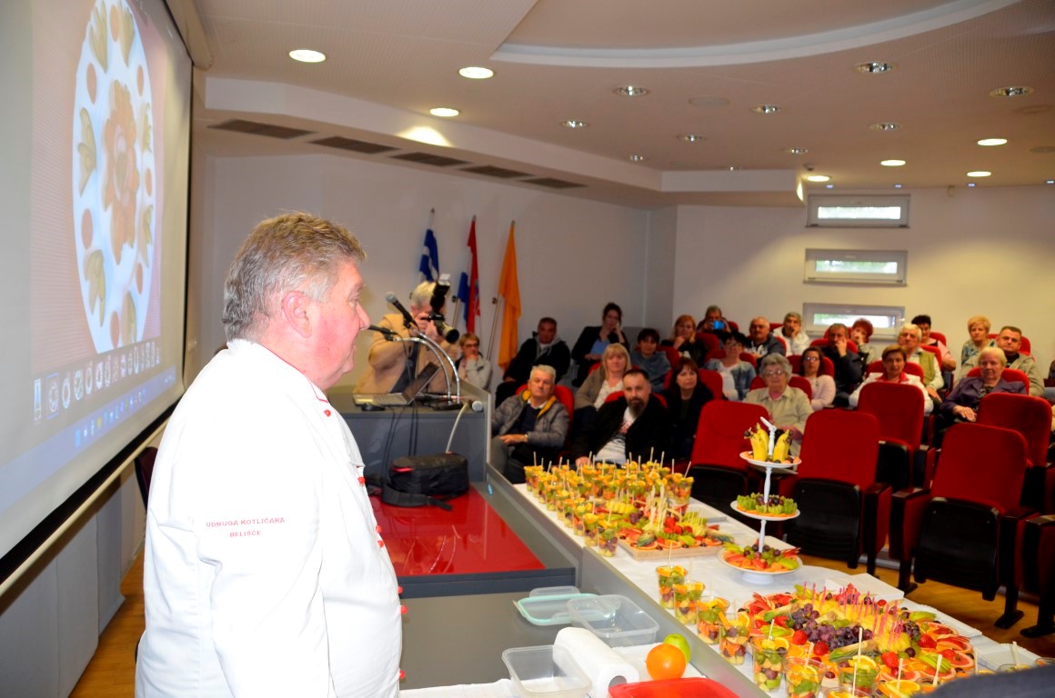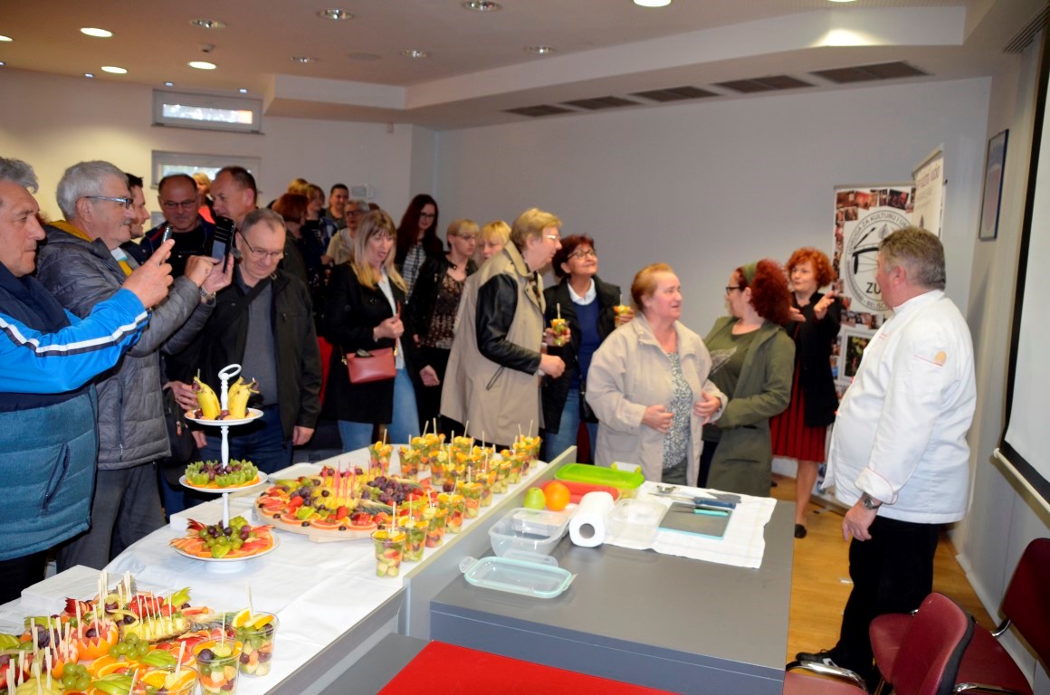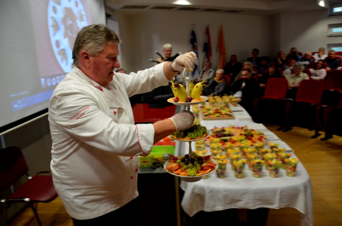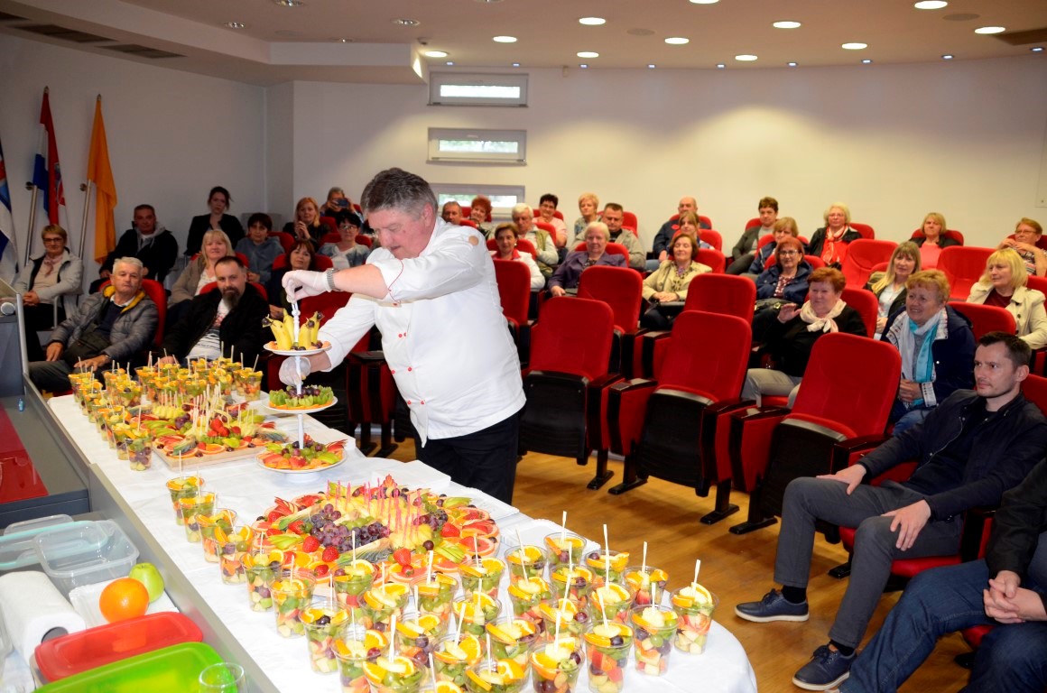 Tijekom jednosatne radionice koju je pratila projekcija već gotovih aranžmana ukrašene hrane, nastala je voćna plata, koja je bila ukusan dar posjetiteljima zajedno s već unaprijed pripremljenom prigodno serviranom voćnom salatom i ukrašenim voćnim delicijama.