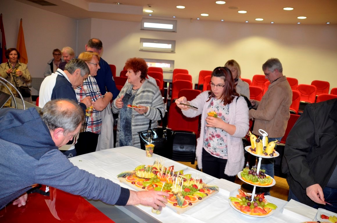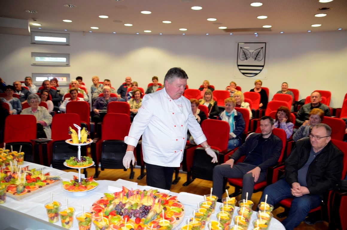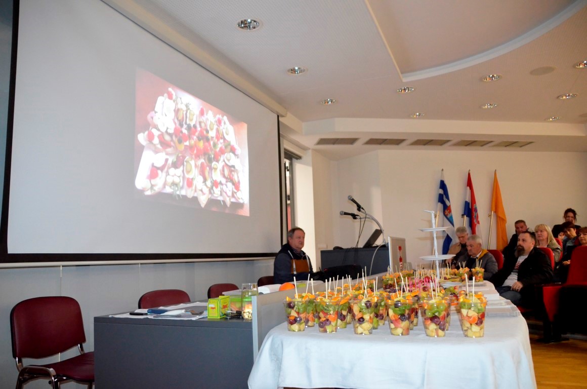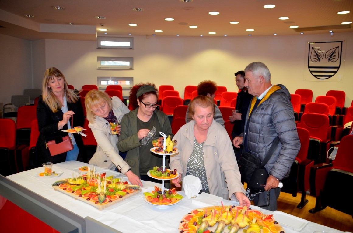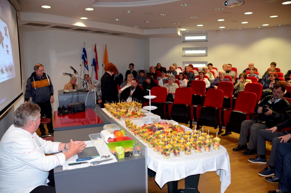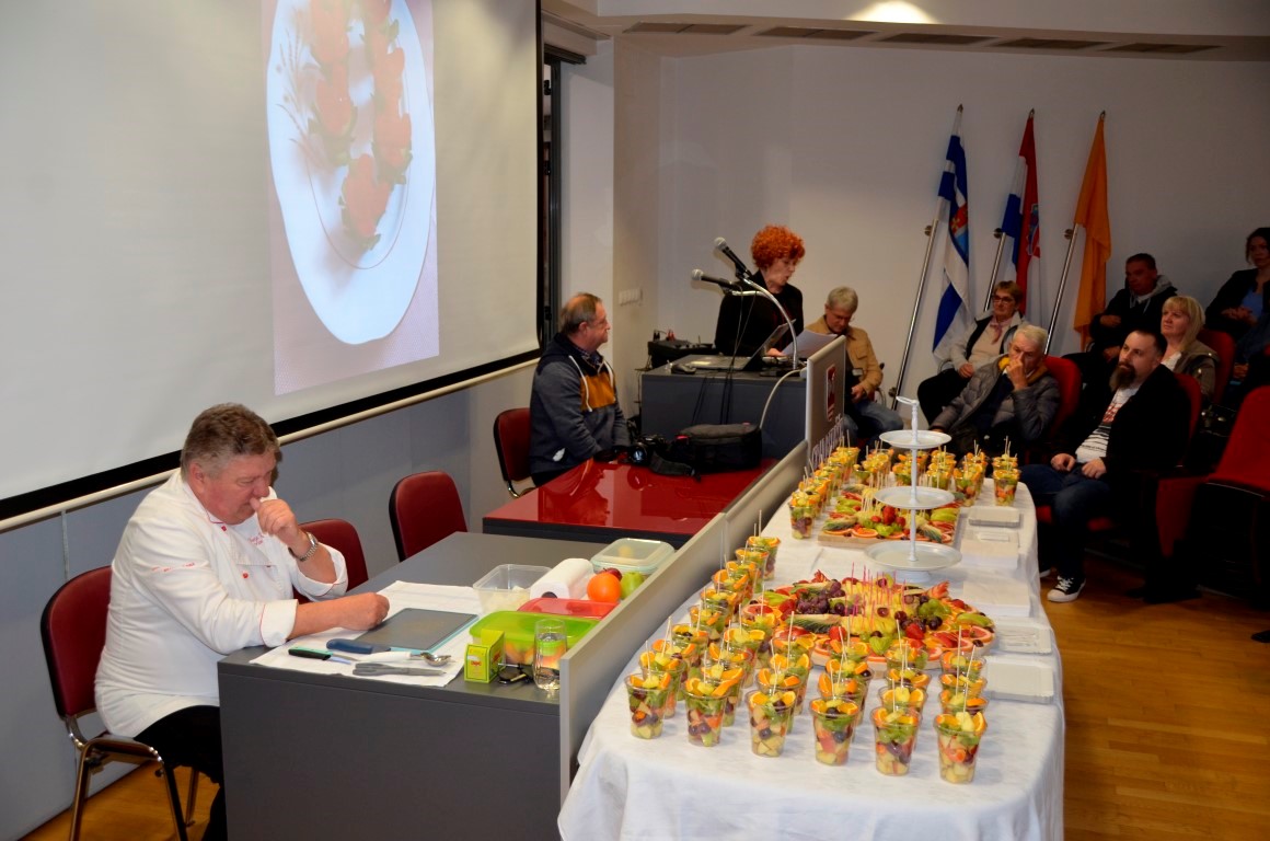 Tijekom jednosatne radionice koju je pratila projekcija već gotovih aranžmana ukrašene hrane, nastala je voćna plata, koja je bila ukusan dar posjetiteljima zajedno s već unaprijed pripremljenom prigodno serviranom voćnom salatom i ukrašenim voćnim delicijama.