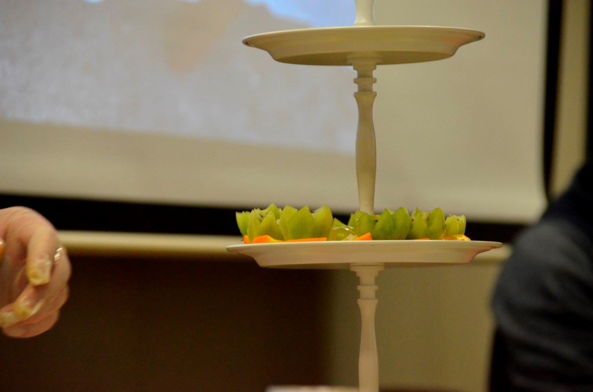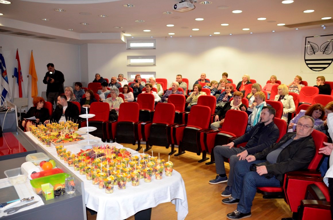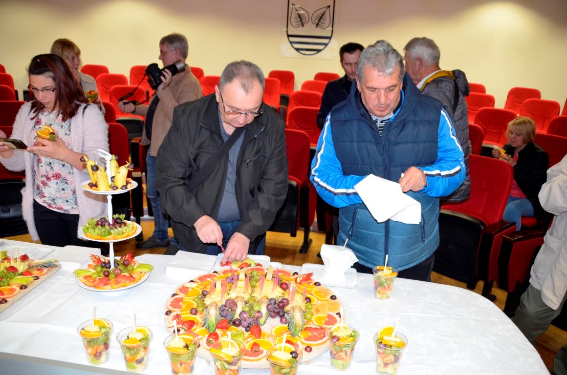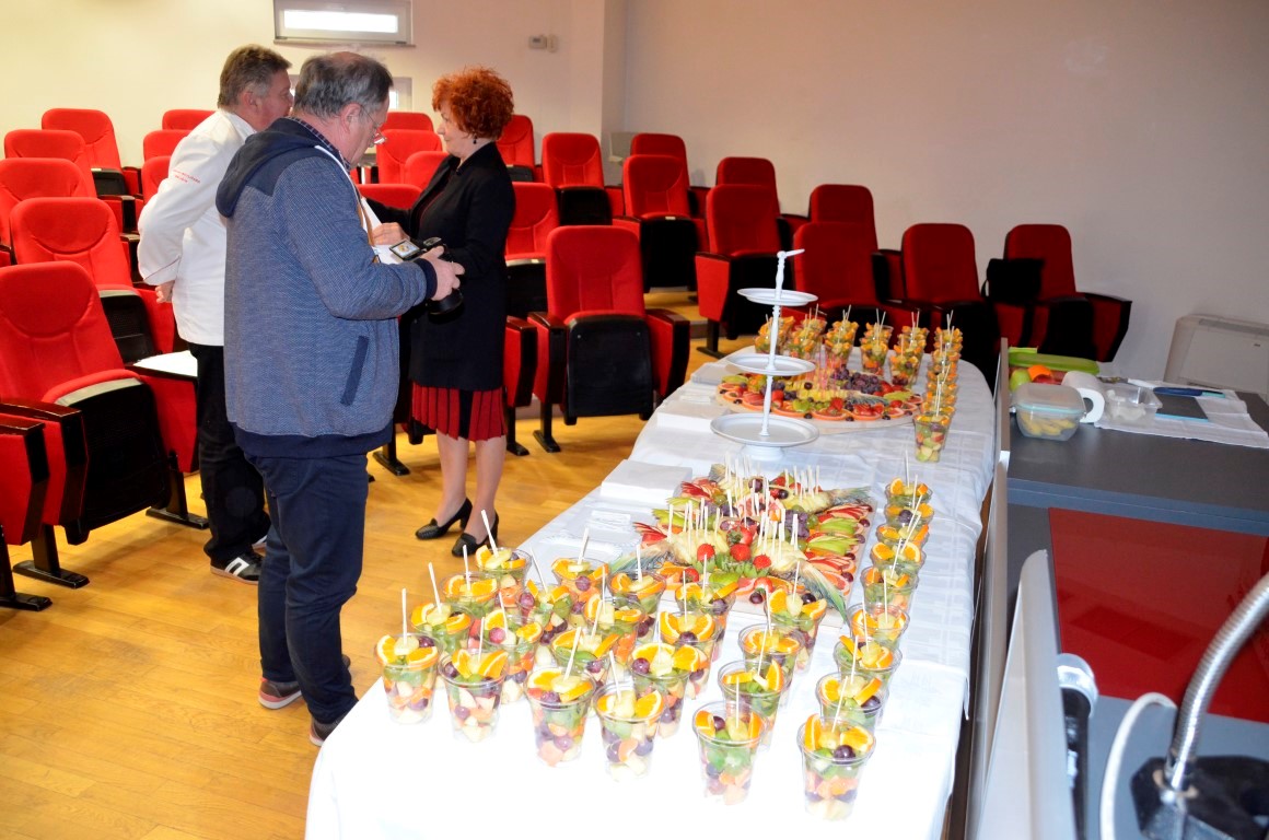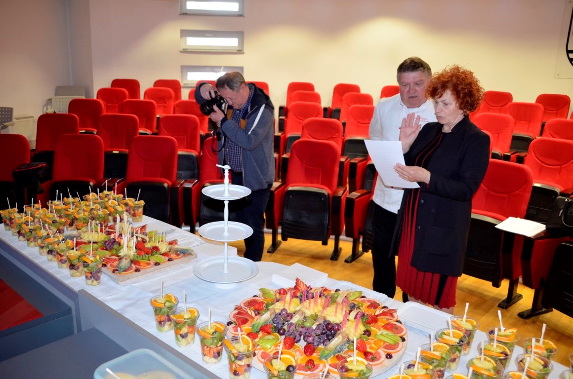 Tijekom jednosatne radionice koju je pratila projekcija već gotovih aranžmana ukrašene hrane, nastala je voćna plata, koja je bila ukusan dar posjetiteljima zajedno s već unaprijed pripremljenom prigodno serviranom voćnom salatom i ukrašenim voćnim delicijama.