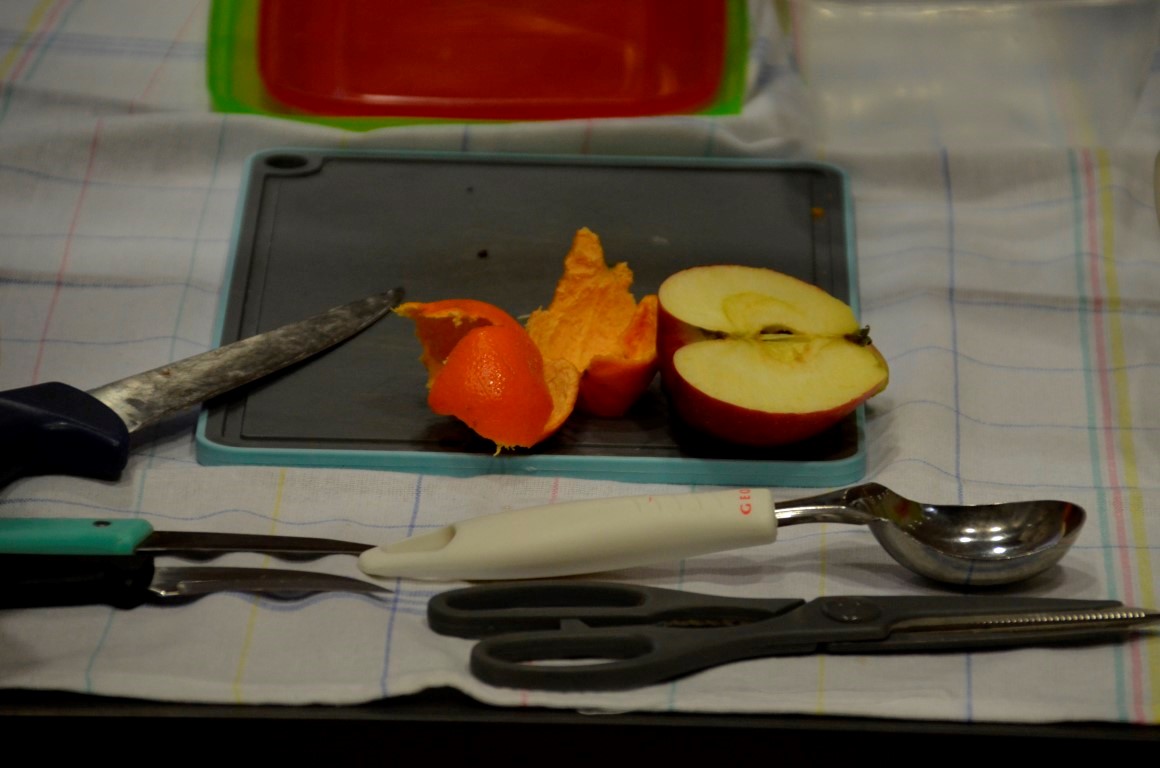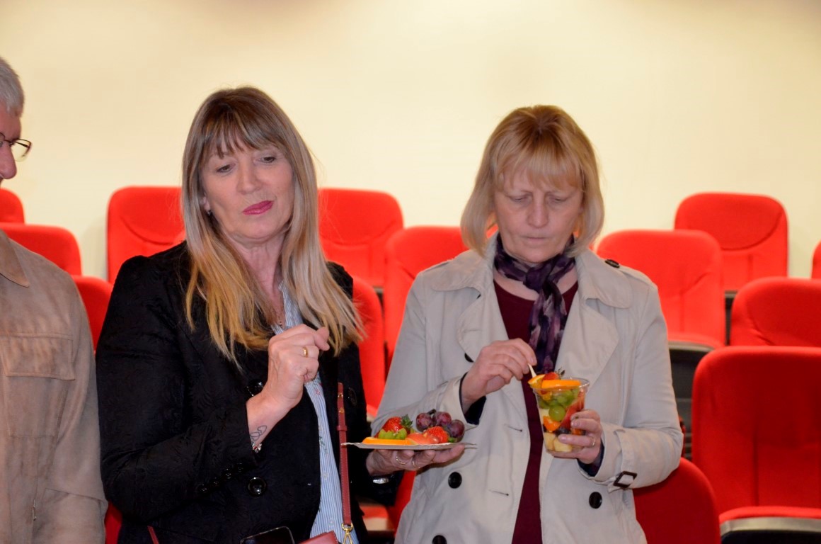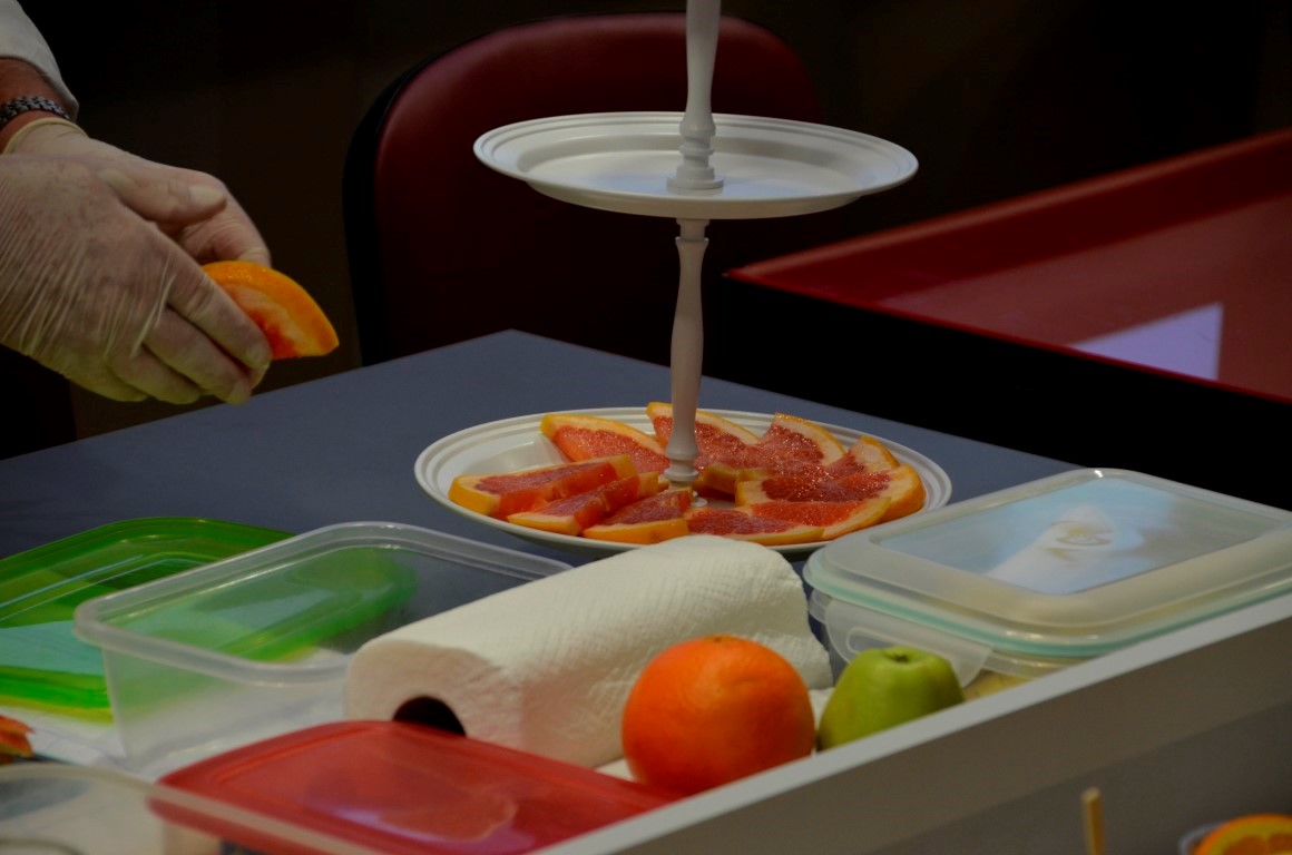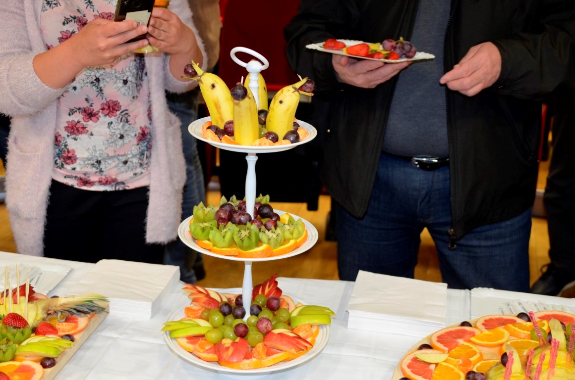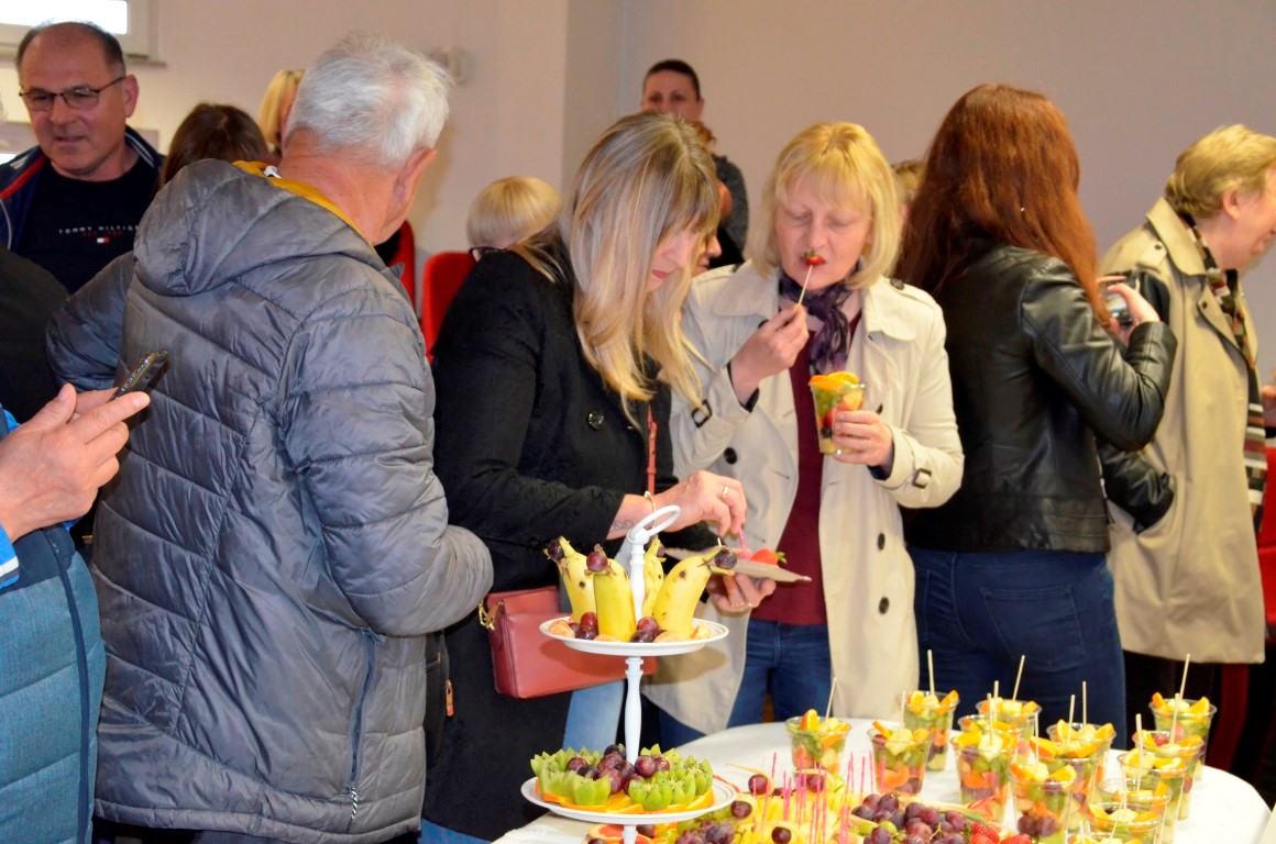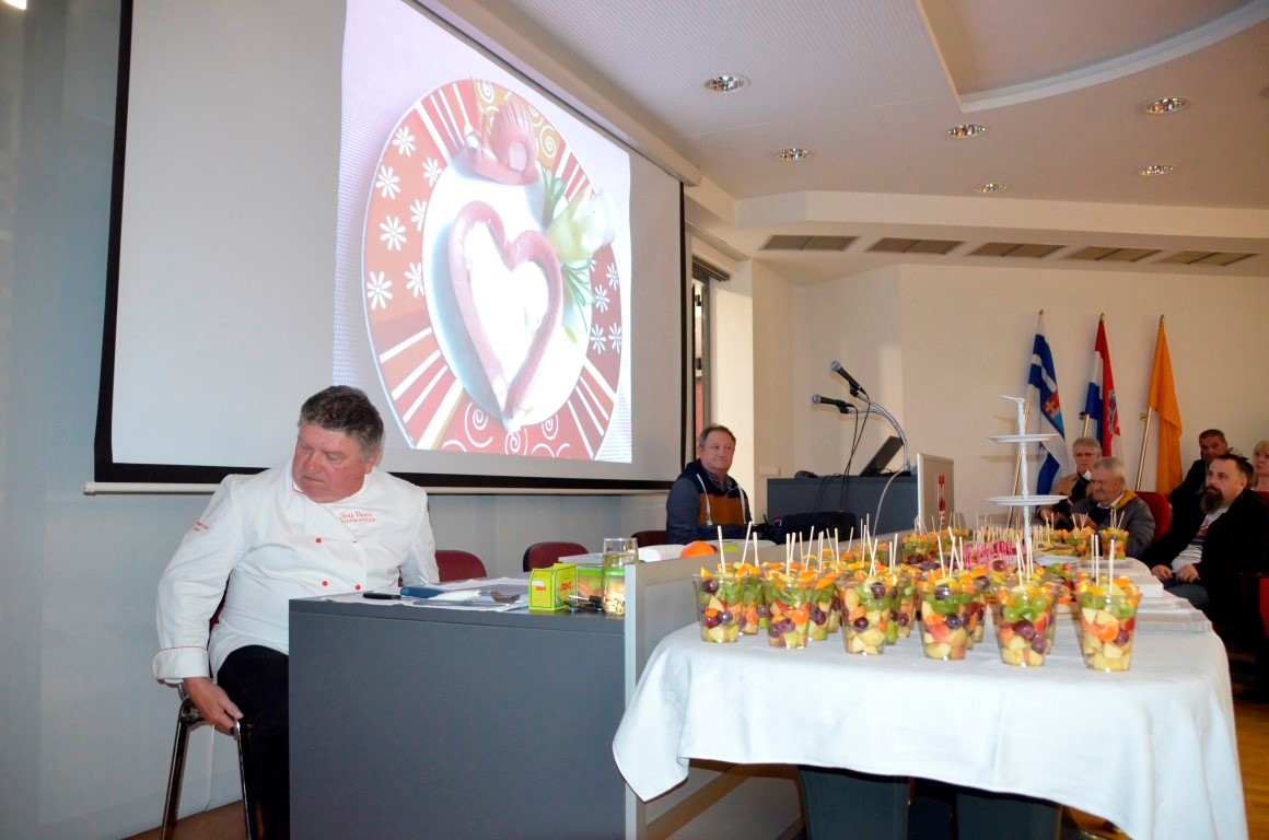 Tijekom jednosatne radionice koju je pratila projekcija već gotovih aranžmana ukrašene hrane, nastala je voćna plata, koja je bila ukusan dar posjetiteljima zajedno s već unaprijed pripremljenom prigodno serviranom voćnom salatom i ukrašenim voćnim delicijama.