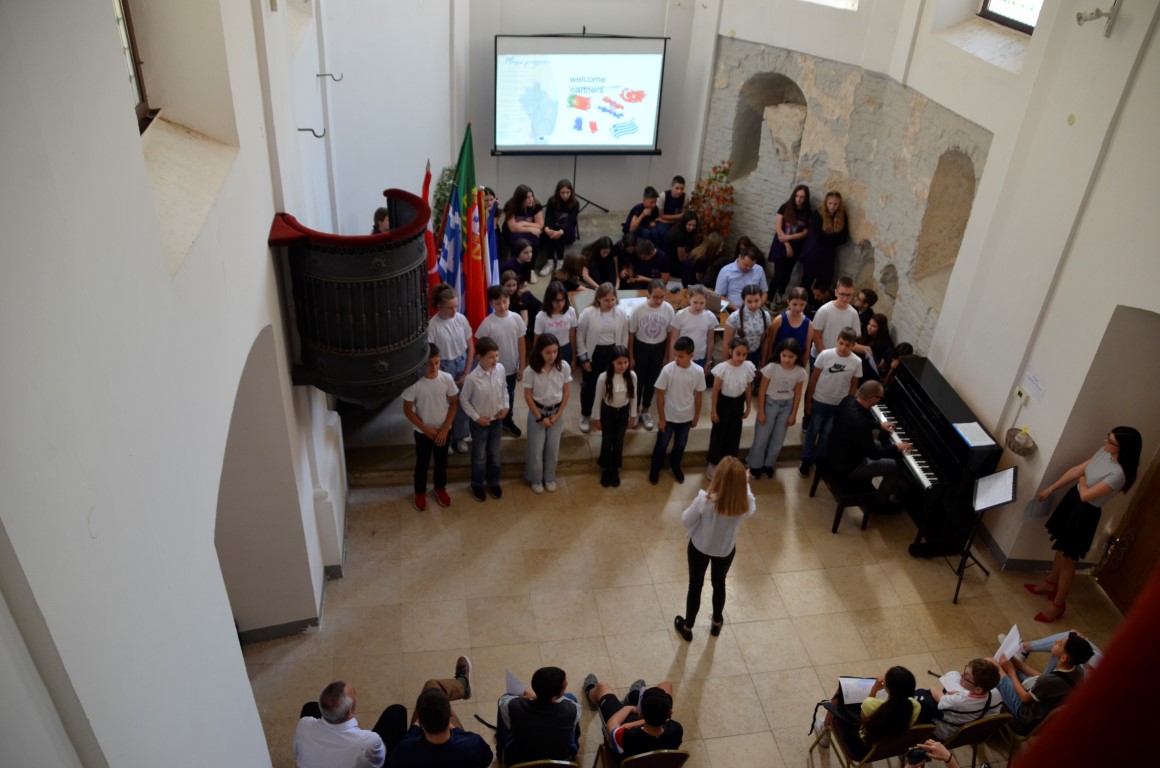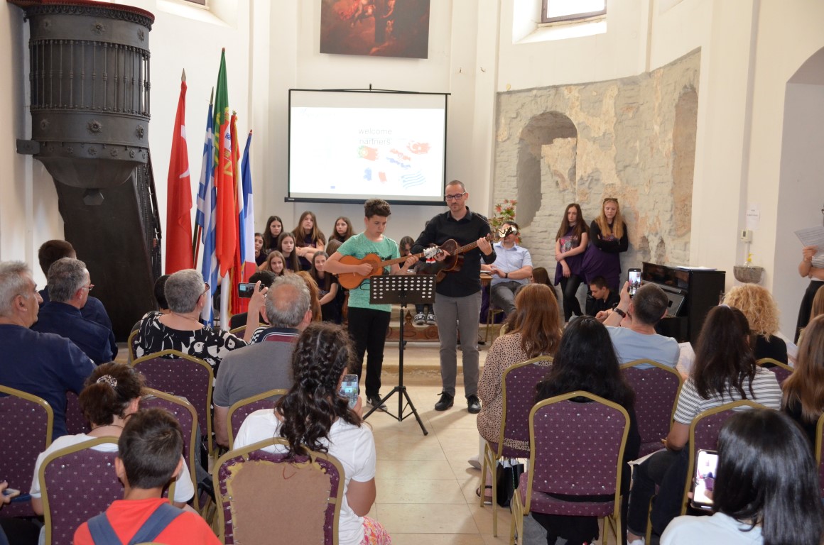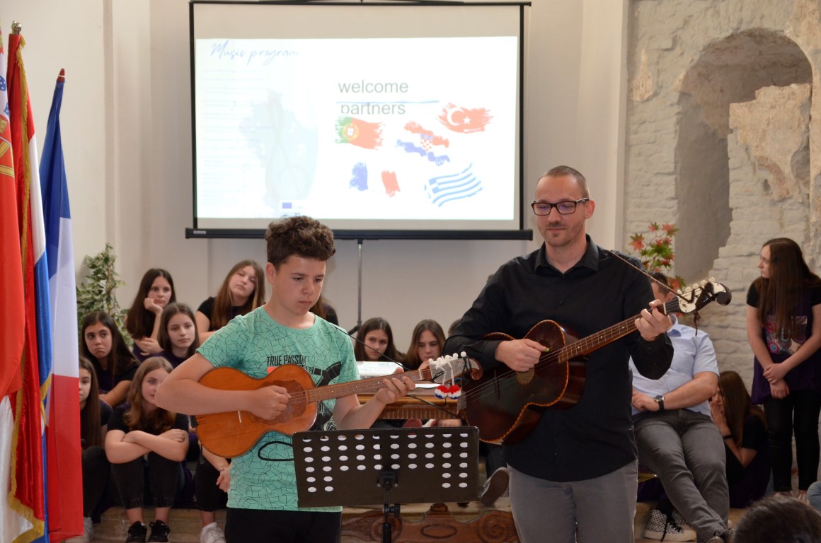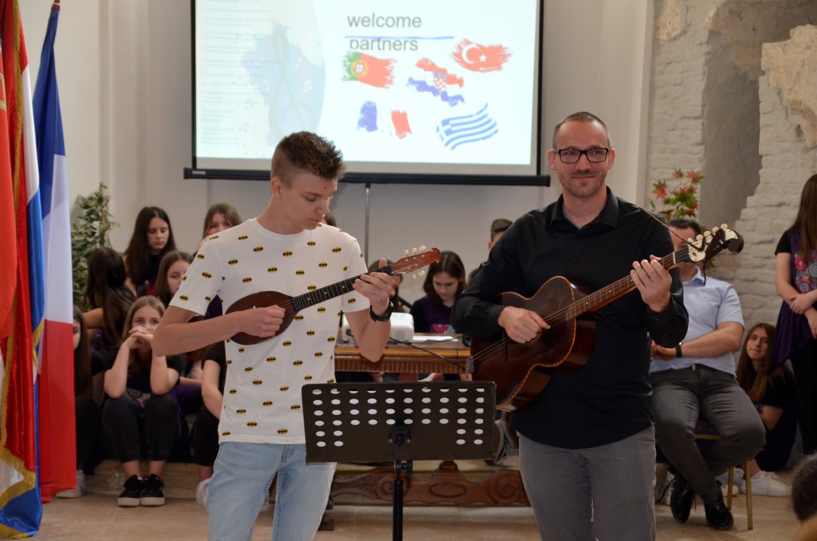 Nakon pozdravnih riječi ravnatelja škole Dalibora Košutića i koordinatora projekta Igora Zdenčanovića, učenici škole domaćina izveli su bogat glazbeni program tijekom kojeg su izveli i po jednu tradicionalnu skladbu svake zemlju sudionice projekta.