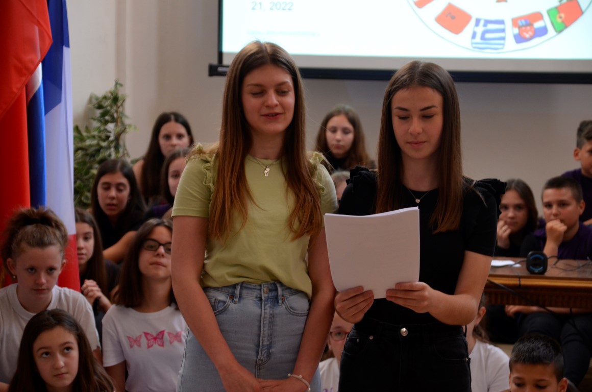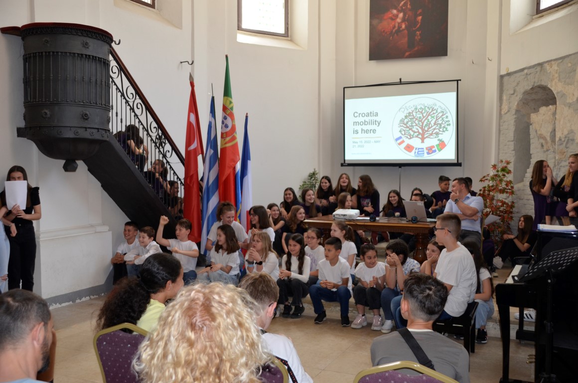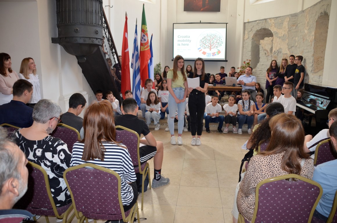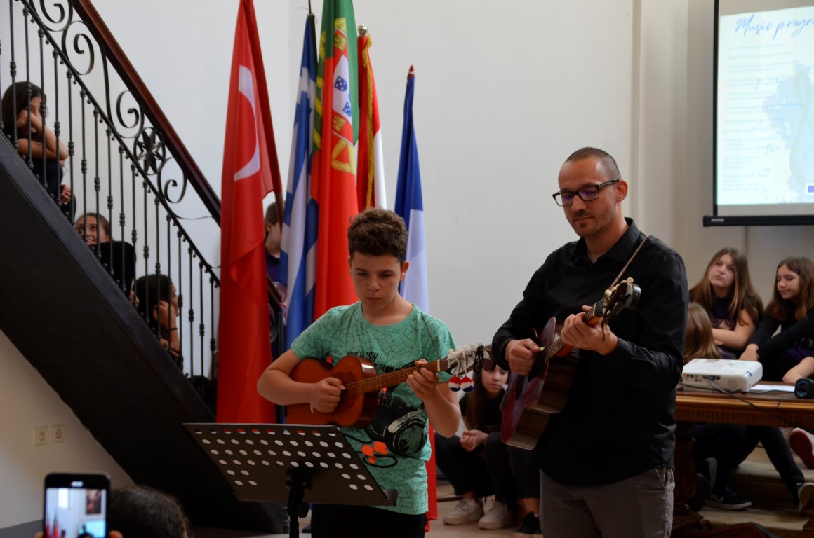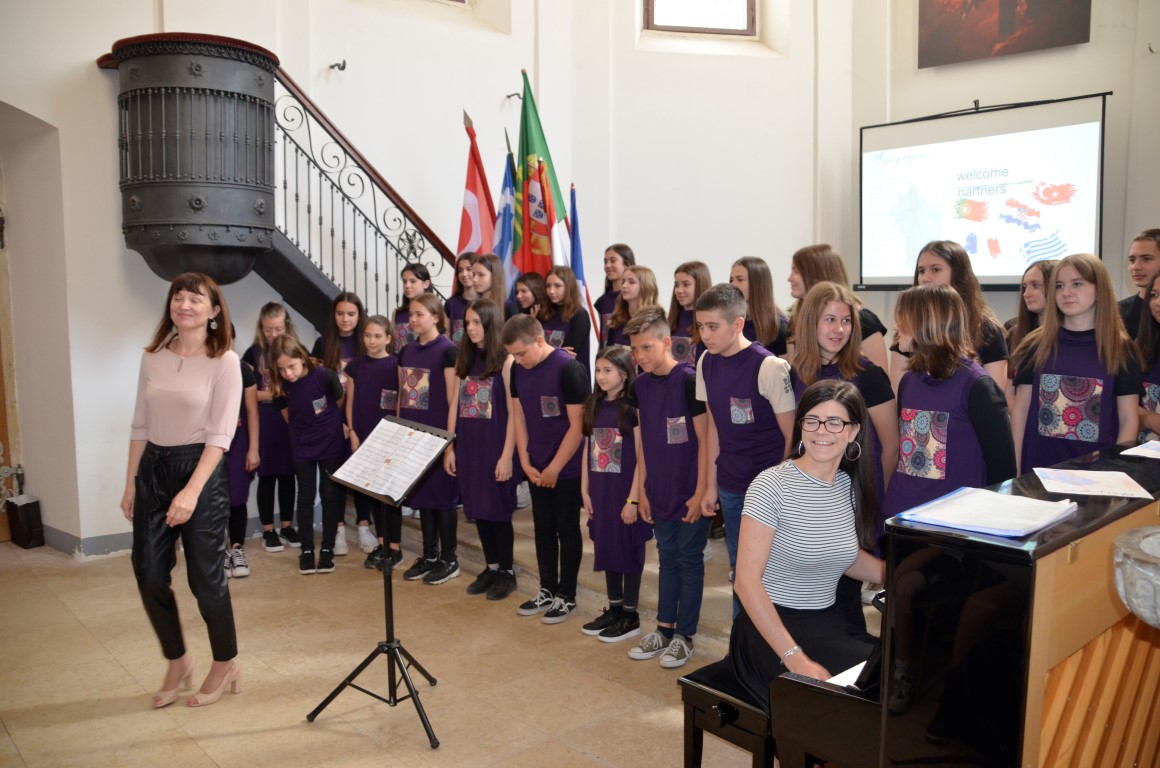 Nakon pozdravnih riječi ravnatelja škole Dalibora Košutića i koordinatora projekta Igora Zdenčanovića, učenici škole domaćina izveli su bogat glazbeni program tijekom kojeg su izveli i po jednu tradicionalnu skladbu svake zemlju sudionice projekta.