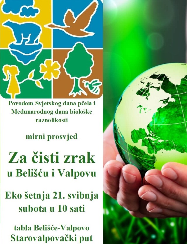 VALPOVO Povodom Svjetskog dana pčela /20. svibnja/ i Međunarodnog dana biološke raznolikosti /22. svibnja/ Ekološka udruga Eko-Karašica u suradnji s udrugama Zvono i Karašicka Republika organizira mirni prosvjed „Za čisti zrak u Belišću i Valpovu“.