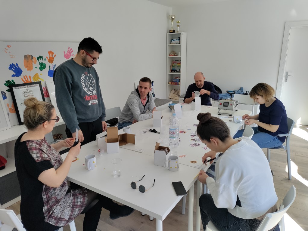 Kroz radionice izrade majica i drugih promidžbenih materijala, sudionici imali priliku naučiti kako nastaje otisak na majici, nešto više o tehnici sitotiska te su sami otisnuli svoju majicu. Također su se upoznali s procesom nastajanja naljepnica za tiskanje na šalice te su sami dizajnirali šalice i odradili proces tiskanja.