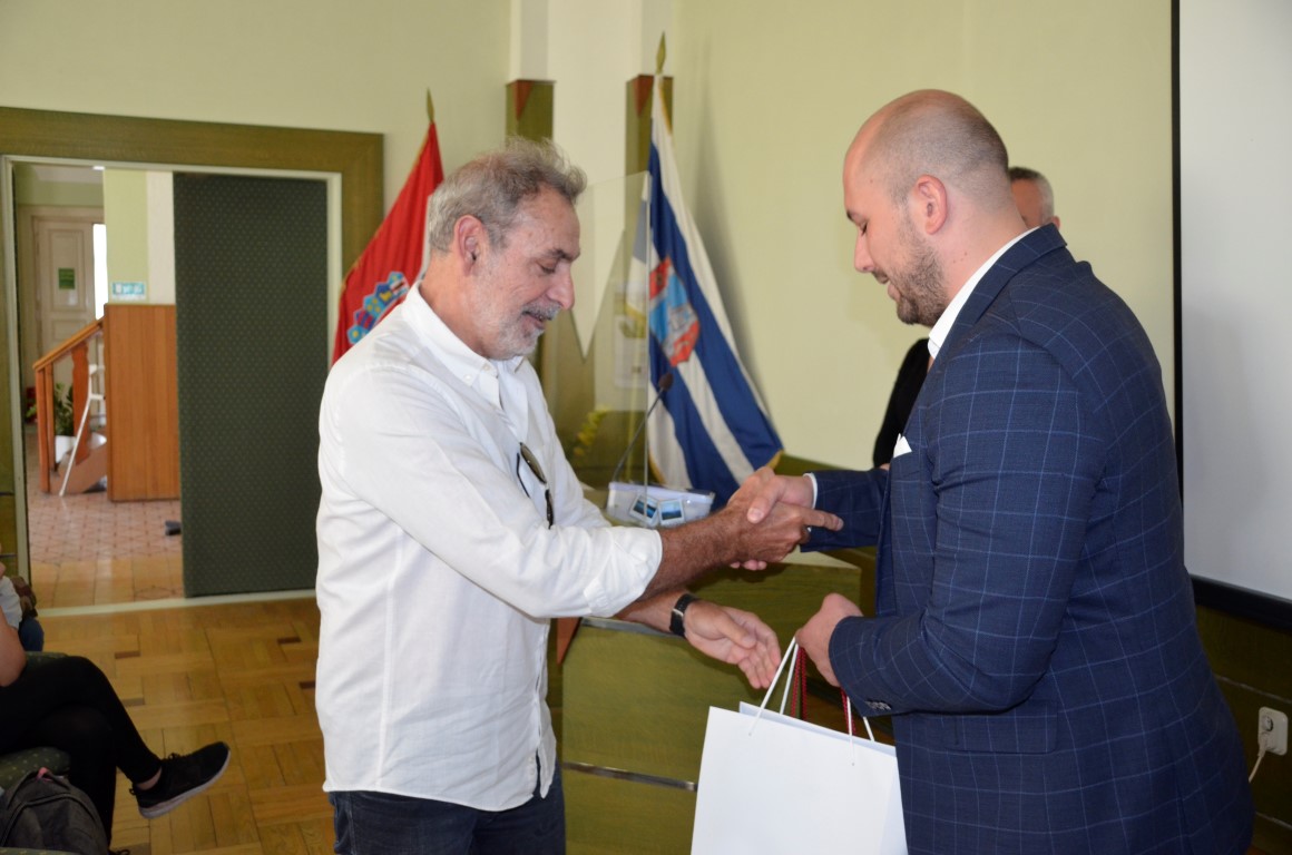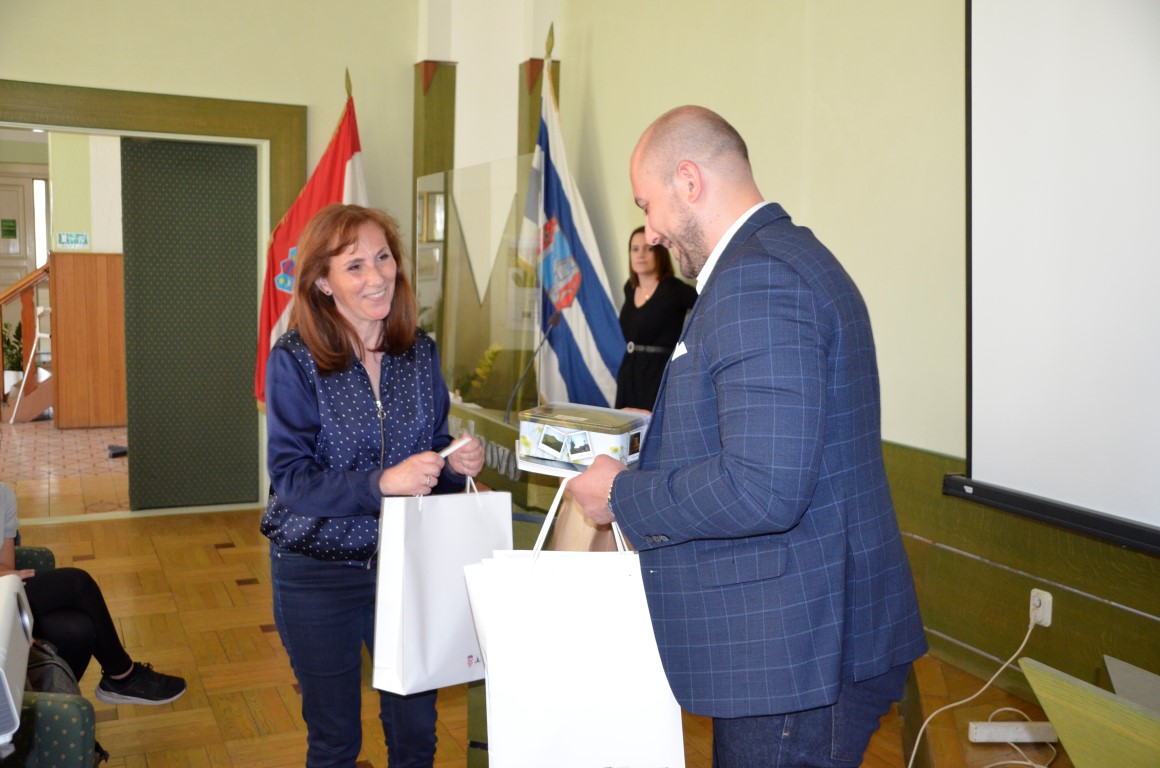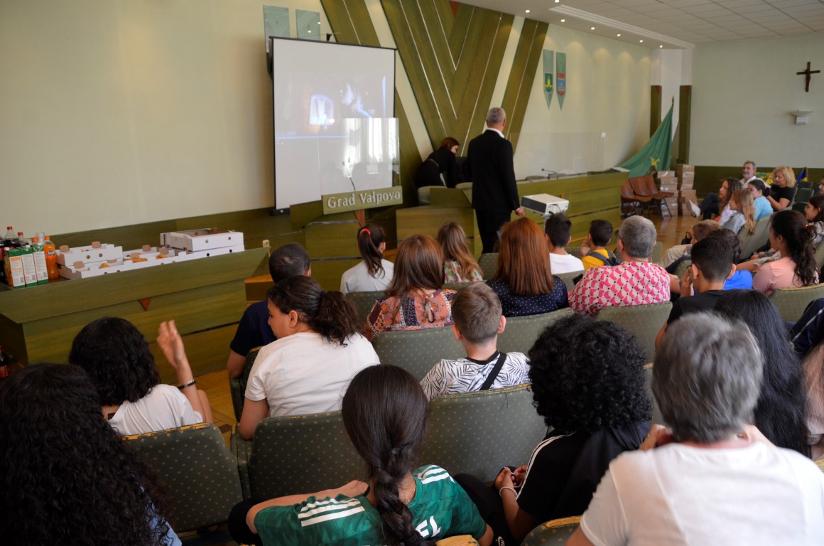 U velikoj gradskoj vijećnici, nakon pozdravnih riječi Marka Barišića, projekcijom filma o Valpovu i njegovim znamenitostima sudionici ovog međunarodnog projekta upoznati su gradom domaćinom, a potom su razmijenili poklone.