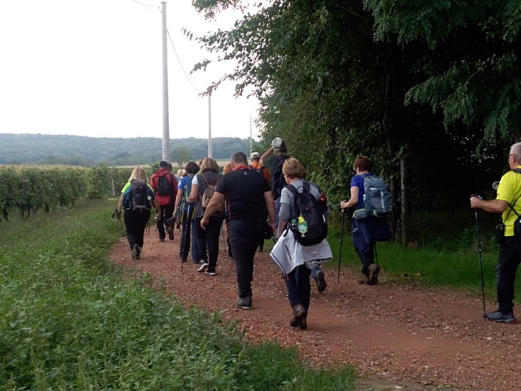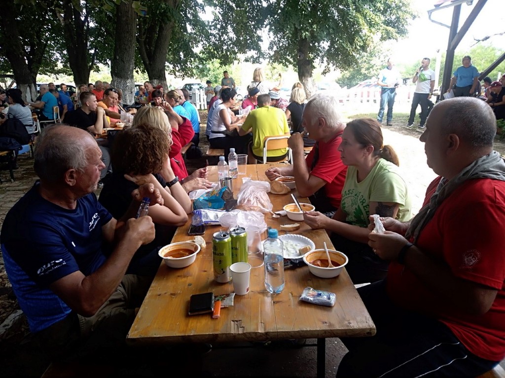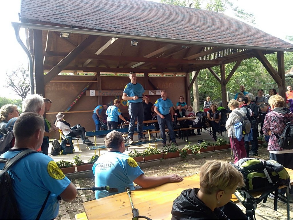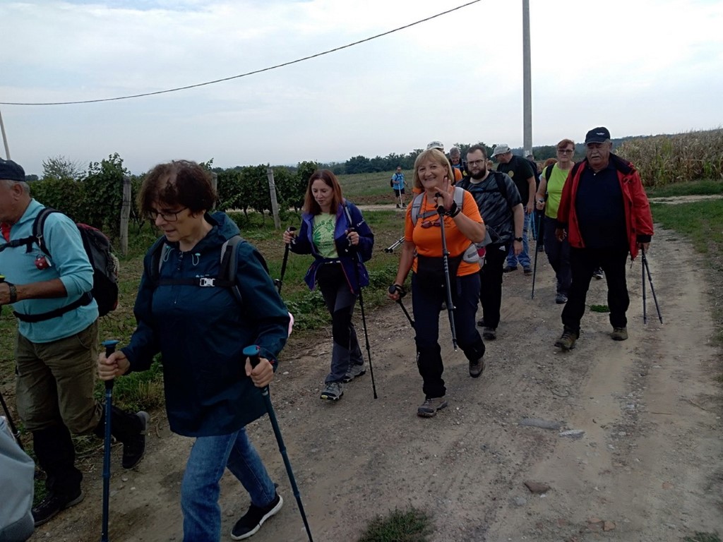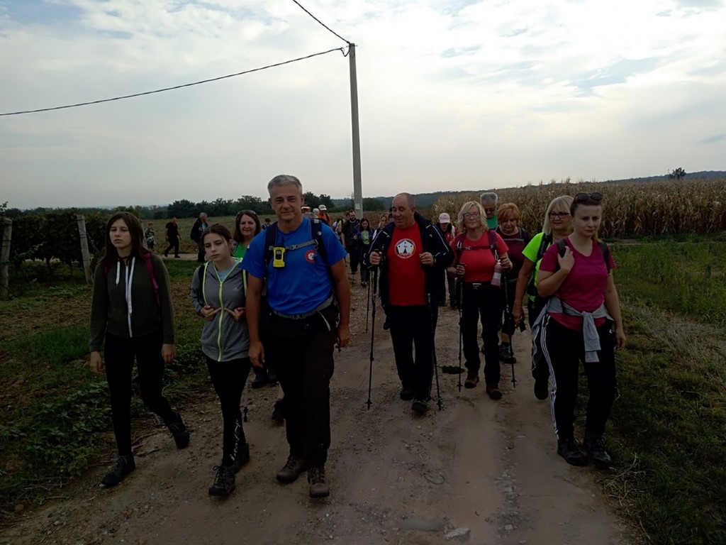 Riječi dobrodošlice upućuje nam domaćin, Igor Nađ i predstavlja nam vodiče na predviđenim stazama. Prva grupa ide na dužu stazu od 16 km, a druga kreće desetak minuta kasnije na stazu dužine 8 km. Mi smo svi išli na kraću stazu. Vrijeme je ugodno za hodanje kroz šume u kojima smo našli gljiva, vrganja i puhara. Osobno nisam vidjela ovoliko puhara u šumi i svi smo bili zadovoljni nađenim šumskim mesom. Kroz vinograde smo se sladili slatkim grožđem. Grupa sa kraće staze se vratila u Radoš na ručak, a domaćin je za sve sudionike pohoda skuhao i počastio nas planinarskim grahom. Tu smo se družili uz priču i pjesmu i čekali grupu sa duže staze. Nakon sat i pol pristižu planinari s duže staze i domaćin je s njima. Slijedi podjela zahvalnica za sudjelovanje na 8. pohodu Fruškogorskim obroncima. Druženje se nastavlja uz pjesmu i ples.