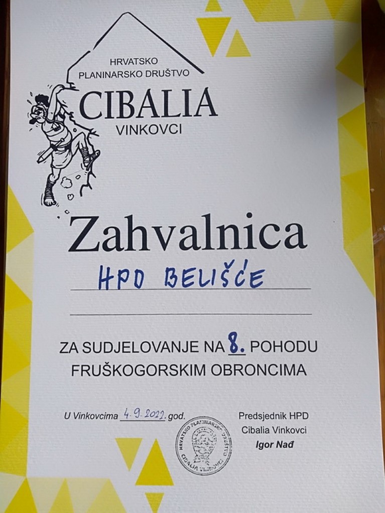BELIŠĆE U nedjelju ujutro odlazimo na osmi pohod po Fruškoj Gori u organizaciji domaćina HPD „Cibalija“ Vinkovci.
