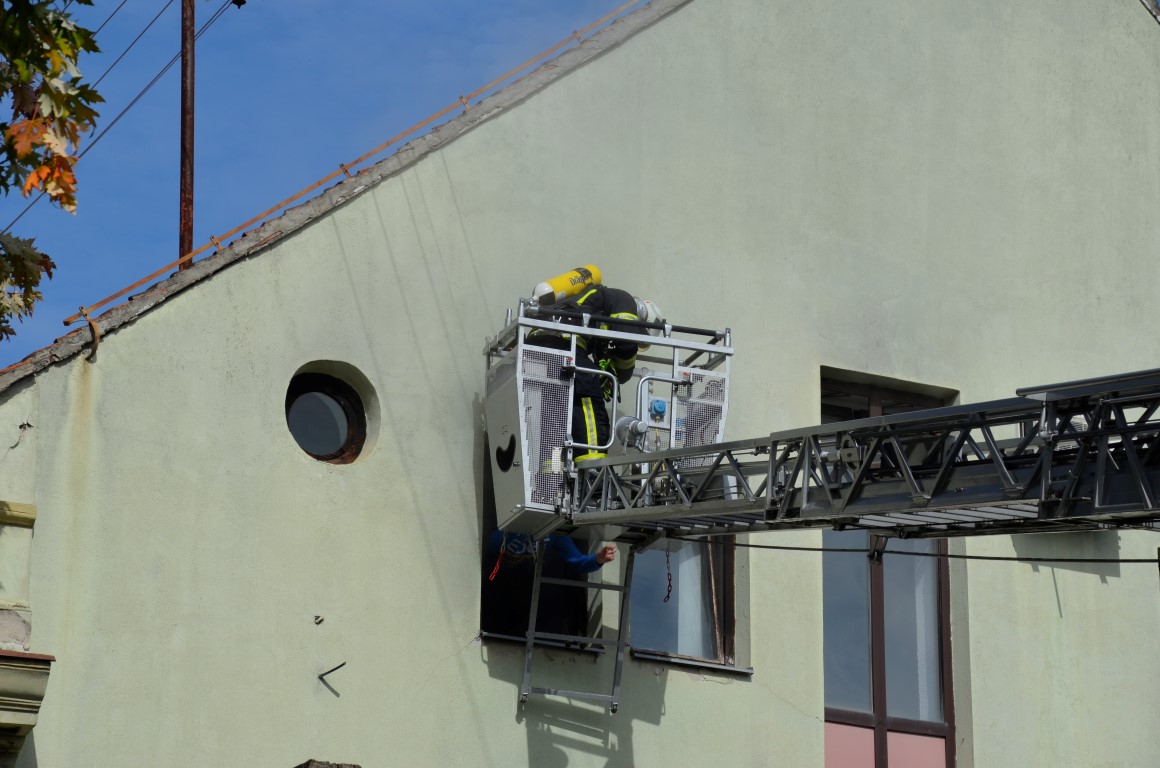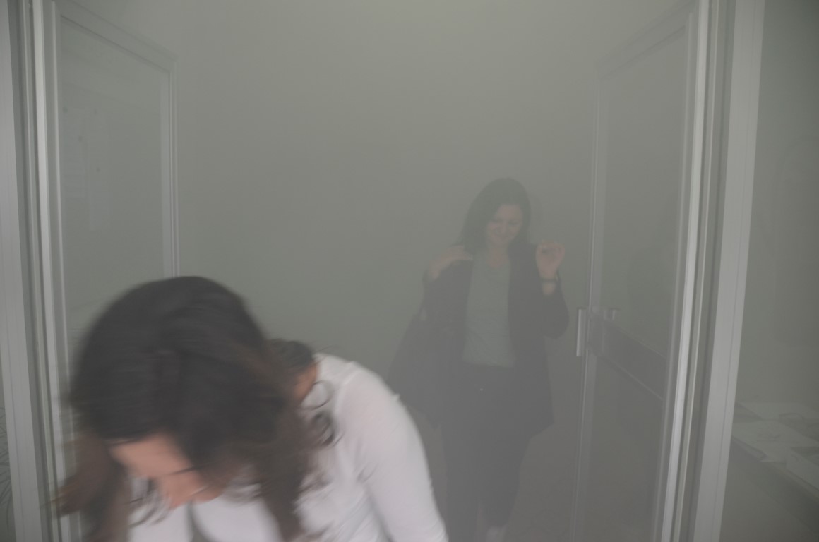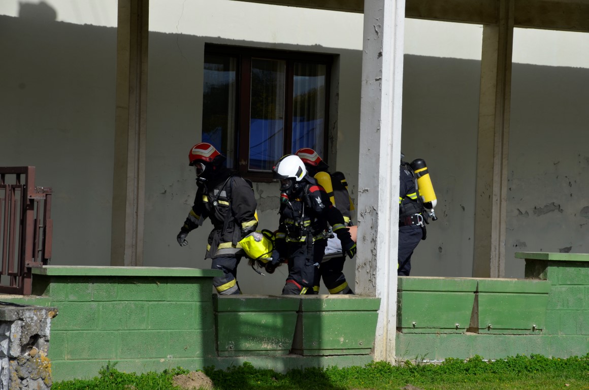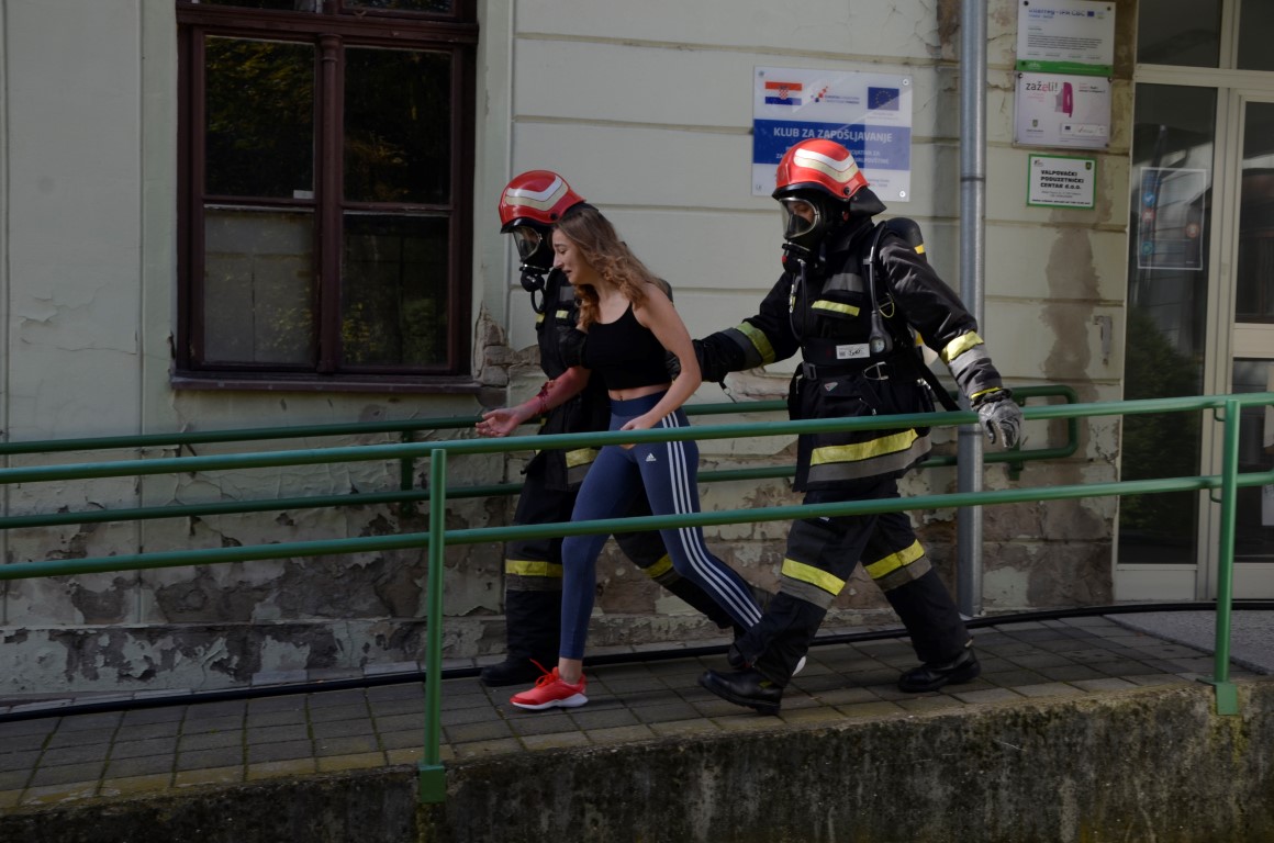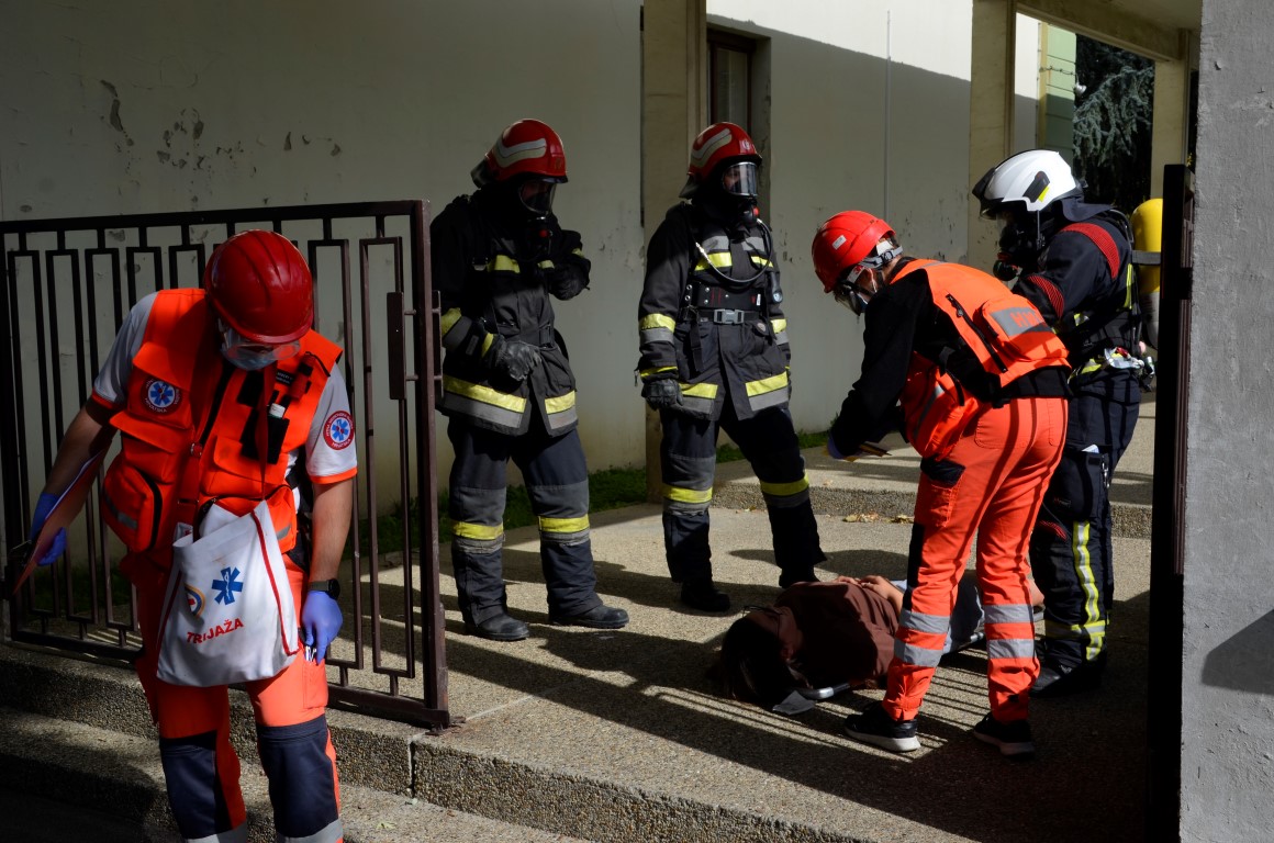 Istodobno pristiže vatrogasna postrojba na intervenciju. Potrebno je pristupiti spašavanju osoba iz zgrade i gašenju požara. Voditeljica evakuacije izvješćuje zapovjednika intervencije o broju evakuiranih osoba te da je nekoliko osoba ostalo u zgradi.