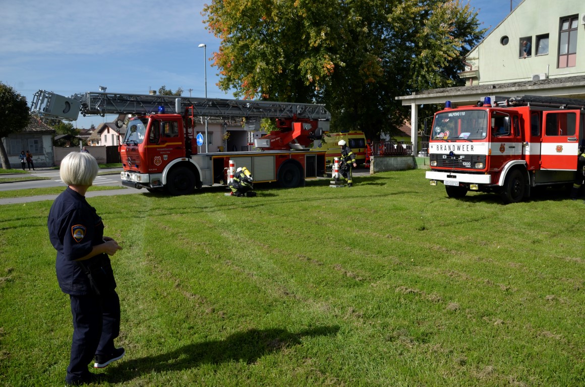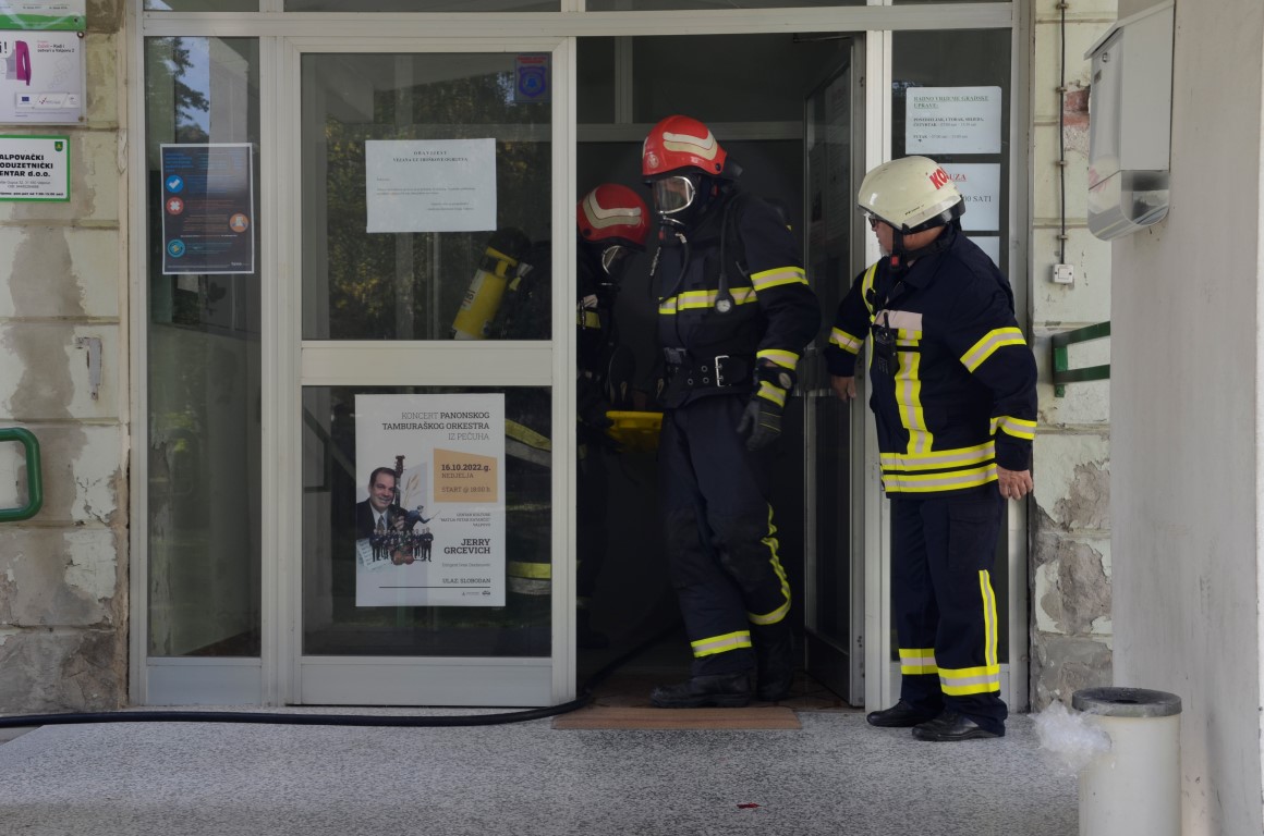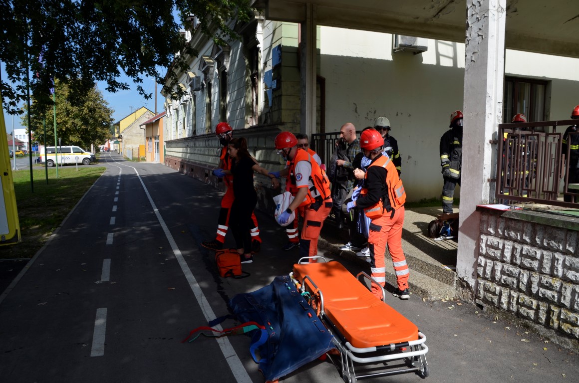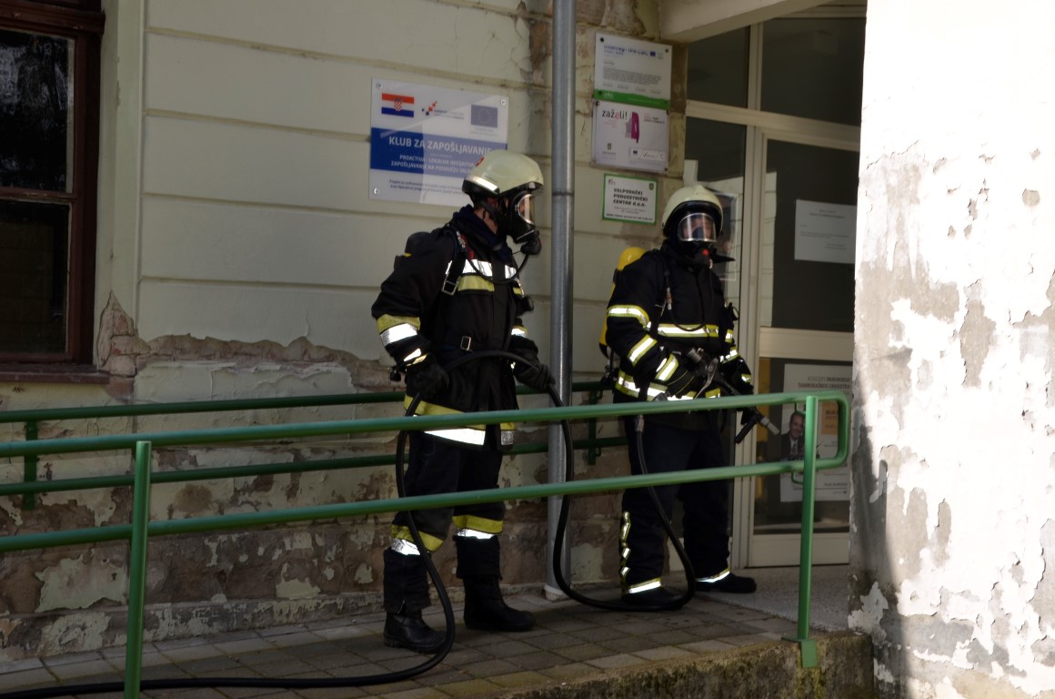 VALPOVO Danas je održana taktičko-pokazna vježba „Eksplozija, požar i evakuacija zgrade gradske uprave Grada Valpova 2022.“