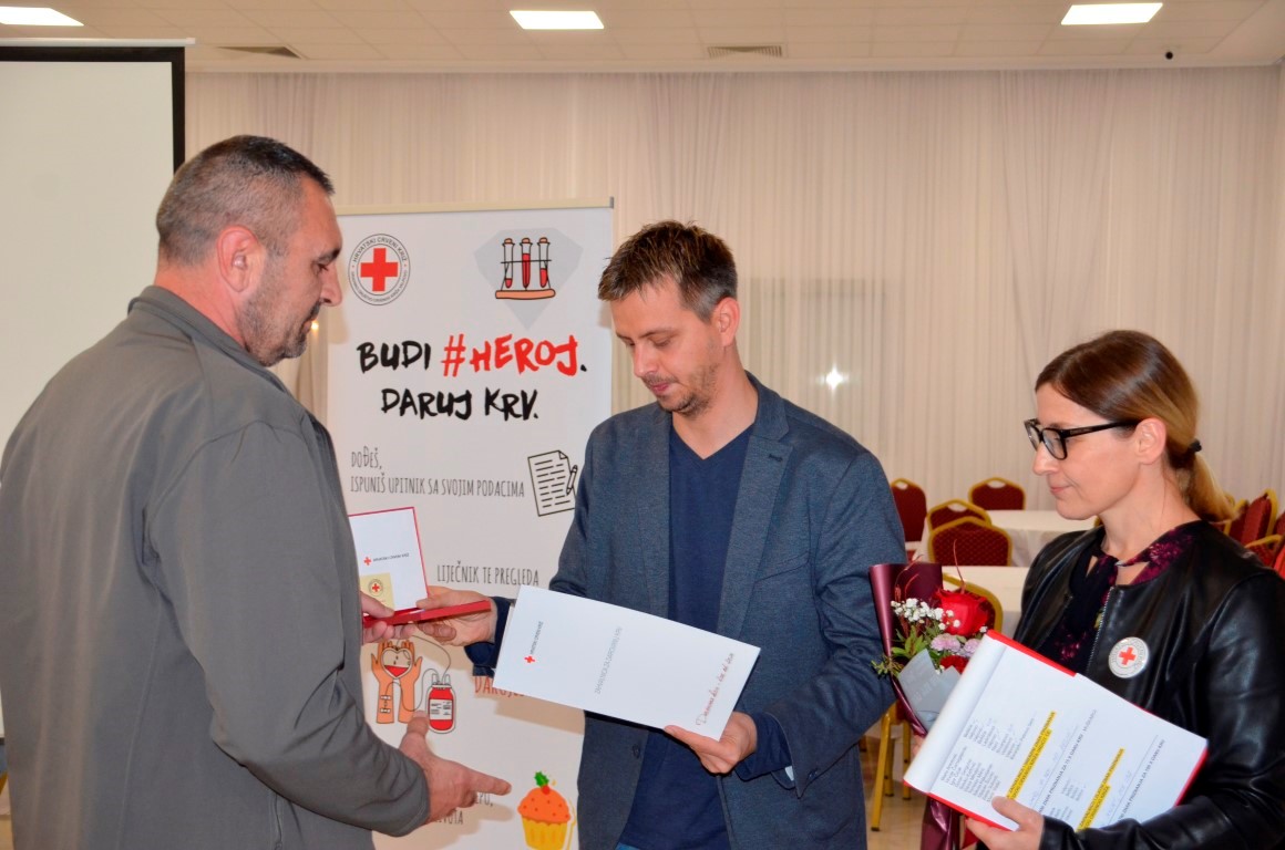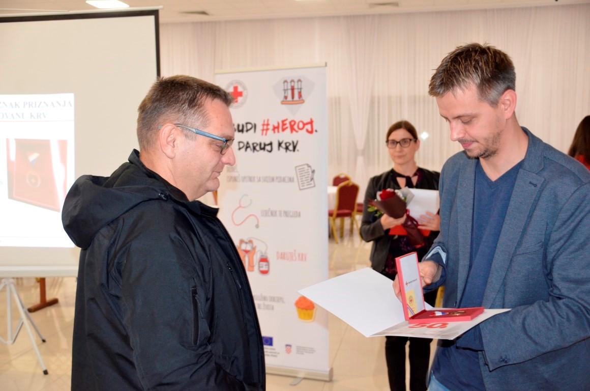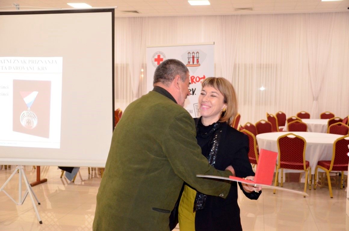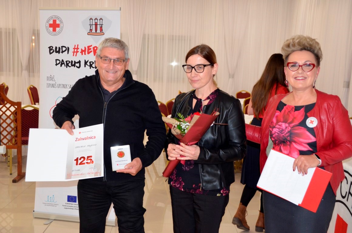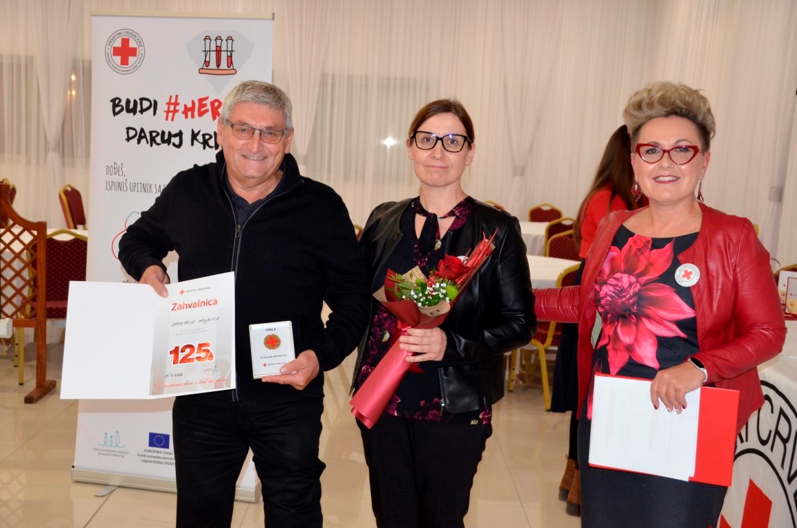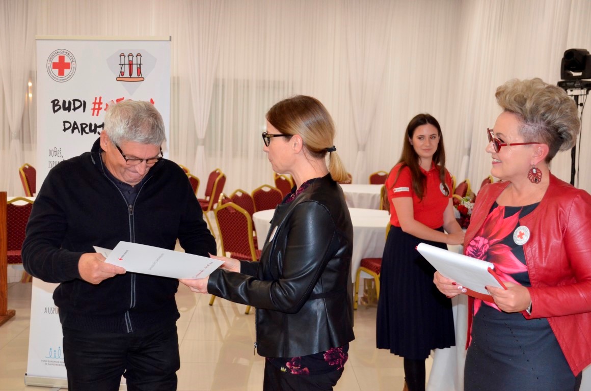 Zahvale i čestitke dobrovoljnim darivateljima krvi iskazali su i gosti, a potom im uručili zahvalnice za višestruko darivanje krvi.