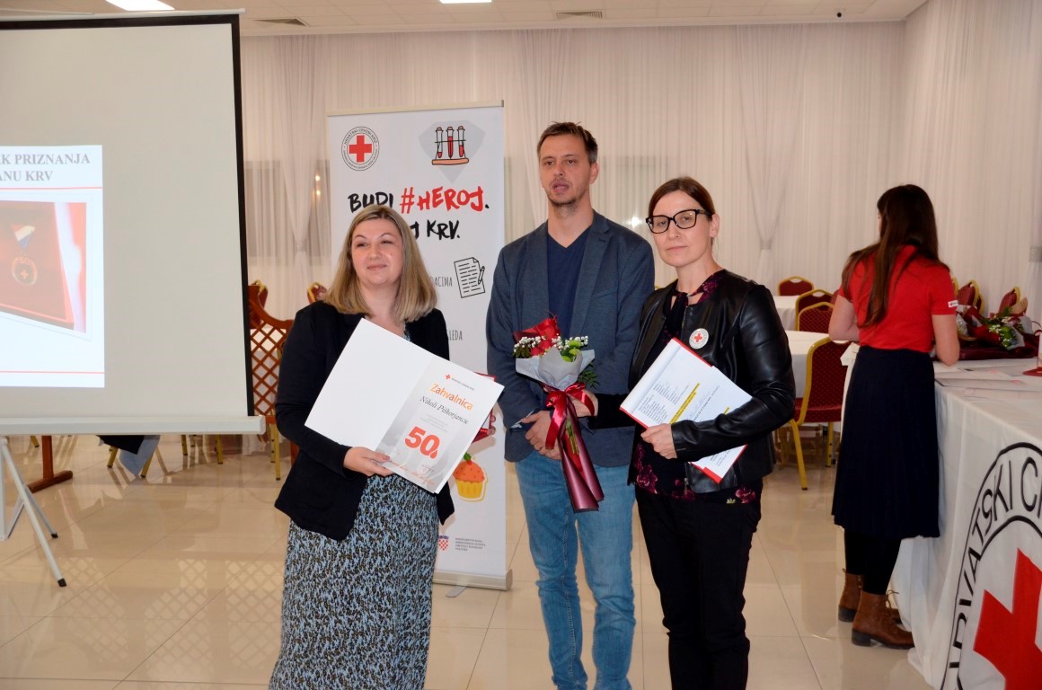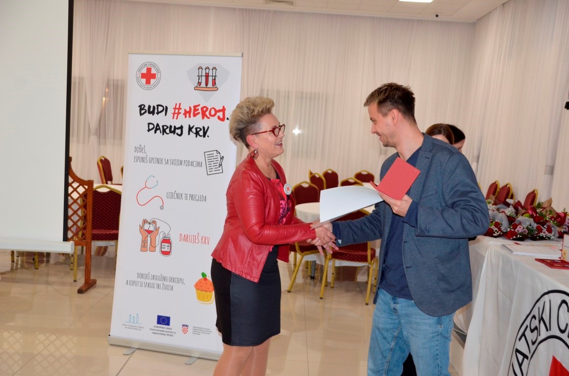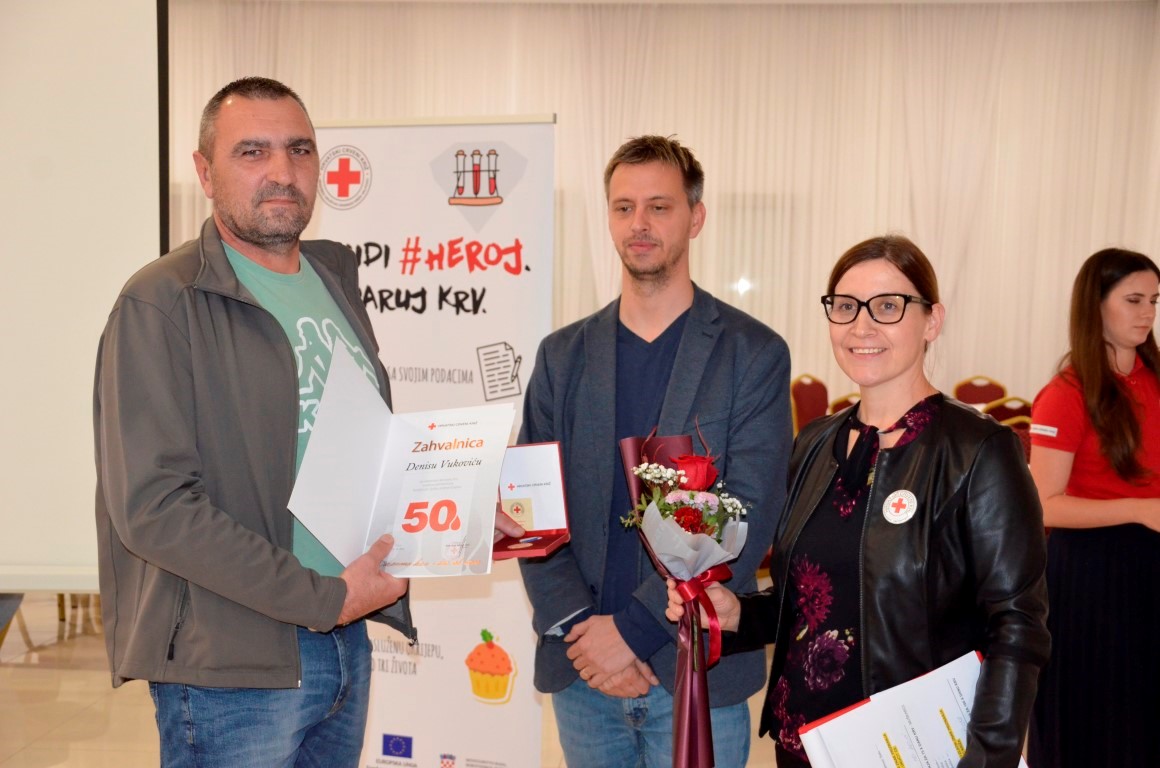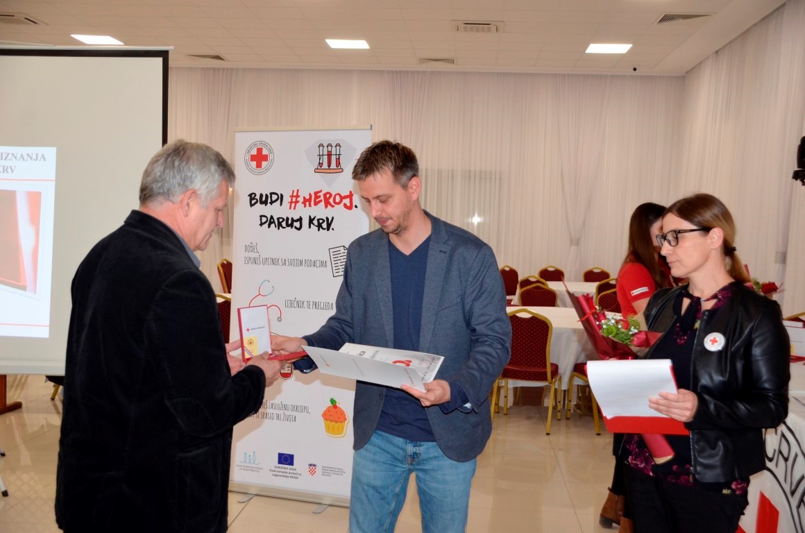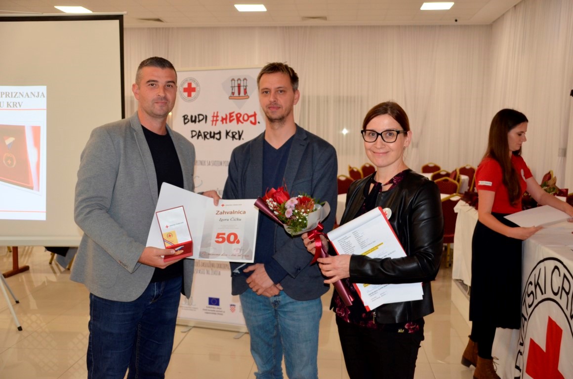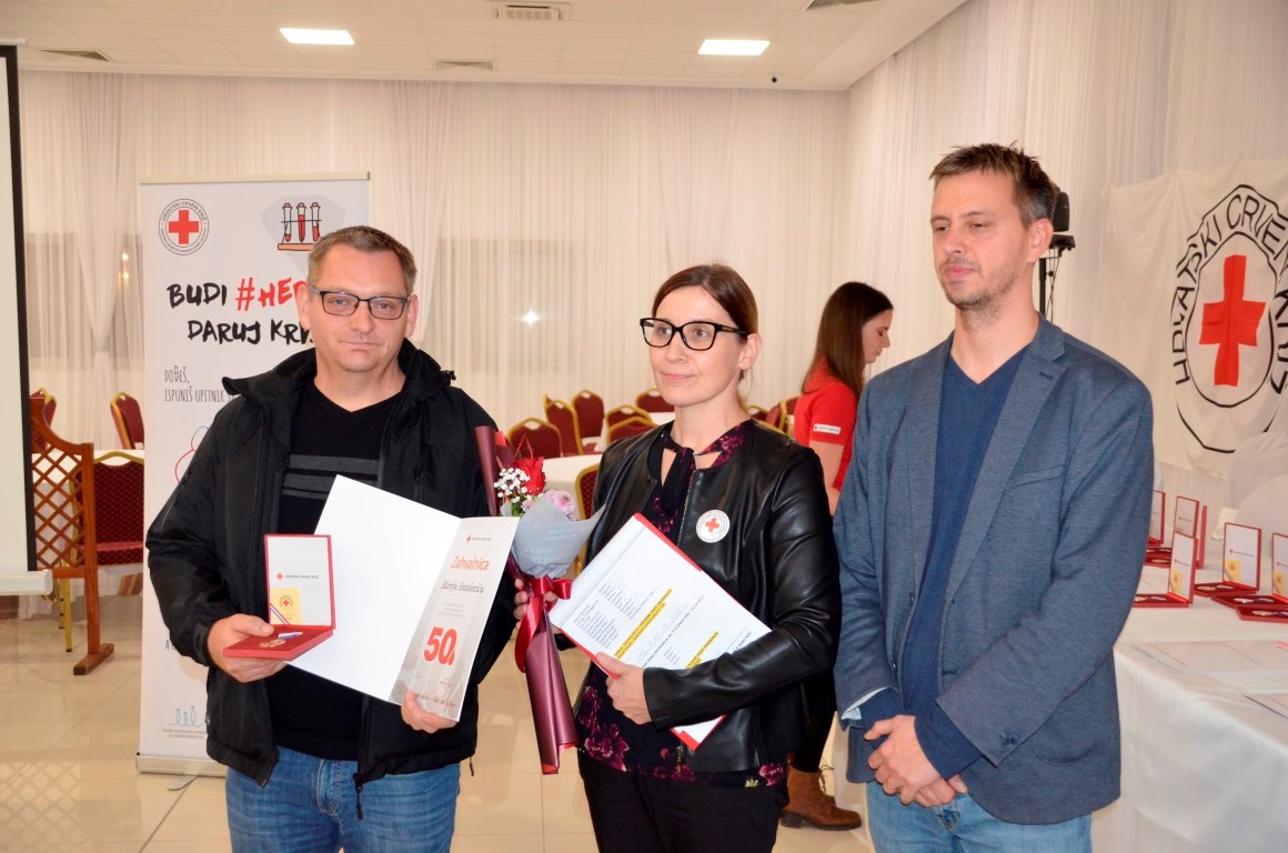 Zahvale i čestitke dobrovoljnim darivateljima krvi iskazali su i gosti, a potom im uručili zahvalnice za višestruko darivanje krvi.