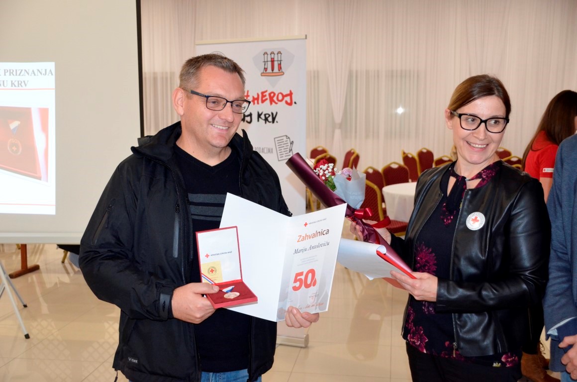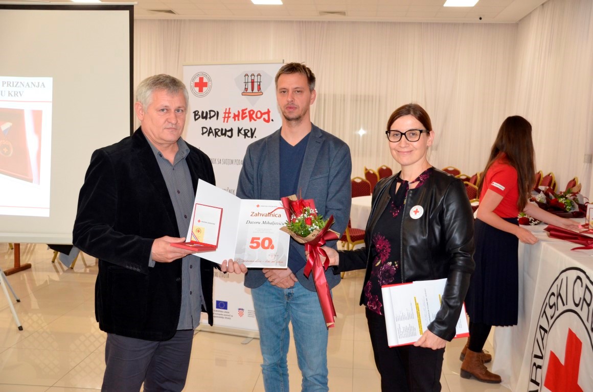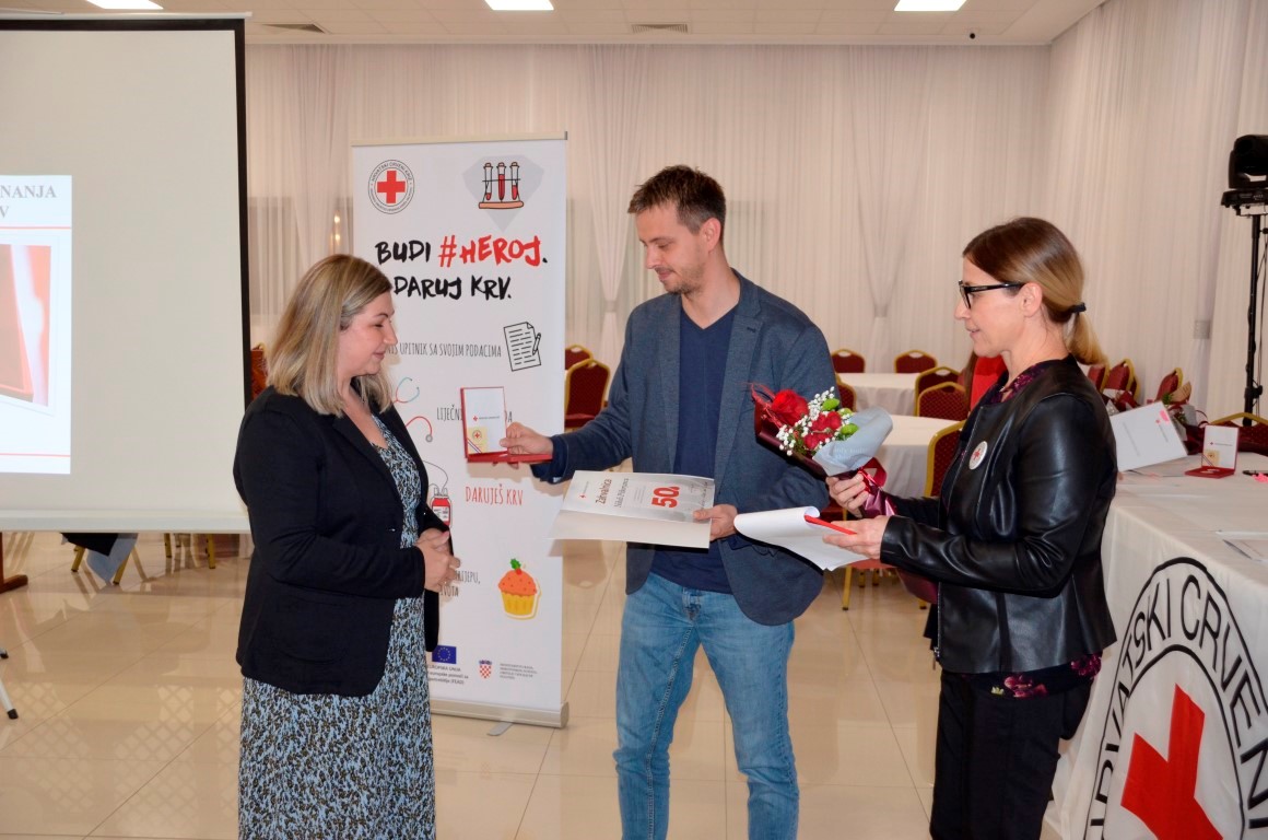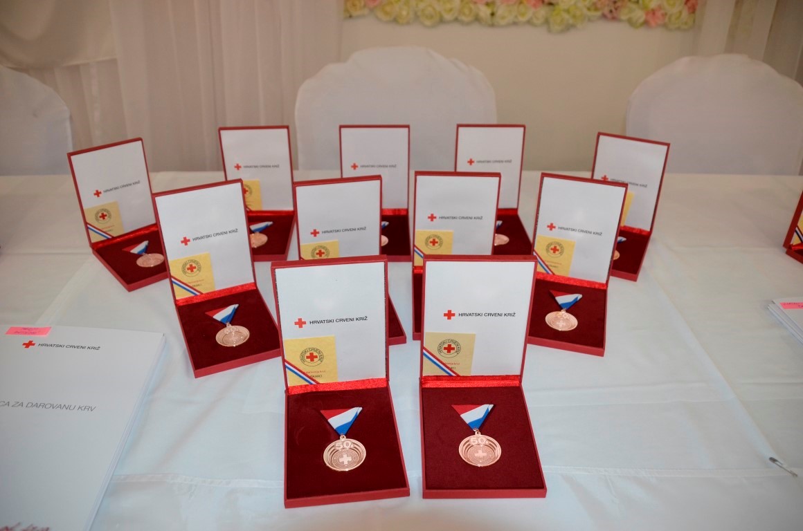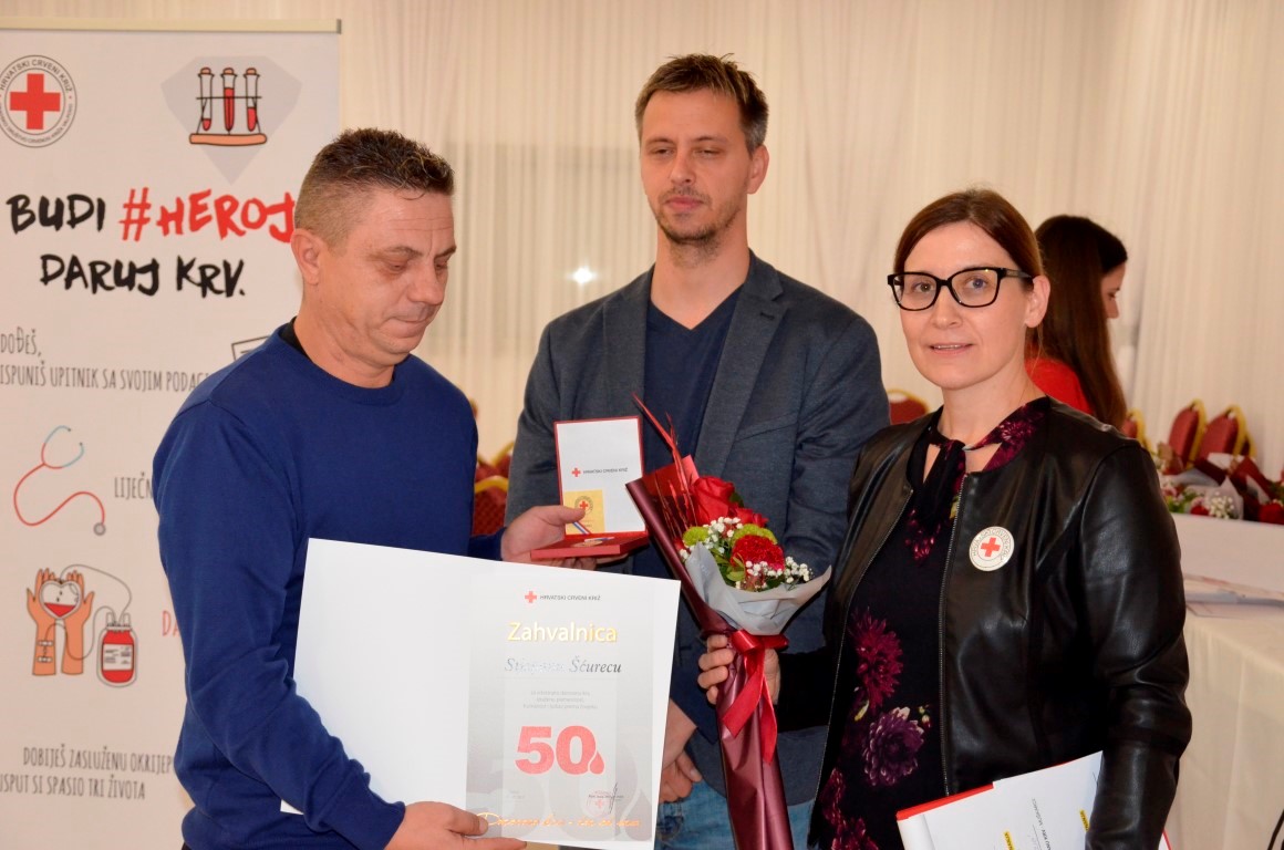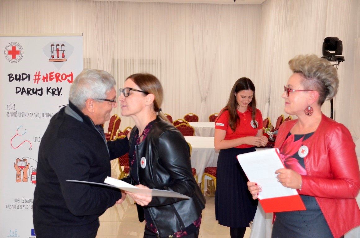 Zahvale i čestitke dobrovoljnim darivateljima krvi iskazali su i gosti, a potom im uručili zahvalnice za višestruko darivanje krvi.