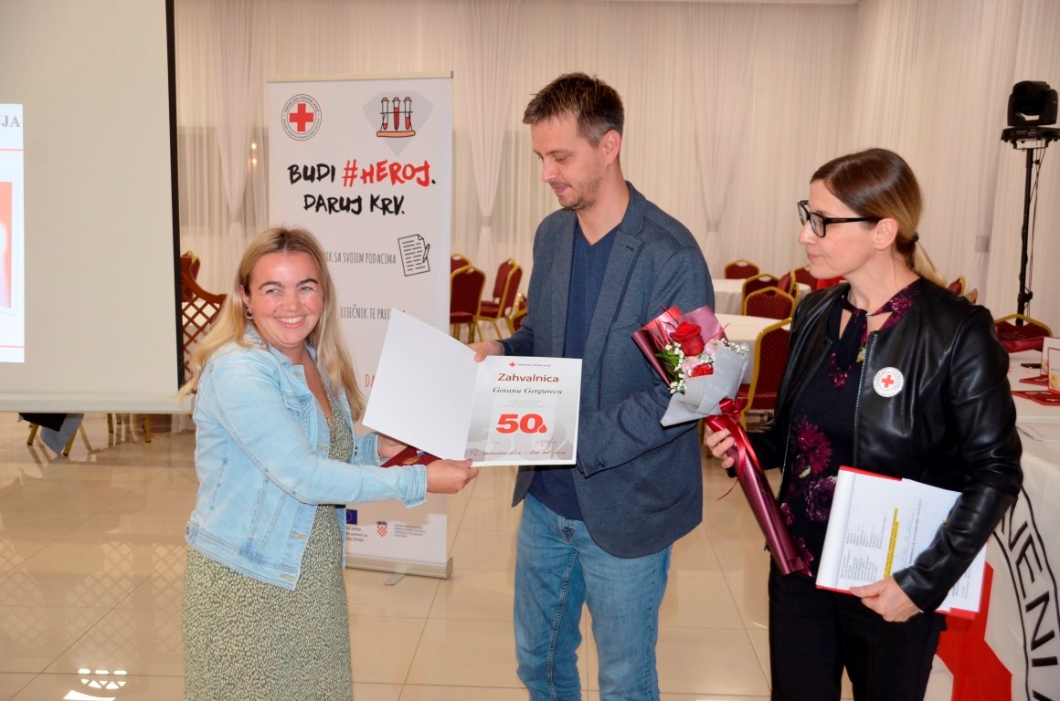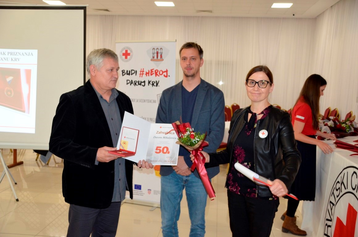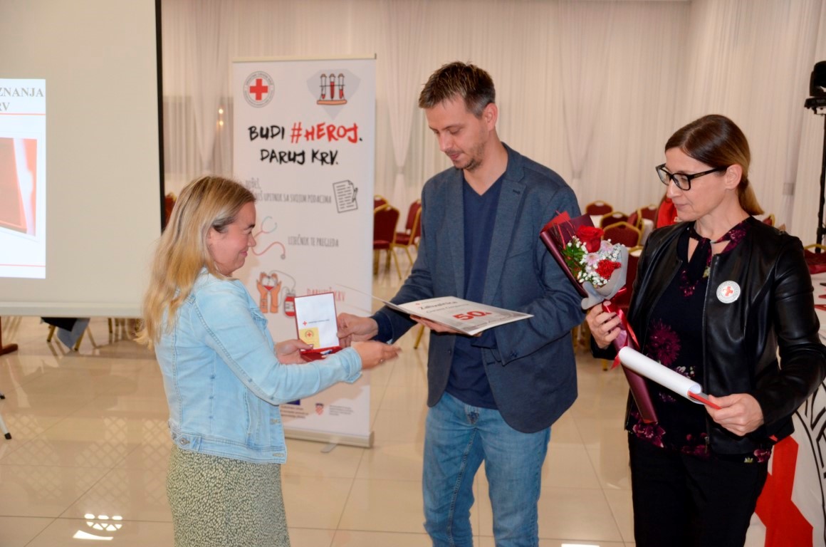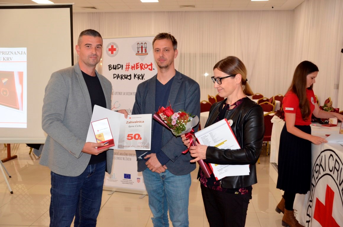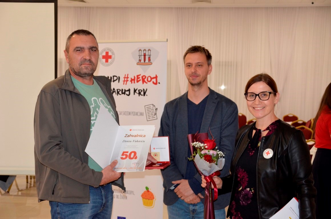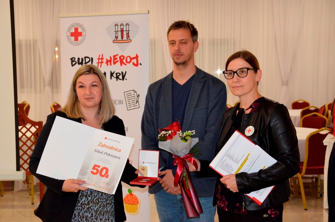 Zahvale i čestitke dobrovoljnim darivateljima krvi iskazali su i gosti, a potom im uručili zahvalnice za višestruko darivanje krvi.