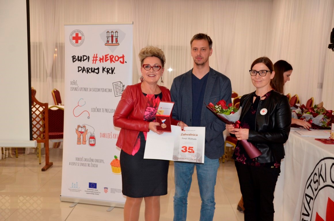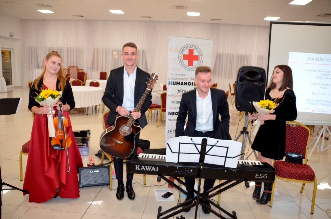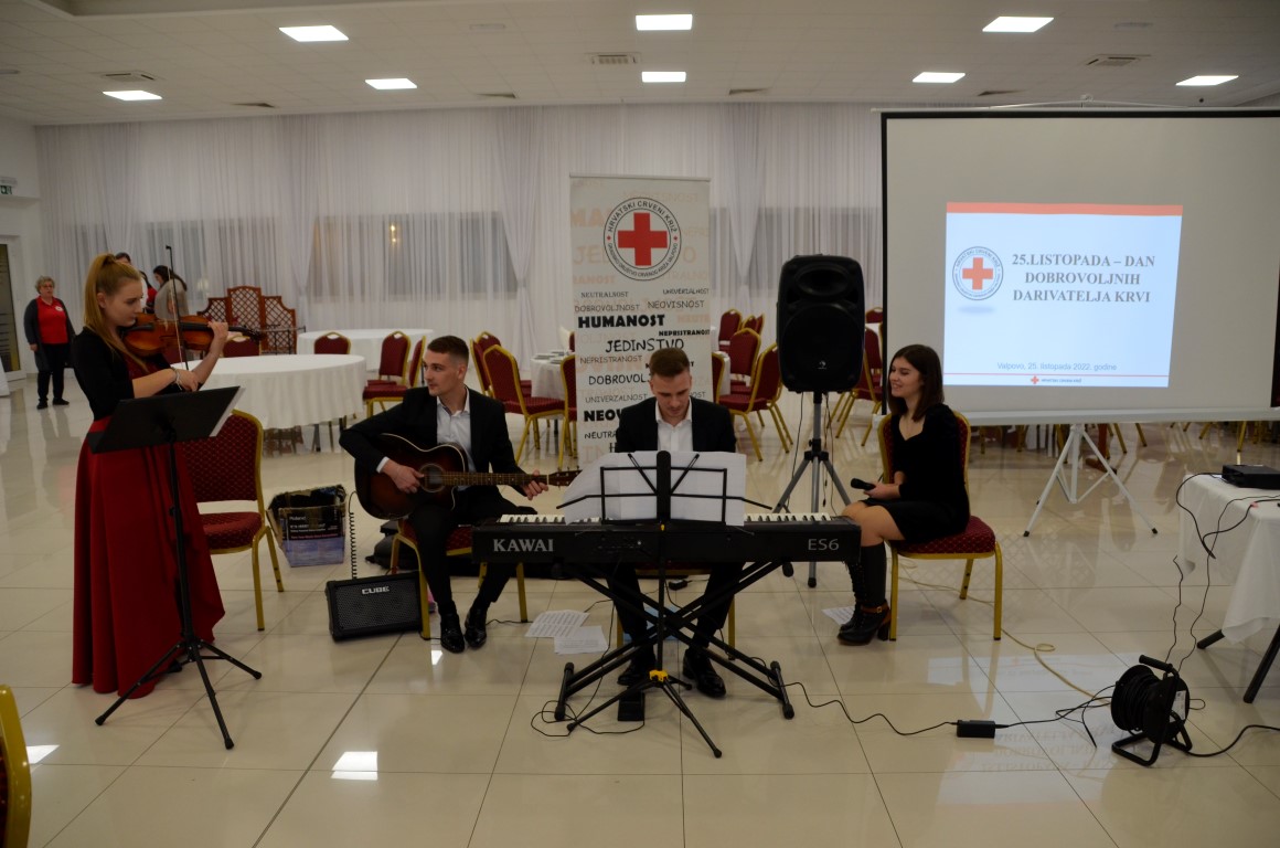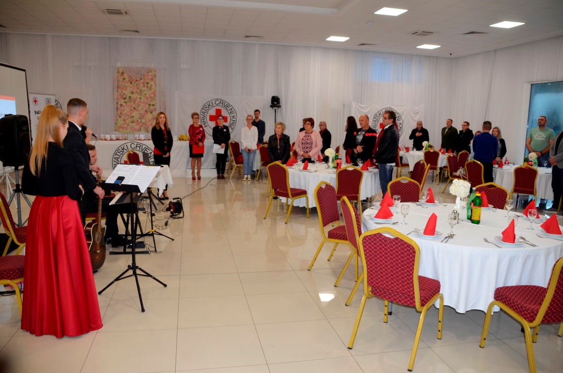 Svečanost je započela izvedbom himne, a potom je sudionike svečanosti pozdravila ravnateljica Gradskog društva Crrvenog križa Valpovo Sanja Habuda i pri tom naglasila značaj dobrovoljnog darivanja krvi u našoj društvenoj zajednici i dobrotu koju u sebi nose dobrovoljni darivatelji koji nesebično tu dobrotu šire spašavajući živote neznanim bolesnicima.