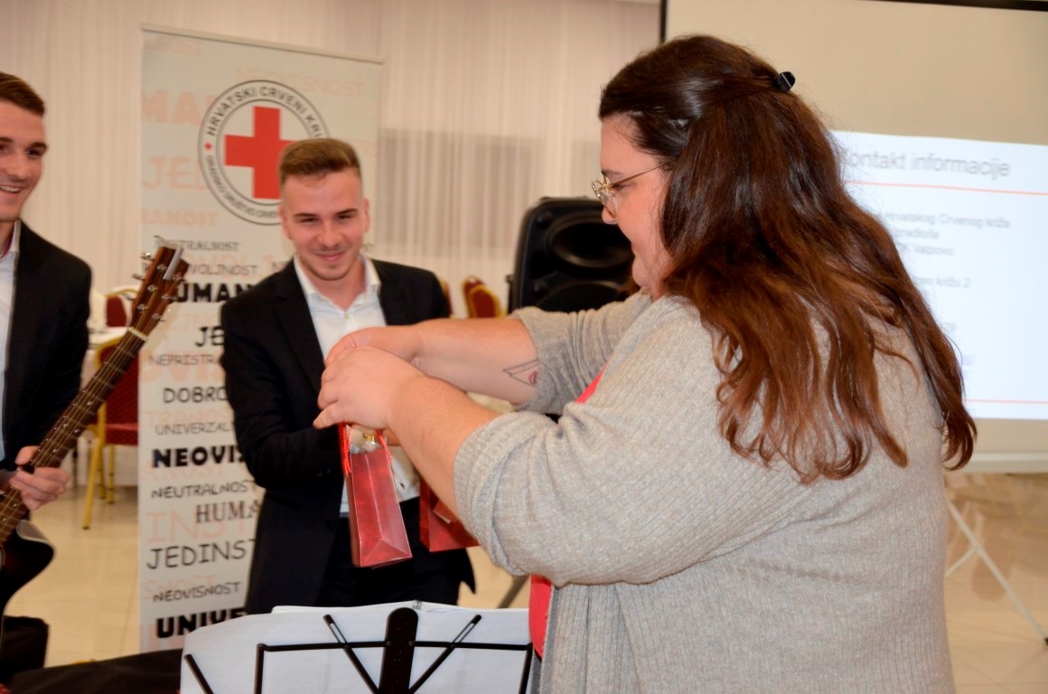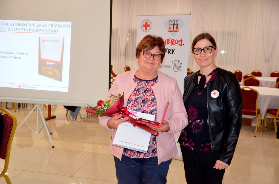 Obraćajući se davateljima i gostima, predsjednica Gradskog društva Crvenog križa Danijela Šrepfler je kazala: Ova svečanost prilika je da vama dobrovoljnim darivateljicama i darivateljima krvi koji nesebično dajete sebe, izrazimo zahvalnost za vašu plemenitost i humanitarnu aktivnost. Plemenitu jer ste tu dragocjenost odlučili podijeliti s drugima. Humanitrarnu jer ujedinjuje ljude. Hvala za vaš doprinos da svijet bude bolje mjesto. Vaš altruizam i dobrota ne poznaju granice, prigodno je izjavila Danijela Šrepfler te pozvala sve zdrave ljude da se pridruže brojnoj obitelji dobrovoljnih darivatelja krvi.