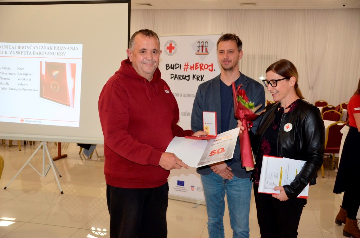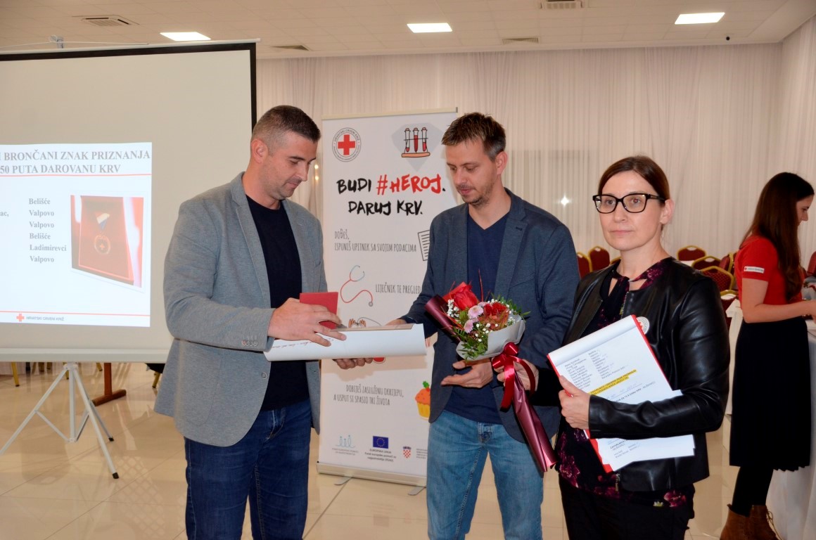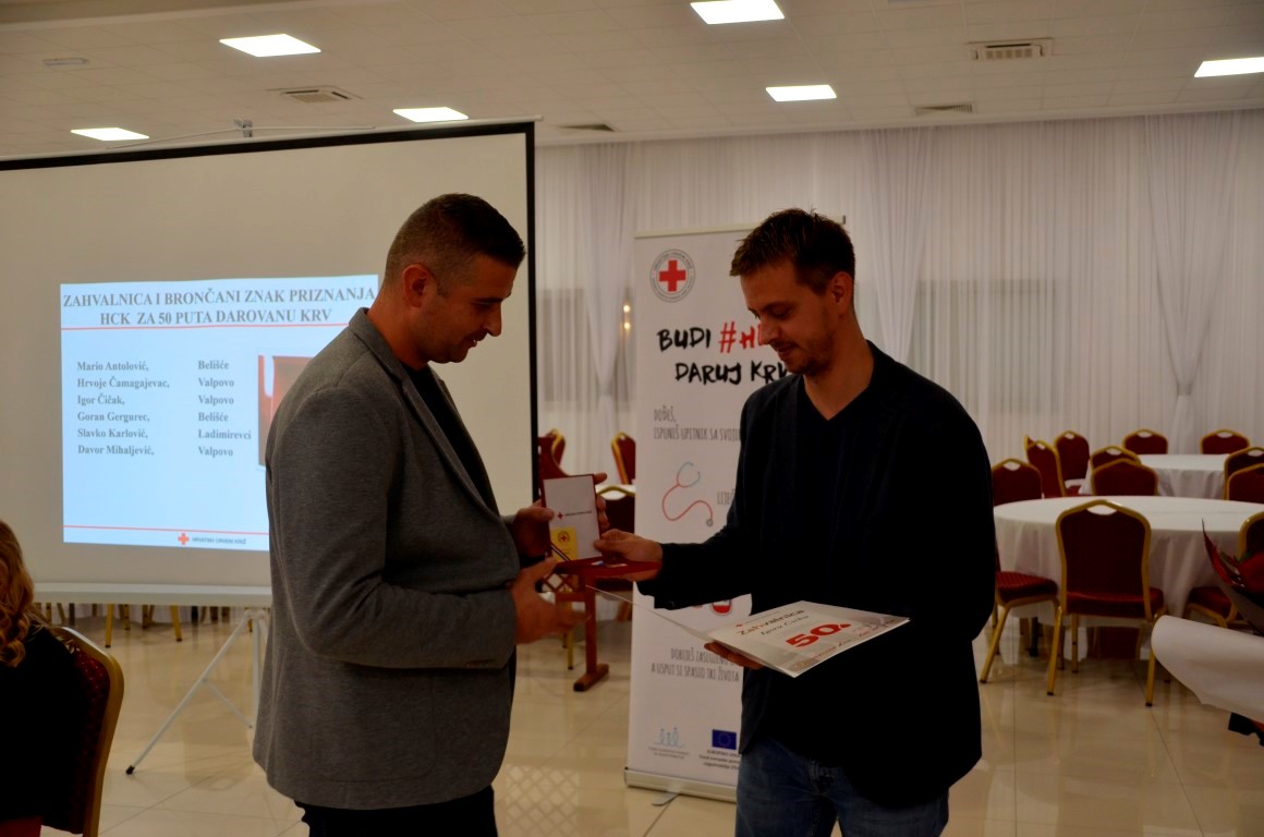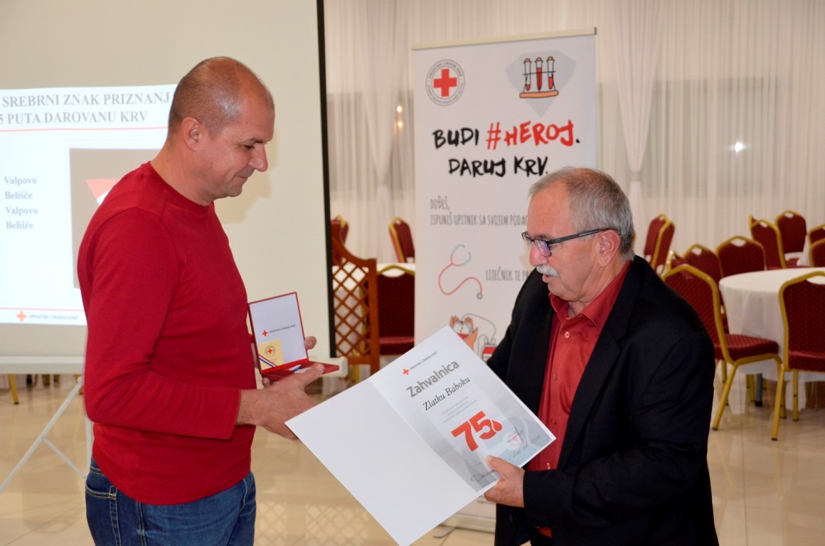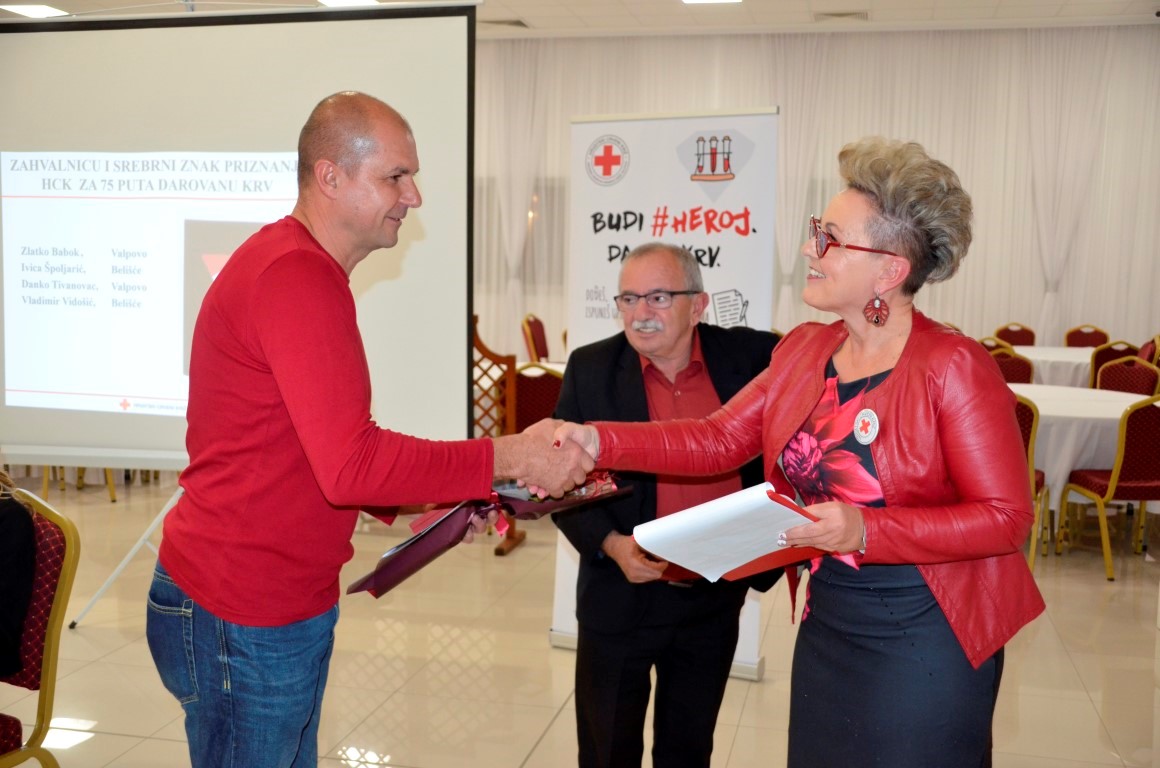 VALPOVO Gradsko društvo Crvenog križa Valpovo sinoć je organiziralo svečanu dodjelu zahvalnica i priznanja dobrovoljnim darivateljima krvi koji su višestruko darivali krv.