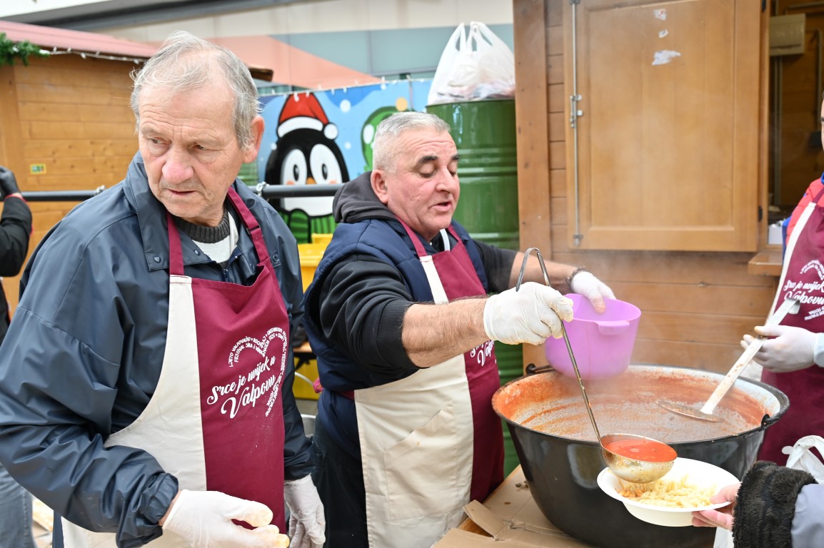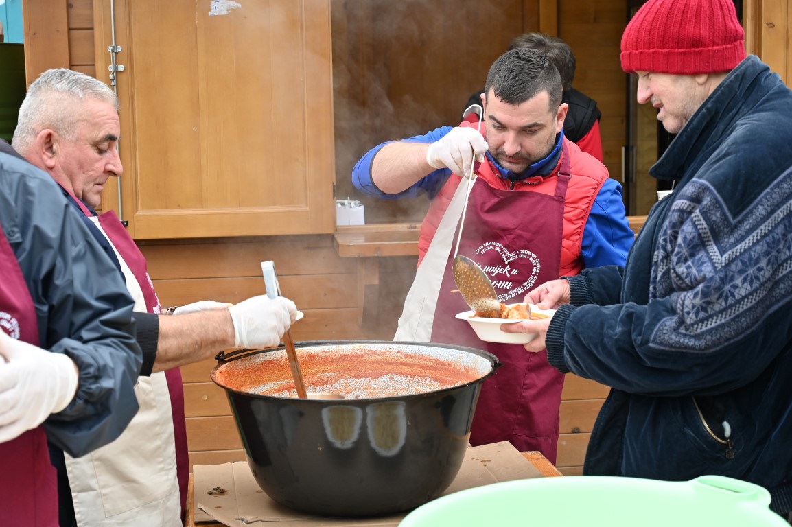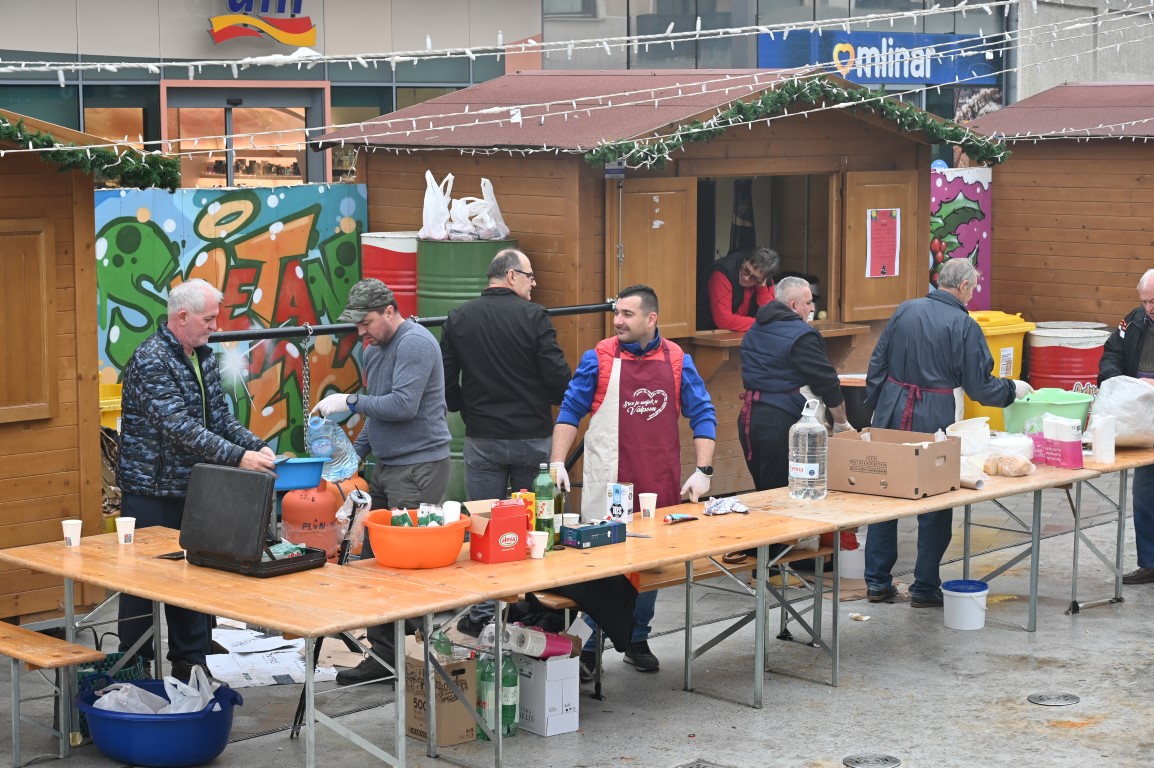 VALPOVO Ekipa majstora kotlića Željka Turalije i ove godine danas je prijepodne na središnjem gradskom trgu razveselila Valpovčane badnjim ručkom.