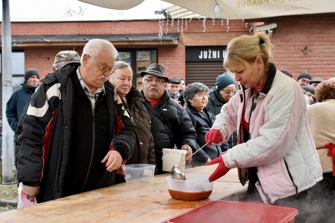 BELIŠĆE Program unutar manifestacije “Advent u Belišću“ nastavljen je u subotu, 24. prosinca 2022. godine podjelom fiš-paprikaša ispred Tržnog Centra “Belišće”.