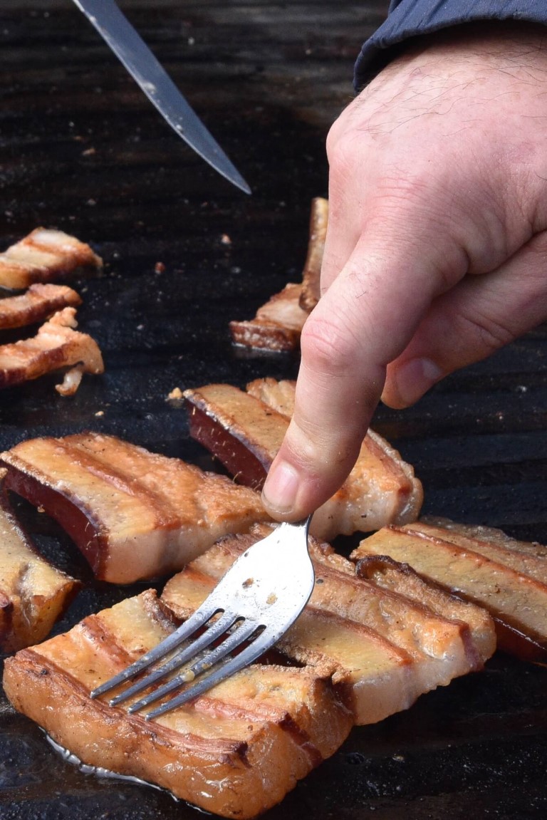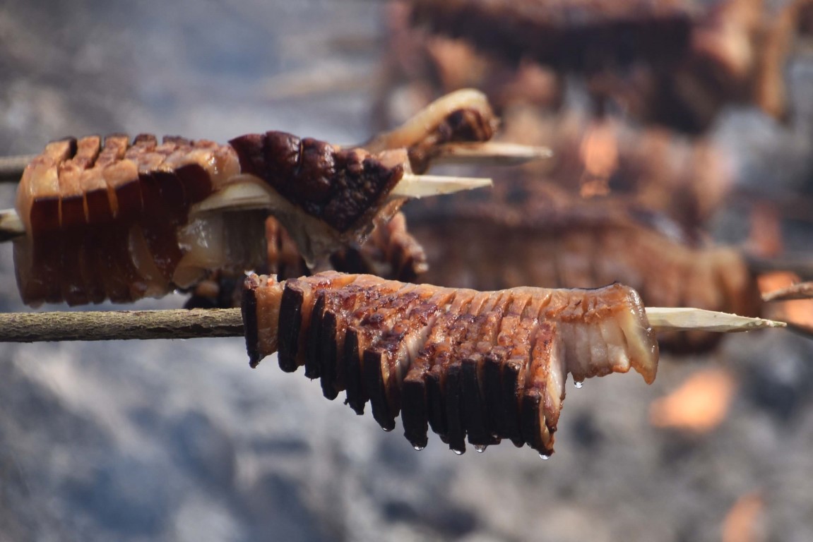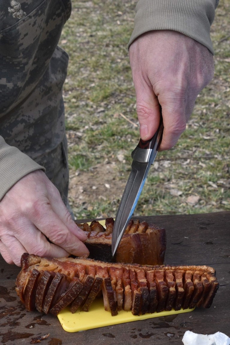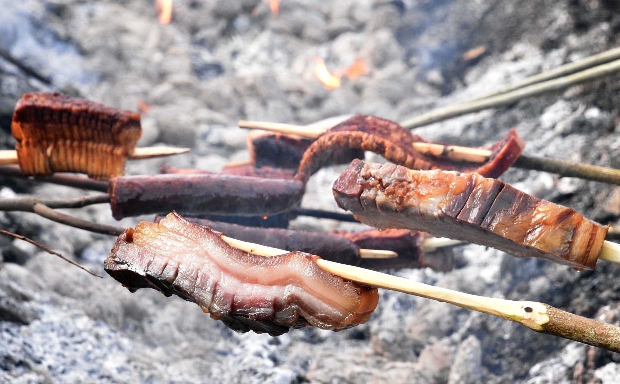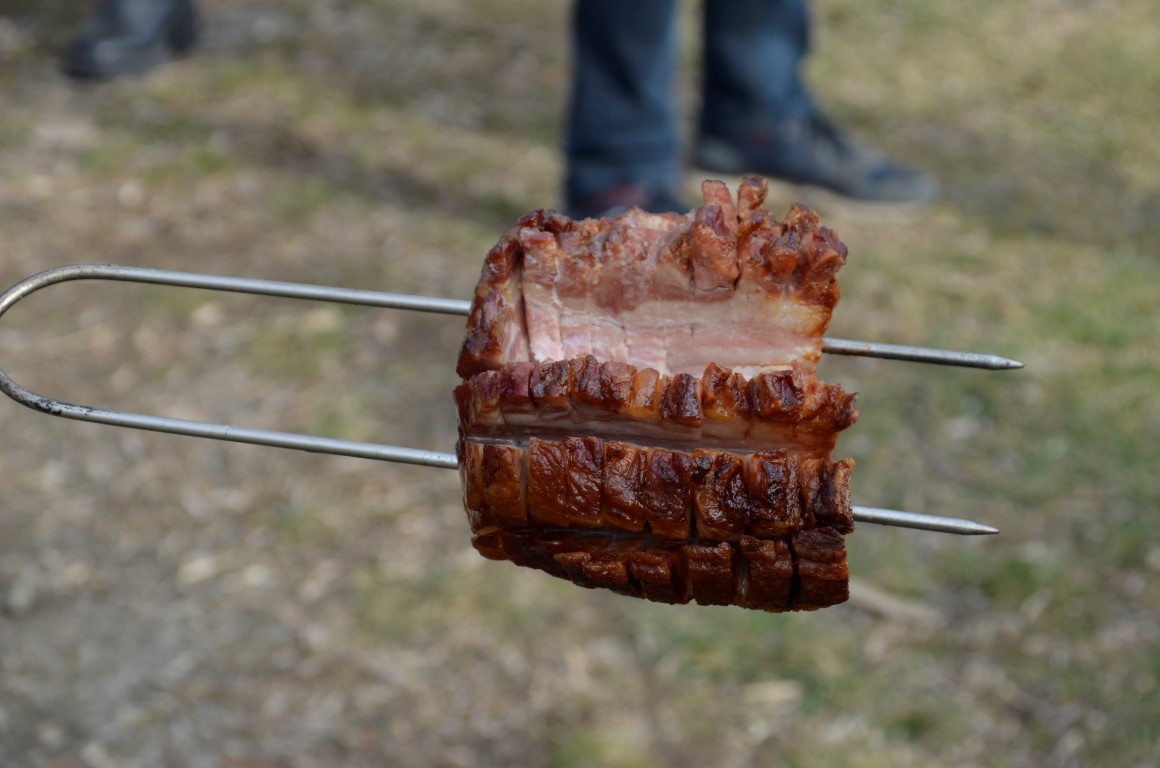 Oko dugog ognjišta opet se okupilo tridesetoro natjecatelja, ali i brojni gurmani koji su izvan konkurencije na svojim, ili od organizatora pripremljenim ražnjevima pekli komade slanine. Maštovito oblikovani komadi privlačili su pozornost znatiželjnika željnih delicija, ugođaja i druženja.