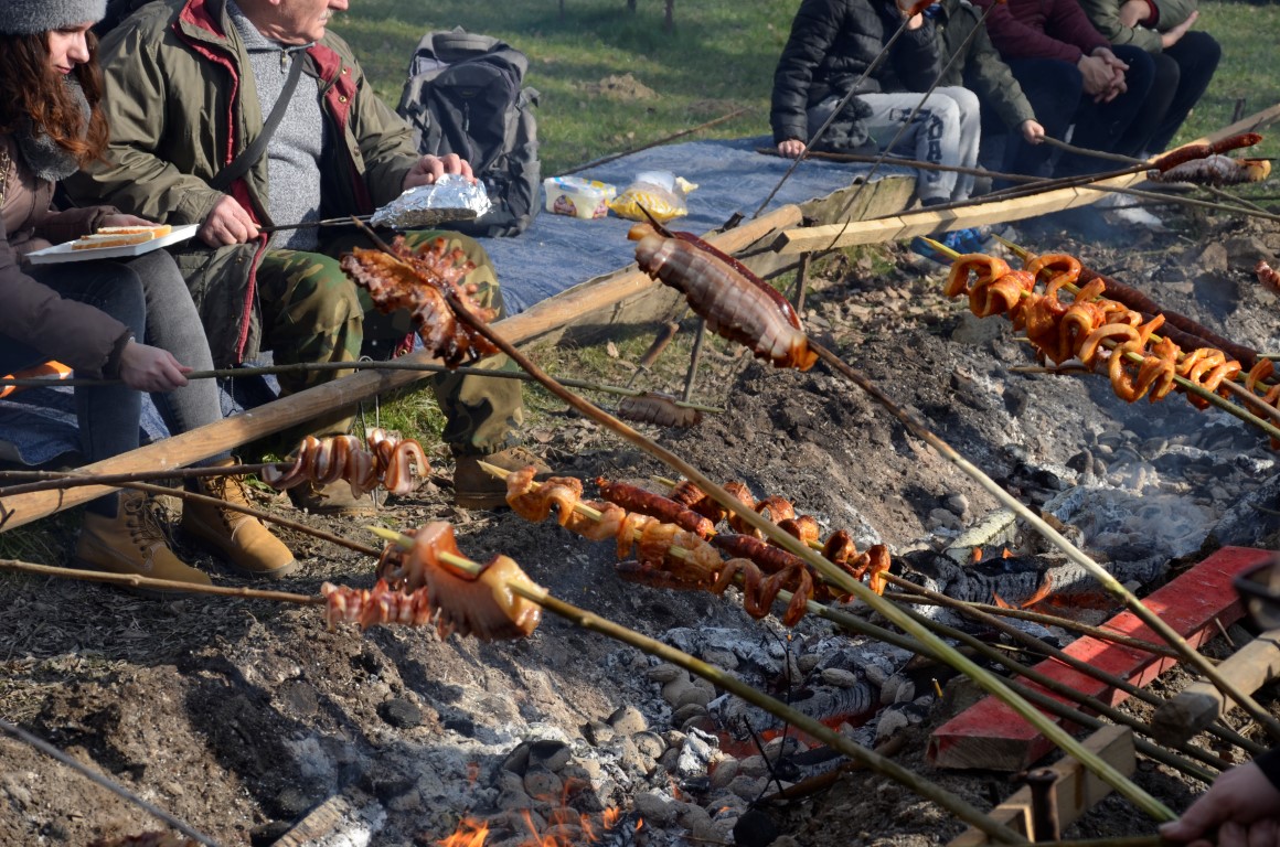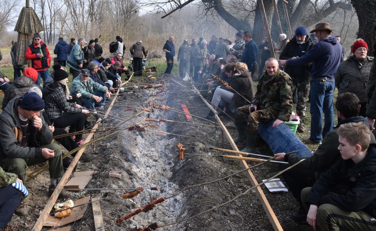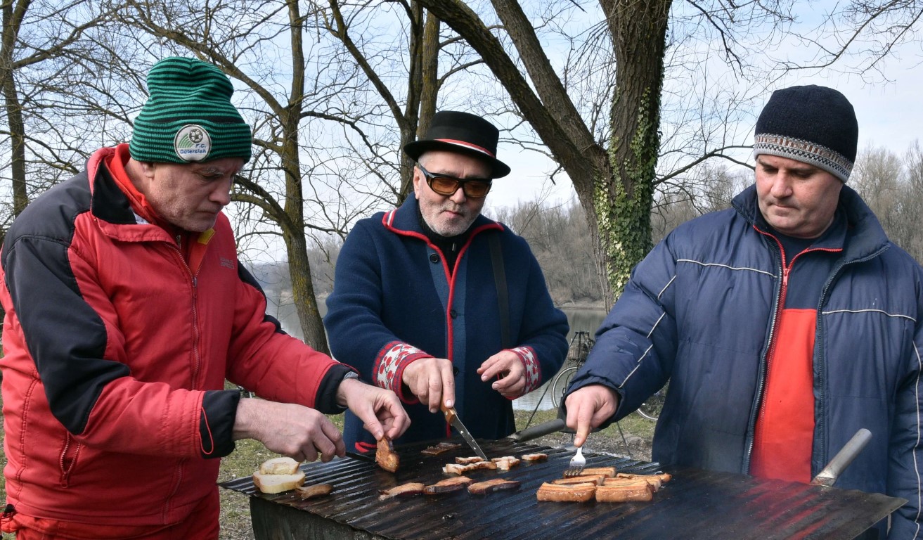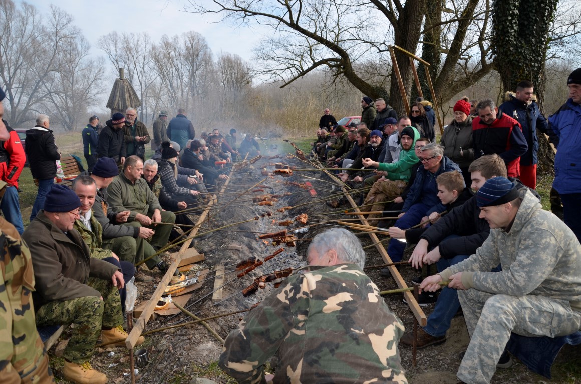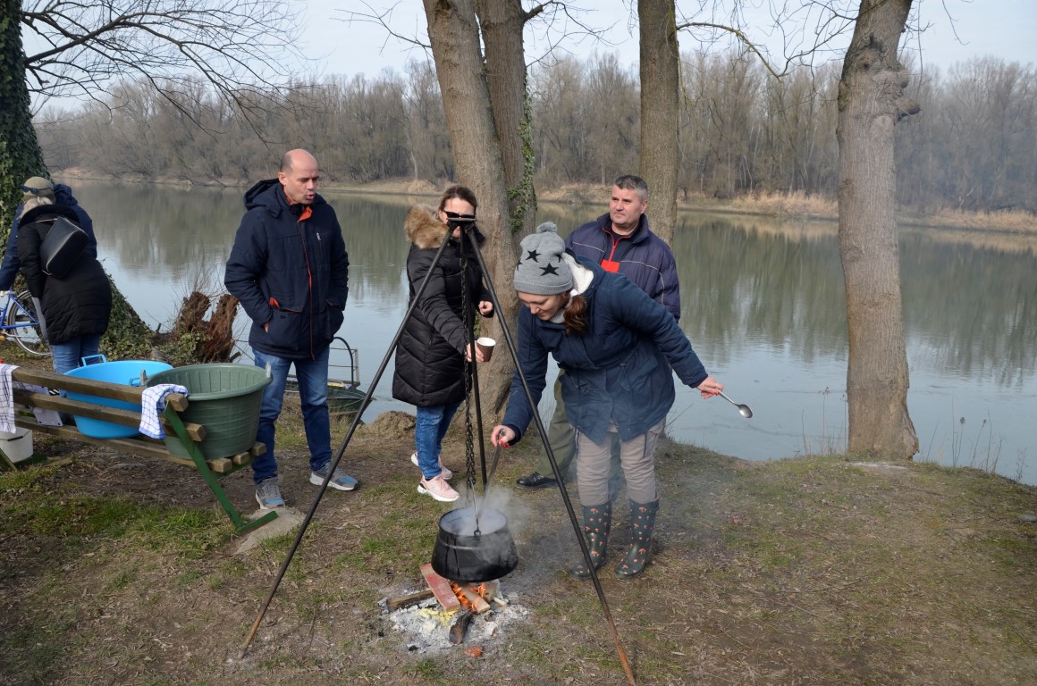 BISTRINCI Danas se po lijepom i sunčanom vremenu na Odmorište Drava u Bistrincima okupio velik broj izletnika, a mirisi dima i pečene slanine što su se širili predjelom uz rijeku, odali su i uzrok gužve.