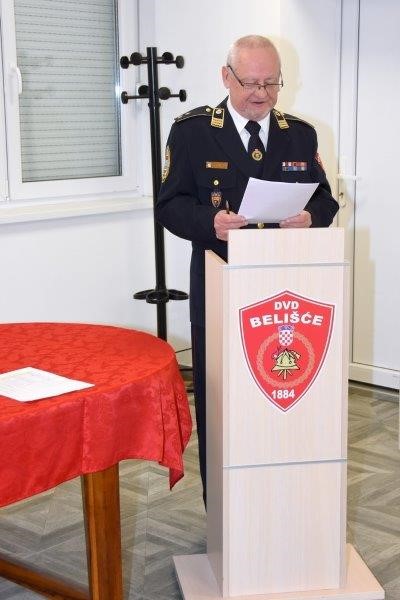 Prisutne pozdravlja predsjednik Vatrogasne zajednice osječko-baranjske županije, Zdenko Čarapar i u ime zapovjednika Zorana Pakšeca, koji je pohvalio rad zajednice i istakao izuzetan napredak u pogledu organizacije i nabavake vatrogasne opreme na području na kojem Zajednica djeluje. Posebno je istakao organiziranost i spremnost središnje vatrogasne postrojbe Belišće na čelu sa zapovjednikom i njegovim članovima prilikom posjeta delegacije iz Austrije koji su bili u obilasku pojedinim DVD-a s područja Osječko-baranjske županije u svrhu projekta nabavke vozila. Ujedno je istakao da su Peter Logar i Hubert Ritter - Voditelji projekta za pomoć vatrogascima imenovani od strane savezne Vlade Tirola bili oduševljeni viđenim i na tragu toga uskoro u DVD Belišće dolaze autoljestve za potrebe vatrogasnih intervencija. Također se očekuje daljnje opremanje vatrogasnih postrojbi na području Županije osječko-baranjske. Zahvalio se na velikom doprinosu naših članova u tijelima VZOBŽ, te poželio daljnji plodonasan i uspješan rad.