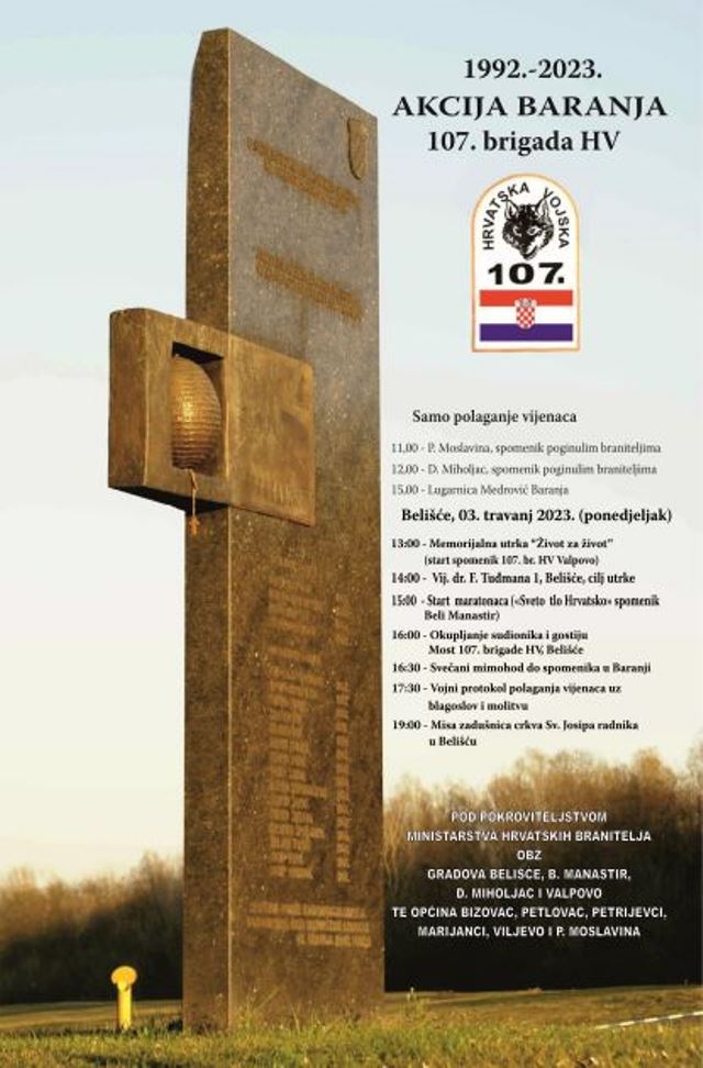 VALPOVŠTINA Koordinacija udruga proisteklih iz Domovinskog rata organizira obilježavanje 31. obljetnice akcije u Baranji.
